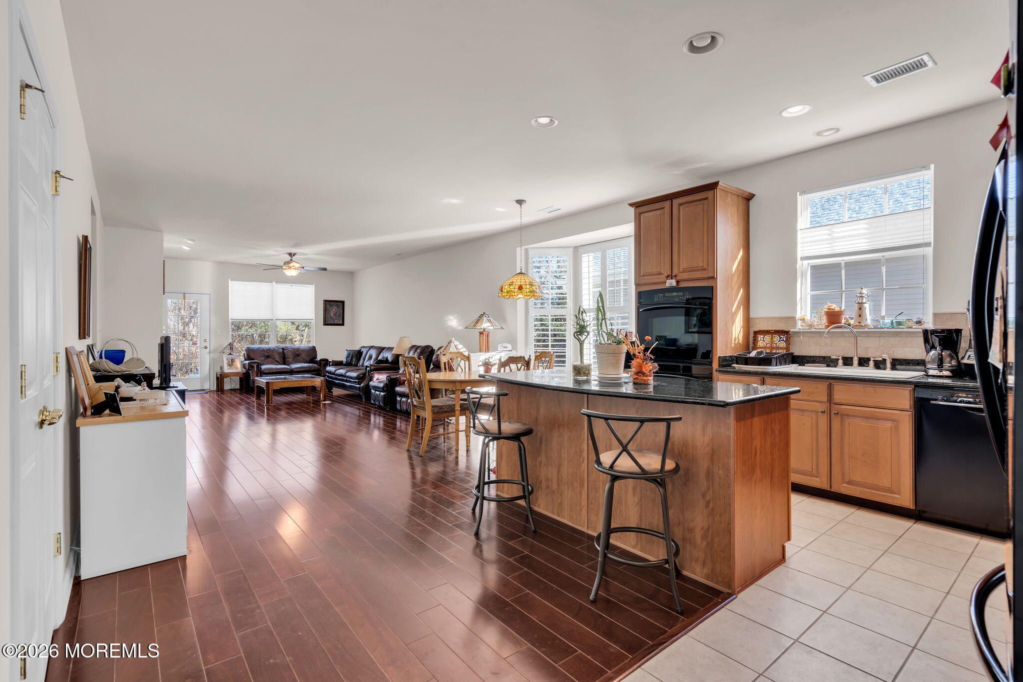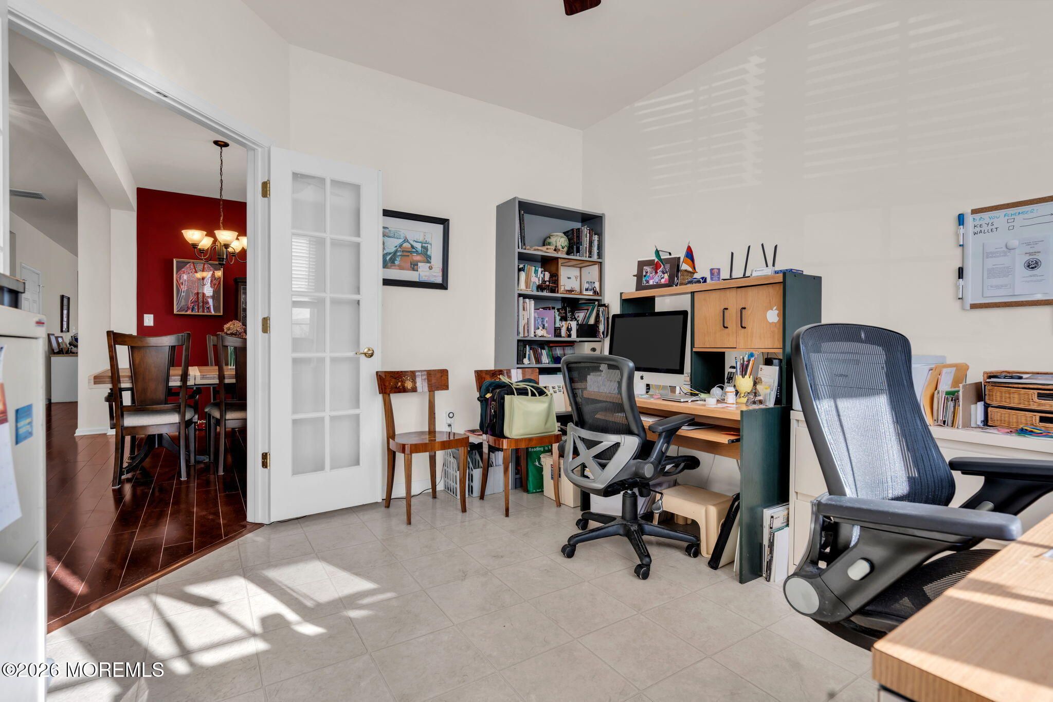 Welcome to this beautifully maintained home in the highly desirable Four Seasons at South Knolls community. Tucked away toward the end of a quiet cul-de-sac and backing to private woods, this property offers a rare combination of peace, privacy, and everyday convenience. Inside, you're greeted by a grand, open floor plan designed for both comfortable living and effortless entertaining. The spacious layout flows seamlessly from the main living and dining areas into a bright, expansive kitchen featuring abundant countertop space, a large center island, and plenty of room for gathering. A standout feature of this home is the dedicated front office--perfect for working from home, a quiet reading space, or additional flex use to fit your lifestyle. The home offers three bedrooms and two full bathrooms, all thoughtfully maintained and move-in ready. The primary suite provides a relaxing retreat, while the additional bedrooms offer flexibility for guests or extended use. Step outside to enjoy the paver patio and serene backyard setting, where the wooded backdrop creates a private and peaceful outdoor experience. Additional highlights include a two-car garage with a bonus walk-up storage area--ideal for extra storage or the potential to be finished into additional living space. Residents of Four Seasons at South Knolls enjoy resort-style amenities, including a clubhouse, indoor and outdoor pools, fitness center, and a variety of recreational options such as pickleball, tennis, and more. This is an opportunity to own a well-maintained home with space, privacy, and flexibility in one of the area's most sought-after active adult communities.