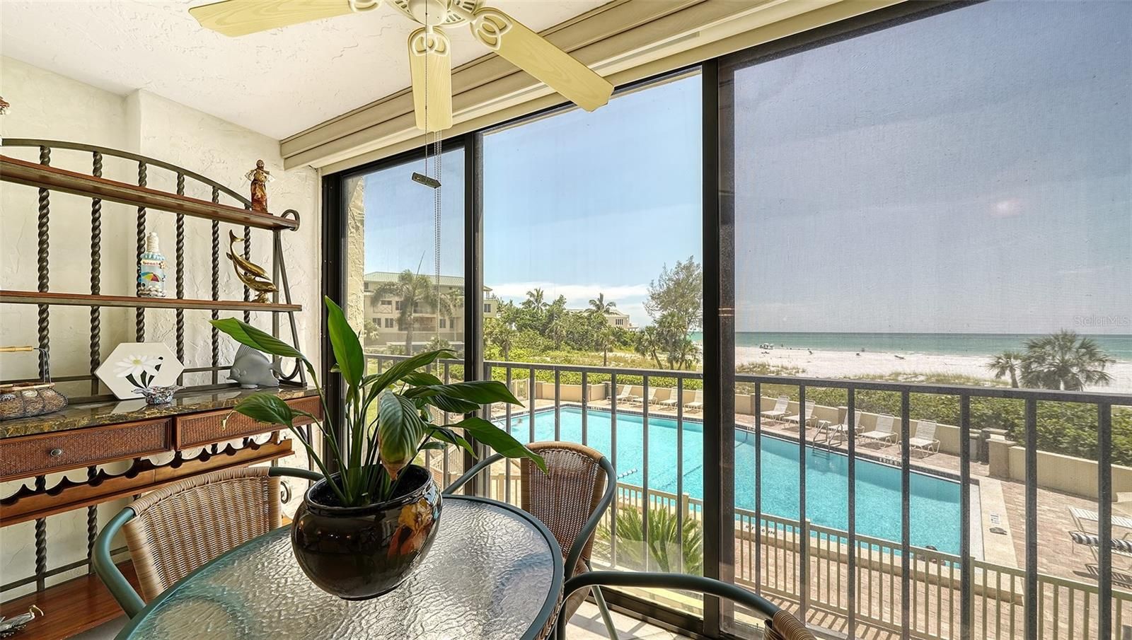 Investment opportunity! Priced below market, this lovely 2 bed/2 bath GULF FRONT tower residence in the premiere property of Whispering Sands represents an opportunity to move right in, and if desired, ultimately take your time to create your own vision and make it your own - and enjoy a lifetime of memories. Don’t hesitate - this is currently the best priced Gulf front tower unit in Whispering Sands. Upon entry, you’re greeted with spectacular, unobstructed 180-degree views of the shimmering aquamarine Gulf. Along with its direct FULL GULF VIEWS, this unit is just one floor away from the sparkling beachside pool and 800’ of Whispering Sands' own private beach. This unit features a nicely remodeled kitchen and great OPEN CONCEPT floor plan, enabling easy interaction between you and your guests. The kitchen includes granite countertops & backsplash, an 8’ breakfast bar, recessed LED & under cabinet lighting, convenient built-in desk, and an abundance of cabinet storage. Experience true Florida living by opening the floor to ceiling sliders in the living room and primary bedroom and take in the fresh salt breezes and the gentle sound of the surf. Both sets of sliders include remote controlled shades. The primary bedroom includes a custom walk-in closet, large vanity area, and ensuite bath with marble countertops, glassed walk-in shower, and linen closet with pullout drawers. A set of glassed French doors with privacy shades opens into the guest bedroom, which can serve as both an office and a bedroom with a fantastic SICO wall bed, desk, and built-ins. This unit is being sold As Is. Whispering Sands is a premiere 55+ Gulf front community offering 2 heated pools, Tower Lounge, Clubhouse – both of which are undergoing remodeling with a completion date in 2026 – beachside Tiki hut and grills, shuffleboard, canoe/kayak storage, and 800’ of private beach on the Gulf. In one of the best locations on Siesta Key, Whispering Sands is right around the corner from the colorful boutiques and restaurants of Siesta Key Village. Don’t miss this opportunity!