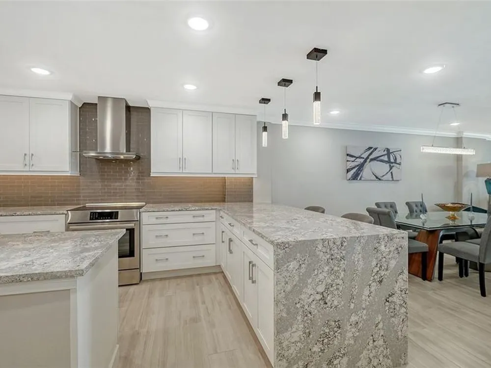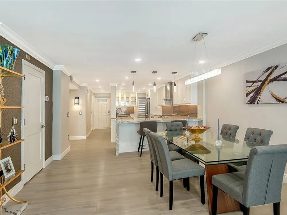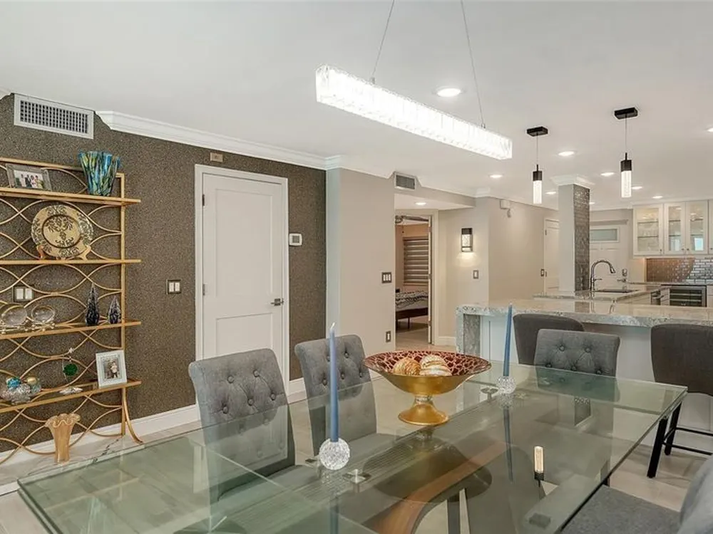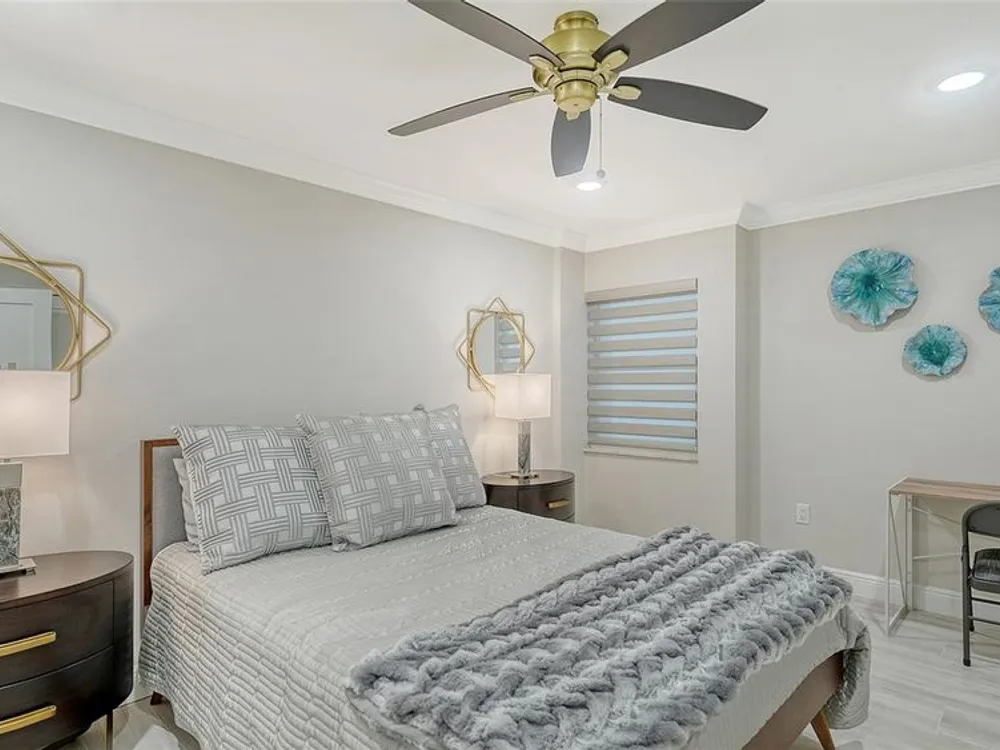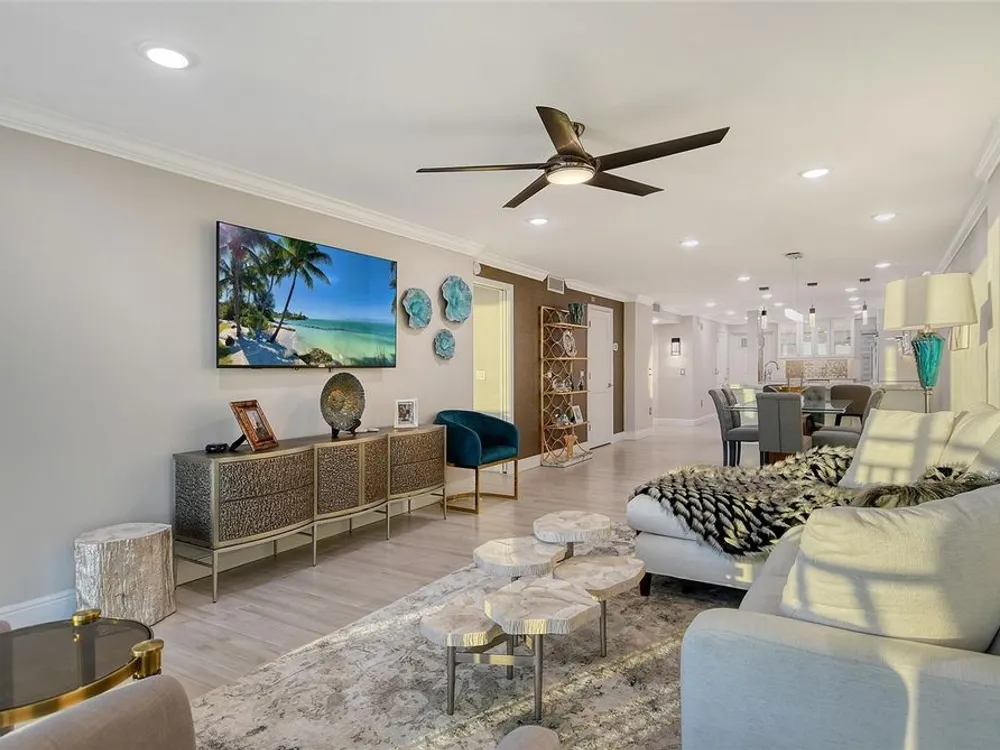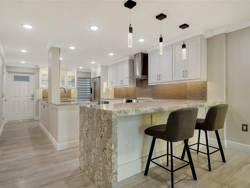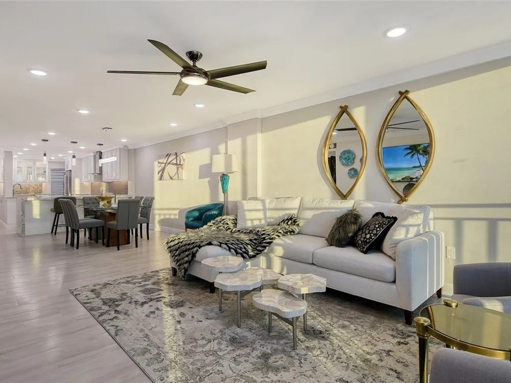 EXQUISITE GULF FRONT LUXURY! Just one floor from the top, this stunning, 11th floor, FULLY remodeled GULF FRONT tower residence offers a seamless blend of sophistication and coastal style against a background of breathtaking, unobstructed 180-degree views of the shimmering Gulf! A rare combination of sophistication, comfort, and coastal beauty, this residence defines modern Gulf front luxury living. Every detail of this 2022 remodel reflects the finest in contemporary design and craftsmanship. The open concept interior is graced with beautiful wide plank tile flooring, seamlessly connecting living, dining, and kitchen spaces to the endless blue horizon beyond. True floor-to-ceiling 2020 hurricane impact sliders open to mesmerizing Gulf vistas, enhanced by Hunter Douglas motorized light-filtering shades for effortless ambiance control. The gourmet kitchen is a showpiece featuring striking Cambria® quartz surfaces, a dramatic 8’ waterfall breakfast bar with dimmable pendant lighting, Bosch stainless appliances, 32 bottle wine refrigerator, fabulous under counter drawer microwave, and custom soft-close cabinetry. The serene primary suite is equally refined, featuring a spa-inspired ensuite tiled bath with Cambria® quartz dual vanity and glassed walk-in shower. The guest bath echoes the same refined elegance. FURNITURE AND FURNISHINGS including Robb & Stucky pieces are included with the sale of the property, minus a small exclusion list. Whispering Sands is a premiere 55+ Gulf front property offering resort style living with two heated pools, a clubhouse and a Gulf front Tower Lounge - both of which are currently undergoing complete remodeling - beachside Tiki Hut, grills, canoe/kayak storage, & 800’ of private beach on the Gulf. Ideally located right next to the dining and charm of Siesta Key Village, this unit is also just a short drive across the North Bridge to Sarasota’s wealth of world class visual and performing arts, theatre, and cultural attractions!