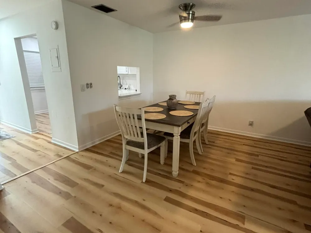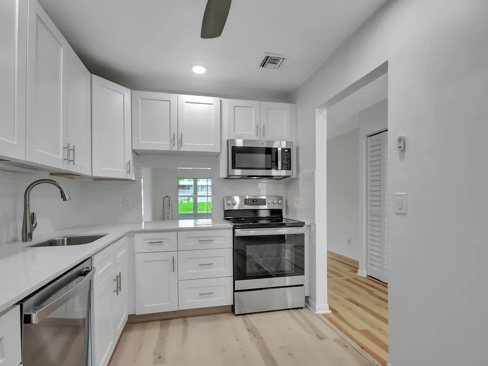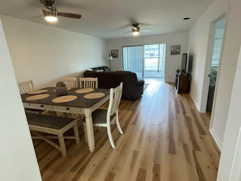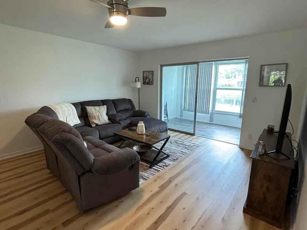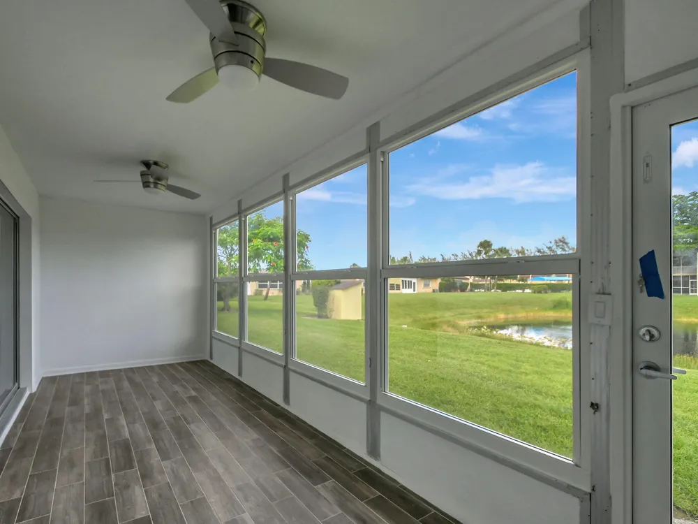 Beautifully renovated 2 bedroom 2 bath corner unit. Lots of windows offering lots of sunshine with a lovely lake view. Spacious enclosed Florida room with cieling fans. The kitchen has been beautifully renovated with stainless steel appliances and granite counter tops. Nice laminate flooring thorughout the house. A newer A/C unit and tankless water heater. IMPACT windows and doors to ensure safety against stormy weather. Home is fully furnished ready for new owners to move in.
