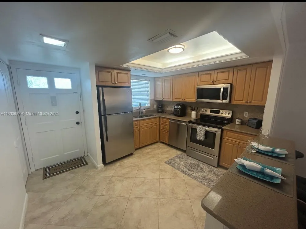 - Dryer, Dishwasher, Electric Range, Disposal, Ice Maker, Microwave, Refrigerator, Washer