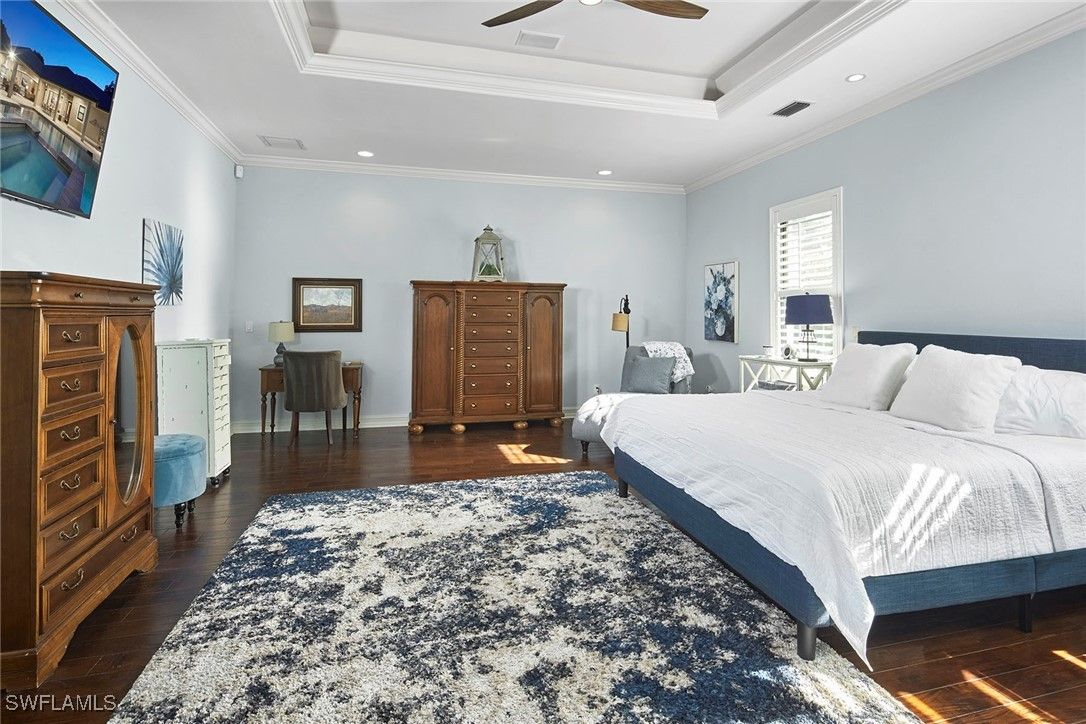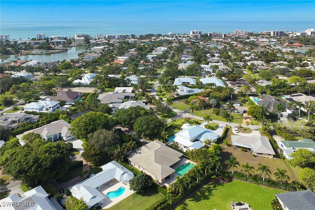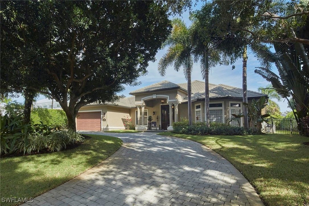 Set on one of the most coveted, highly elevated banyan-lined streets in The Moorings, this exceptional four-bedroom plus den residence offers refined coastal living designed for both grand entertaining and everyday comfort. Encompassing over 3,800 square feet, the open-concept great room floor plan is highlighted by soaring vaulted ceilings and an expansive dining area, all framed by tranquil views of the lush, private backyard. Seamlessly extending the living space, the fourth bedroom has been thoughtfully reimagined as a sophisticated family lounge, complete with a wet bar and full bath. Dramatic 90-degree pocketing sliders open to a generous covered lanai, creating a flawless transition between refined indoor comfort and relaxed outdoor living. The secluded outdoor retreat is anchored by an oversized heated pool and elevated spa, complemented by a fully equipped outdoor kitchen, making it ideal for year-round enjoyment in Naples’ renowned mild winter climate. Thoughtfully appointed, the home includes impact-rated windows and doors throughout, two dishwashers, a Generac whole-home generator, 750 gallon propane tank, an oversized attached two-car garage all on a beautifully landscaped .37-acre homesite. Perfectly positioned, this premier Moorings location is just a short stroll to popular restaurants and Publix, while residents enjoy exclusive access to the private Moorings Beach Park. A rare opportunity to experience the ultimate in luxury, lifestyle, and location in one of Naples’ most desirable neighborhoods.