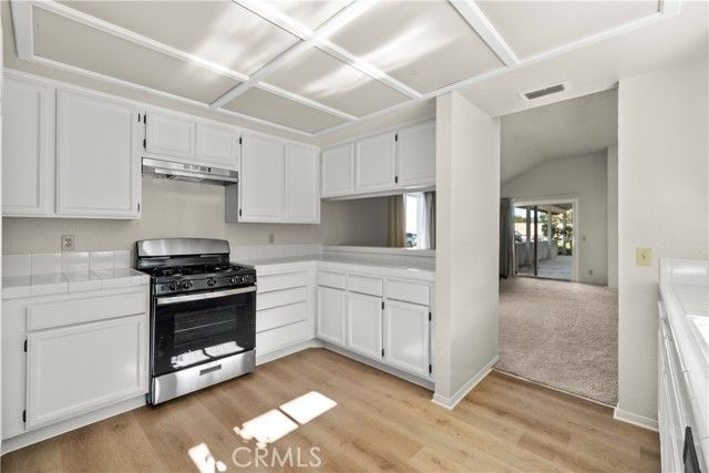 Check out this single story in the best location in the Friendly Valley community! Tucked at the end of the street and surrounded by green space with no rear neighbors, this home offers exceptional privacy and a peaceful setting. This lovely single-story is an attached 2 bedroom home in the 24-hour guard-gated Friendly Valley senior community. A well-maintained 2 bedroom, 2 bathroom floor plan features family room and both bedrooms with sliding glass doors opening to the patio. Additional highlights include an attached two-car garage with direct access and a private driveway. The light and bright kitchen offers new stainless steel appliances, ample cabinetry, and a charming garden window. The spacious family room with a brick fireplace and slider to the patio. The primary bedroom includes mirrored closets and an ensuite bathroom, while the secondary bedroom offers generous closet space and patio access. Recent updates include fresh interior paint and updated kitchen and bathroom flooring. The HOA covers exterior paint, roof, landscaping surrounding the home, basic cable, internet, trash service, and guard-gated security. Community amenities include golf courses, pool and spa, fitness center, clubhouse, auditorium, card and game rooms, hobby and craft rooms, billiards, library, wo