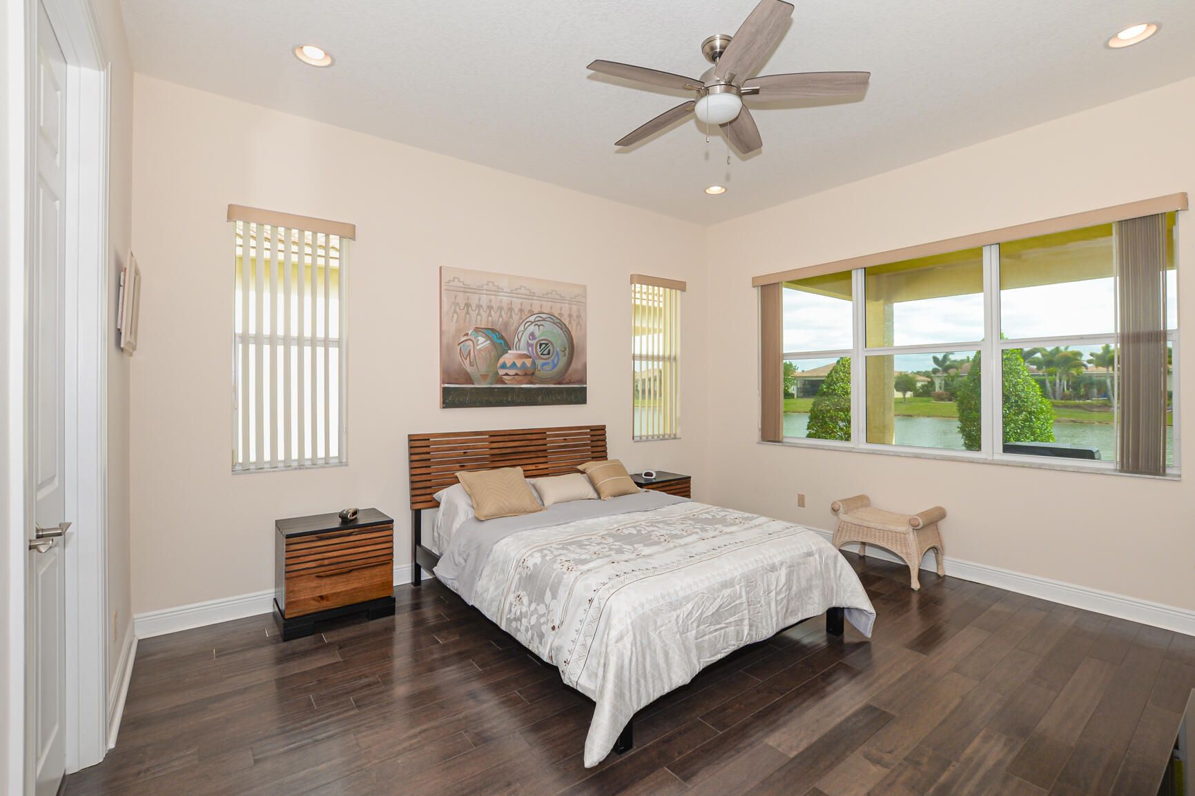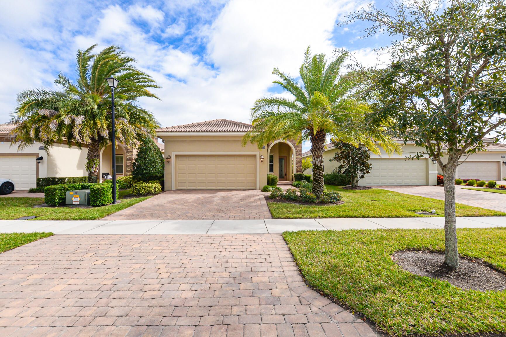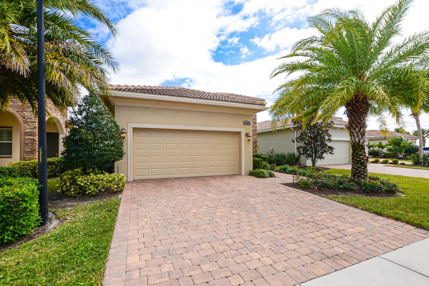 Beautiful ''Casita Model'' in Verano PGA Village. Features CBS Construction, Barrel tile roof, paver driveway/walkway, Hurricane impact Windows & doors & Wonderful LAKE VIEW! Front Patio & decorative etched glass door. Hosts 2 BR's, 2 BA's, Den, 2 CG w/ Epoxy flooring & spacious covered patio overlooking tranquil lake View. Porcelain tile in main areas & den that looks like wood & wood floors in BR's. Volume Ceilings, Open Floor Plan & lovely kitchen include large Island, upgraded 42'' cabinets, Stainless steel appliance's, pantry, pendulum lights & granite counter tops. Split BR's with spacious Master Suite, natural lighting, walk in closet & beautiful MB offers dual sinks, frameless large shower with tile to ceiling. Laundry Room has washer, dryer, cabinets & sink. GOLF CART INCLUDED!