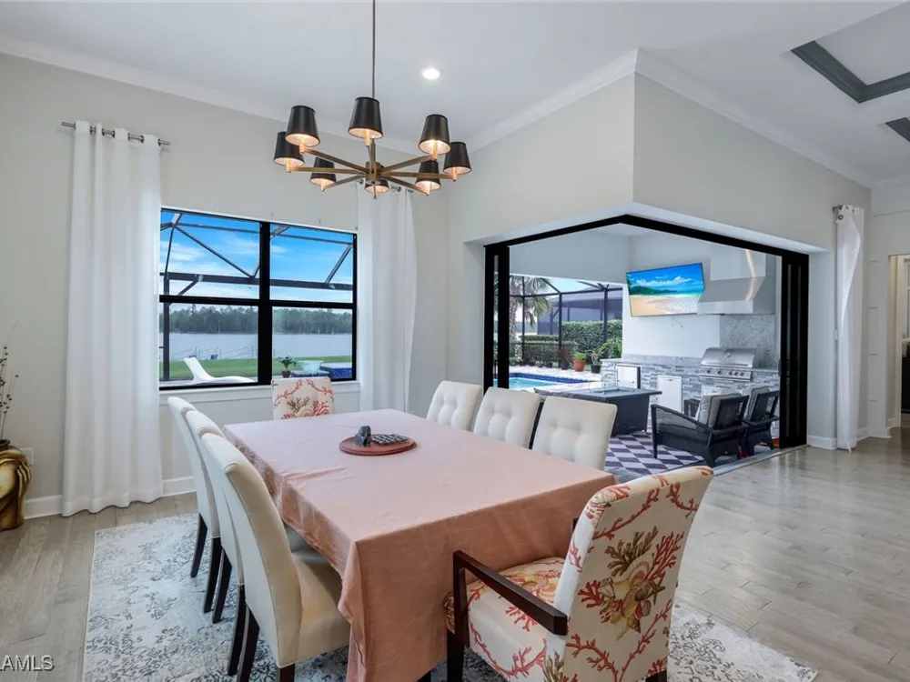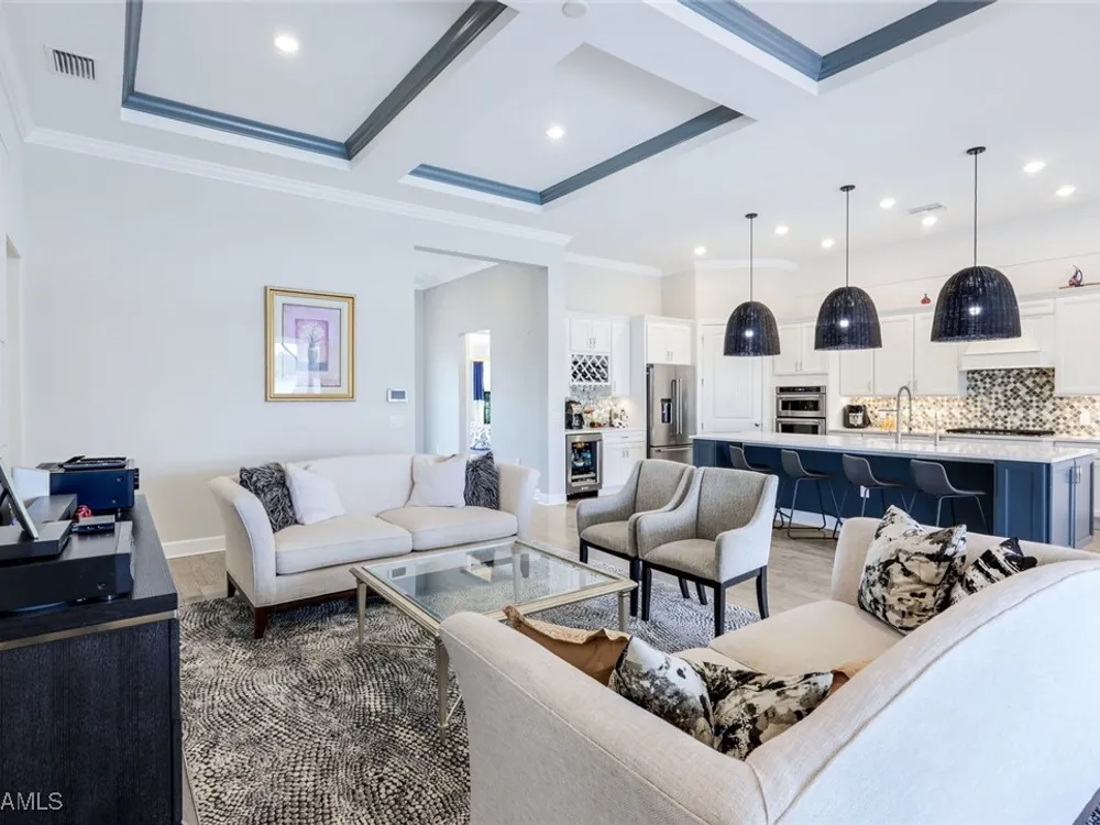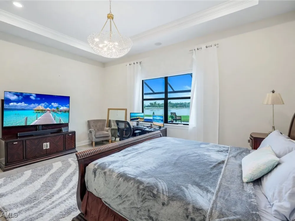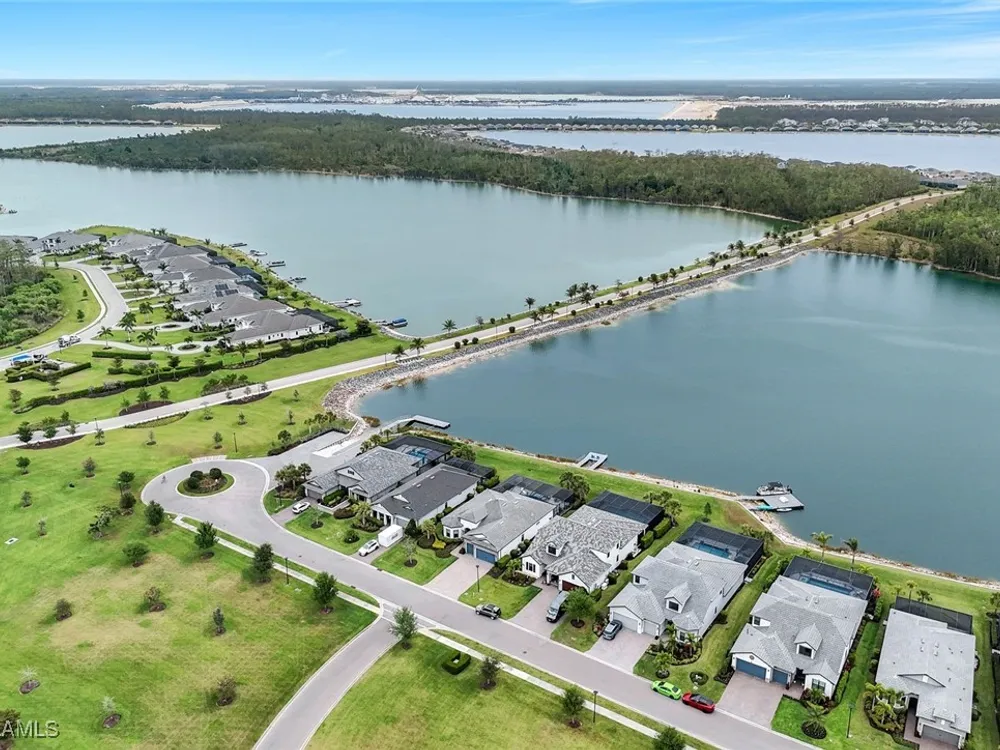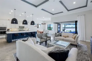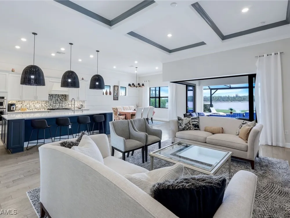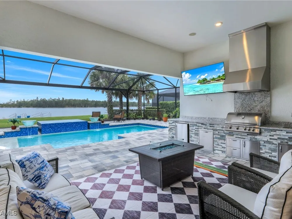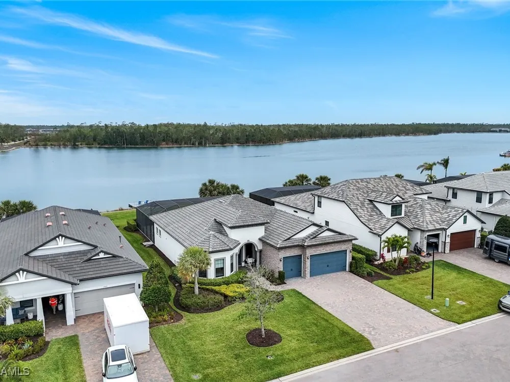 Experience LUXURY redefined in this FORMER Pinnacle MODEL home, perfectly positioned on W-I-D-E Indigo Lake with a private DOCK for boating enthusiasts! Offering 3 bedrooms PLUS DEN, 3 baths, and a spacious 3-car garage with additional storage, this residence is thoughtfully designed with upscale enhancements. The GOURMET KITCHEN showcases stainless steel appliances, a WINE COOLER, quartz countertops, a designer tile backsplash, and WHITE CABINETRY. Each guest room features impeccable attention to detail, offering a bright and inviting retreat where COMFORT meets STYLE. The spacious DEN/OFFICE ensures you can concentrate on business or watch your stocks in the lap of luxury. Stylish details like coffered ceilings add architectural charm, while IMPACT WINDOWS and DOORS provide peace of mind. ZERO-CORNER SLIDERS disappear, revealing an EXPANSIVE lanai that feels like a five-star resort destination. The CUSTOM POOL and SPA with a tranquil WATERFALL FEATURE are framed by a PANORAMIC SCREEN enclosure, offering uninterrupted LAKE VIEWS. The OUTDOOR KITCHEN is perfect for entertaining, while the southeast orientation ensures SUN-DRENCHED mornings and serene afternoons. Residents of WildBlue enjoy resort-style amenities, including a CLUBHOUSE with DINING options, a fitness center, PICKLEBALL, tennis, bocce courts, and WATER ACTIVITIES like kayaking and boating. There's also a fishing club, book club, canoe/kayak club, line dancing, board games, bingo, poker, mahjong, and bridge. All this is just minutes from RSW International Airport, Fort Myers's vibrancy, and Naples' fun and sophistication. In addition to a luxurious waterfront lifestyle, this home and community offer sumptuous living, easy accessibility, a clubhouse with a full social calendar, and an exceptional investment opportunity!
