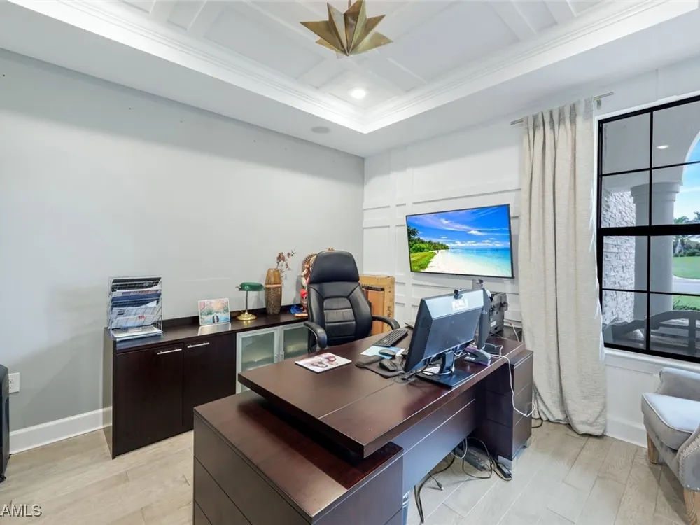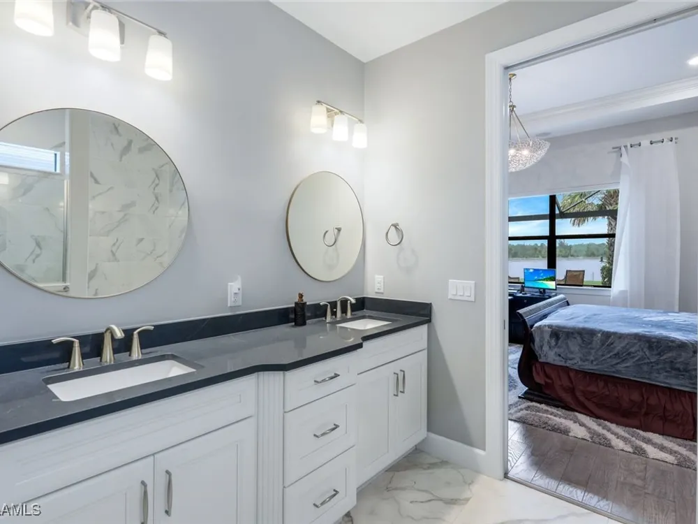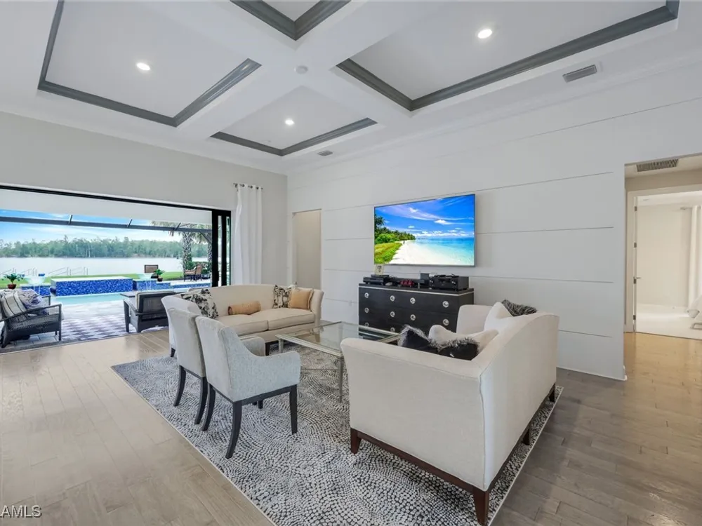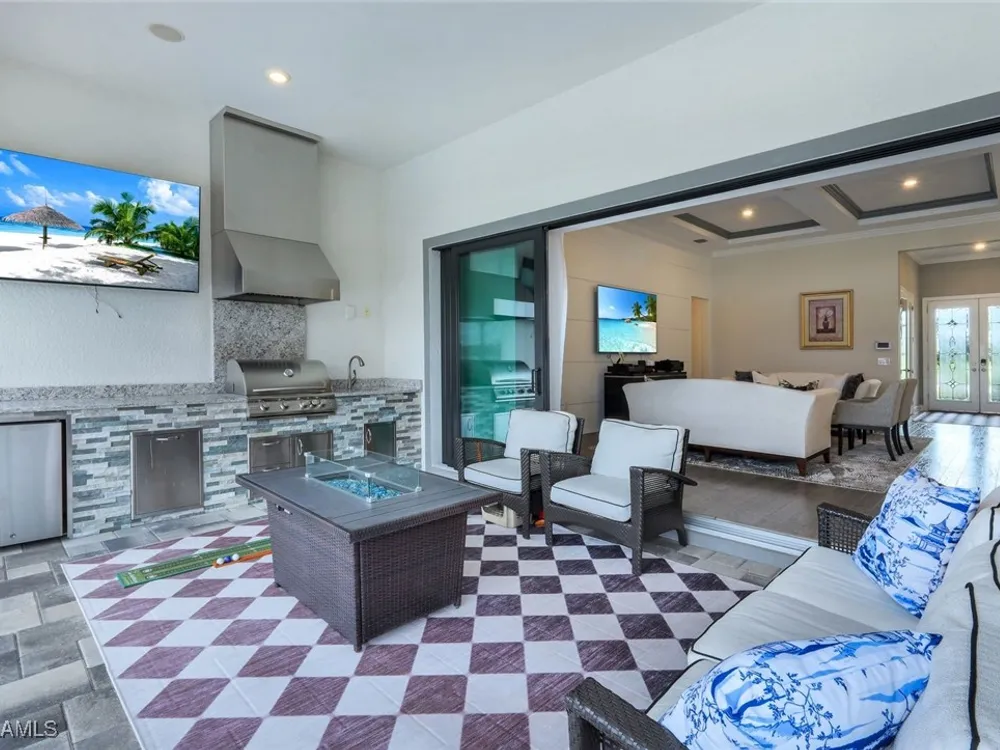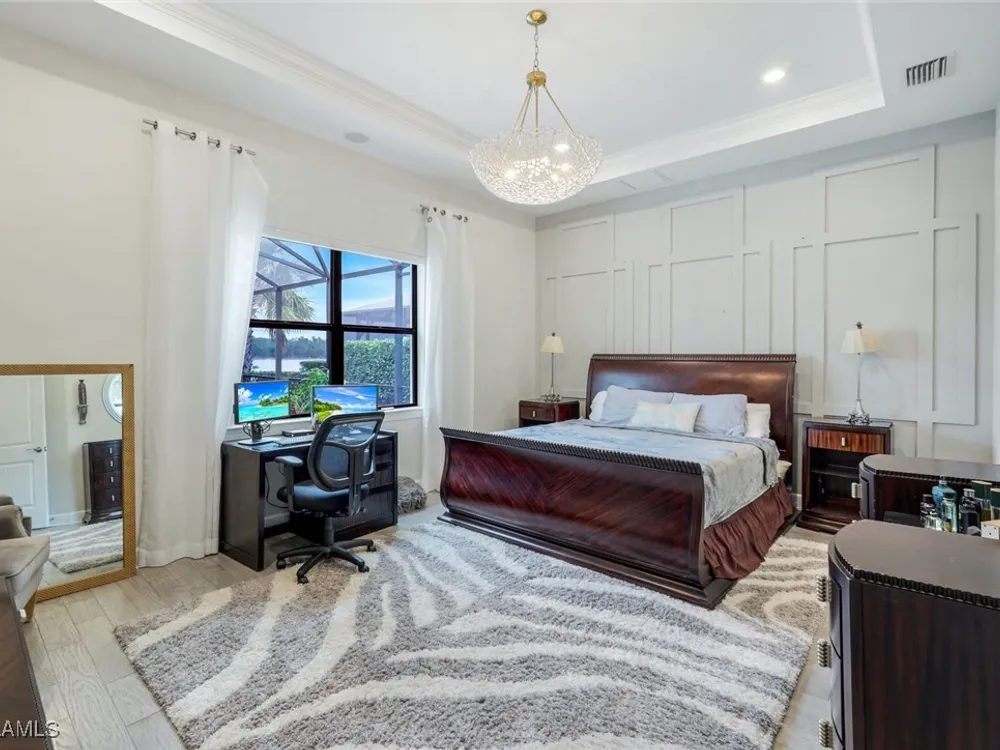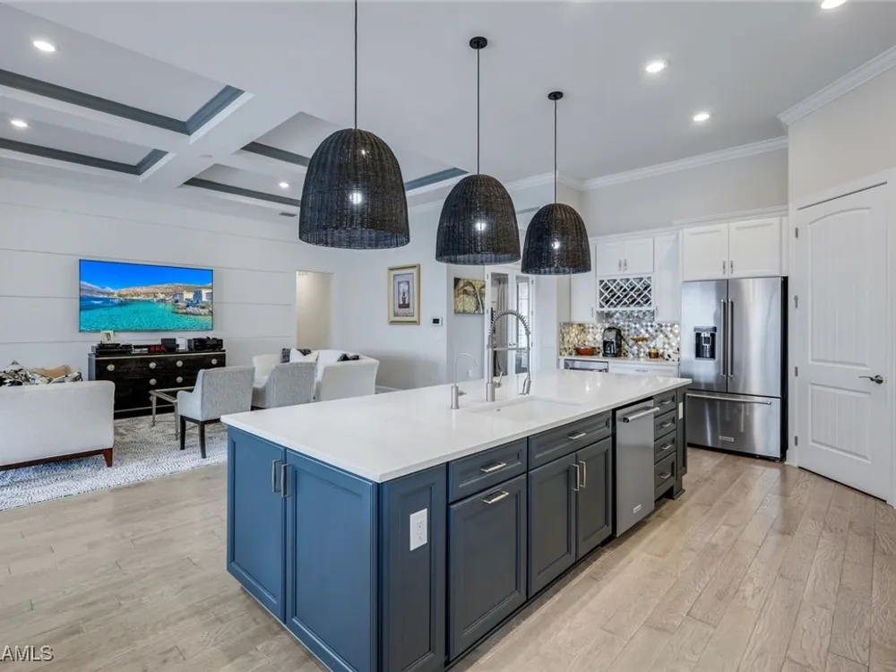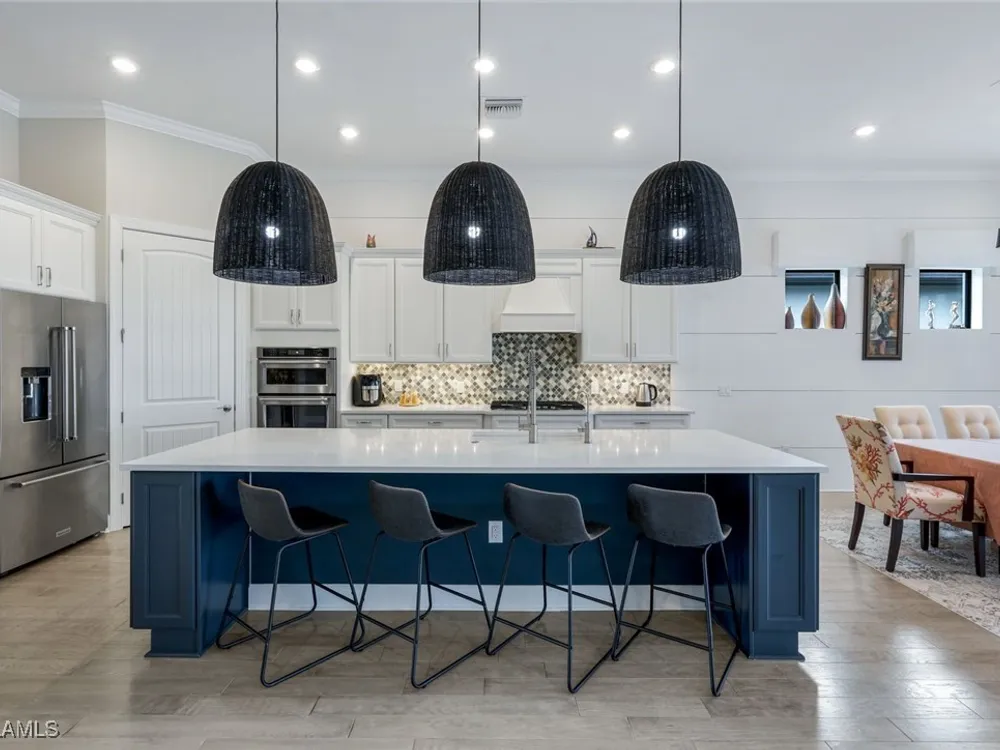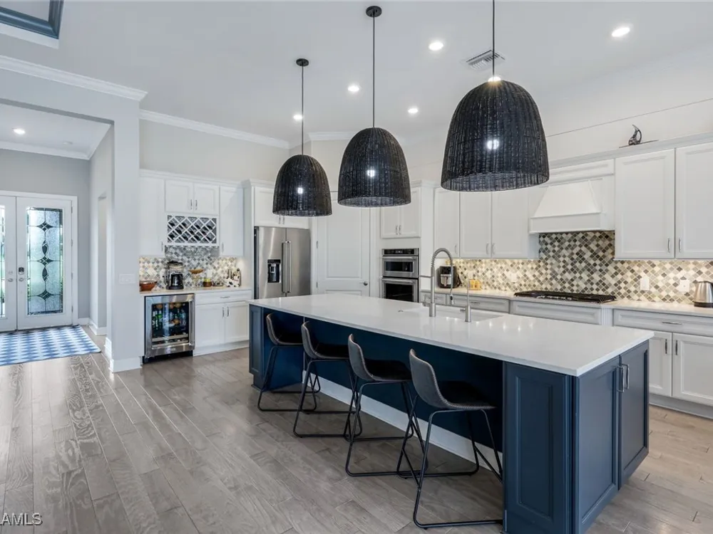 Experience LUXURY redefined in this FORMER Pinnacle MODEL home, perfectly positioned on W-I-D-E Indigo Lake with a private DOCK for boating enthusiasts! Offering 3 bedrooms PLUS DEN, 3 baths, and a spacious 3-car garage with additional storage, this residence is thoughtfully designed with upscale enhancements. The GOURMET KITCHEN showcases stainless steel appliances, a WINE COOLER, quartz countertops, a designer tile backsplash, and WHITE CABINETRY. Each guest room features impeccable attention to detail, offering a bright and inviting retreat where COMFORT meets STYLE. The spacious DEN/OFFICE ensures you can concentrate on business or watch your stocks in the lap of luxury. Stylish details like coffered ceilings add architectural charm, while IMPACT WINDOWS and DOORS provide peace of mind. ZERO-CORNER SLIDERS disappear, revealing an EXPANSIVE lanai that feels like a five-star resort destination. The CUSTOM POOL and SPA with a tranquil WATERFALL FEATURE are framed by a PANORAMIC SCREEN enclosure, offering uninterrupted LAKE VIEWS. The OUTDOOR KITCHEN is perfect for entertaining, while the southeast orientation ensures SUN-DRENCHED mornings and serene afternoons. Residents of WildBlue enjoy resort-style amenities, including a CLUBHOUSE with DINING options, a fitness center, PICKLEBALL, tennis, bocce courts, and WATER ACTIVITIES like kayaking and boating. There's also a fishing club, book club, canoe/kayak club, line dancing, board games, bingo, poker, mahjong, and bridge. All this is just minutes from RSW International Airport, Fort Myers's vibrancy, and Naples' fun and sophistication. In addition to a luxurious waterfront lifestyle, this home and community offer sumptuous living, easy accessibility, a clubhouse with a full social calendar, and an exceptional investment opportunity!