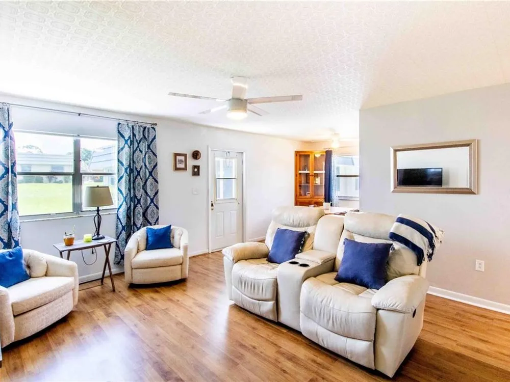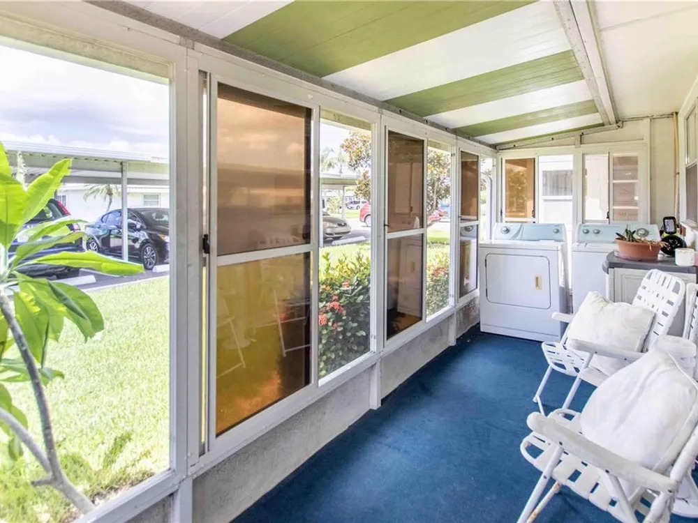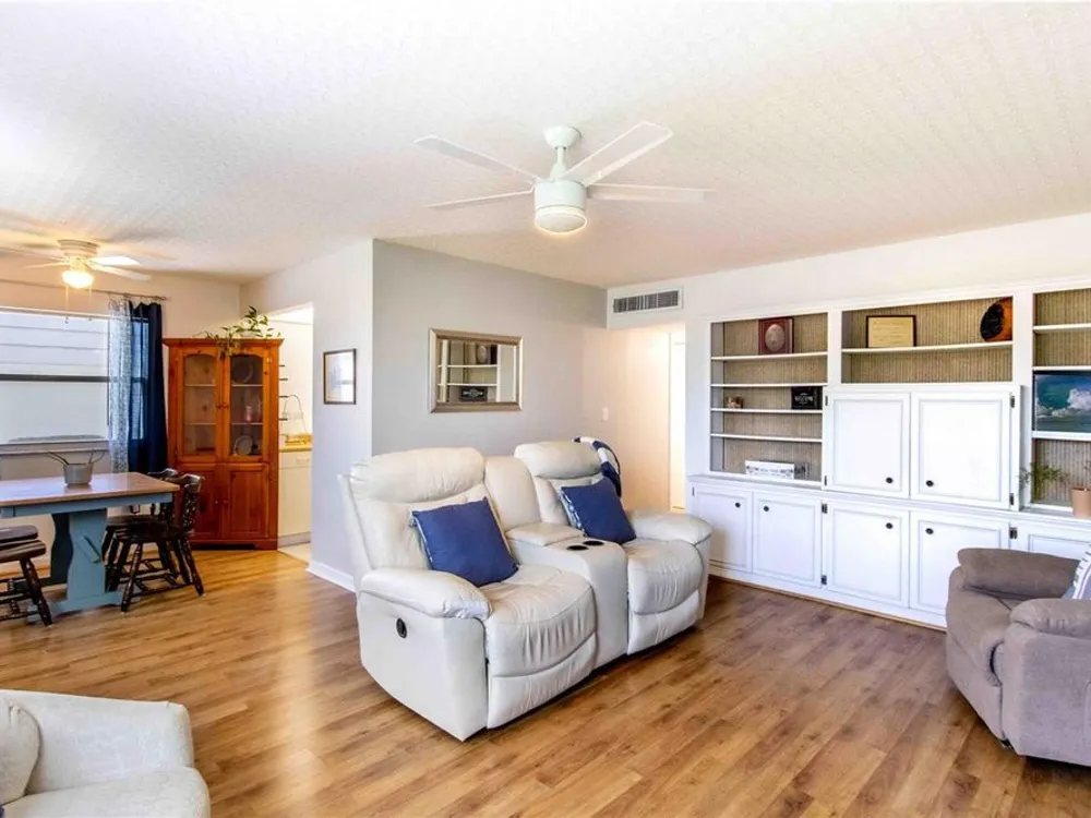 Under contract-accepting backup offers. Gorgeous and affordable Two Bed, Two Bath condo in thriving Kings Point. Enjoy the updated LVP flooring throughout, open floor plan, spacious bedrooms, Walk-In Primary bedroom closet, and recently updated Walk-In shower. Living room boast a beautiful custom built in bookshelf to add character and provide additional storage. Private lanai is perfect for enjoying the Florida weather. Condo comes with a community storage unit (pictured) and 1 reserved covered carport. HOA Fees includes almost everything! Cable, Internet, Water, Trash, Sewer, Lawn Care, Roof Care and Replacement, Exterior maintenance and painting! Not to mention all of the amazing clubs and amenities Kings point is famous for. Don't miss your opportunity to own an affordable piece of paradise. Schedule your showing today!