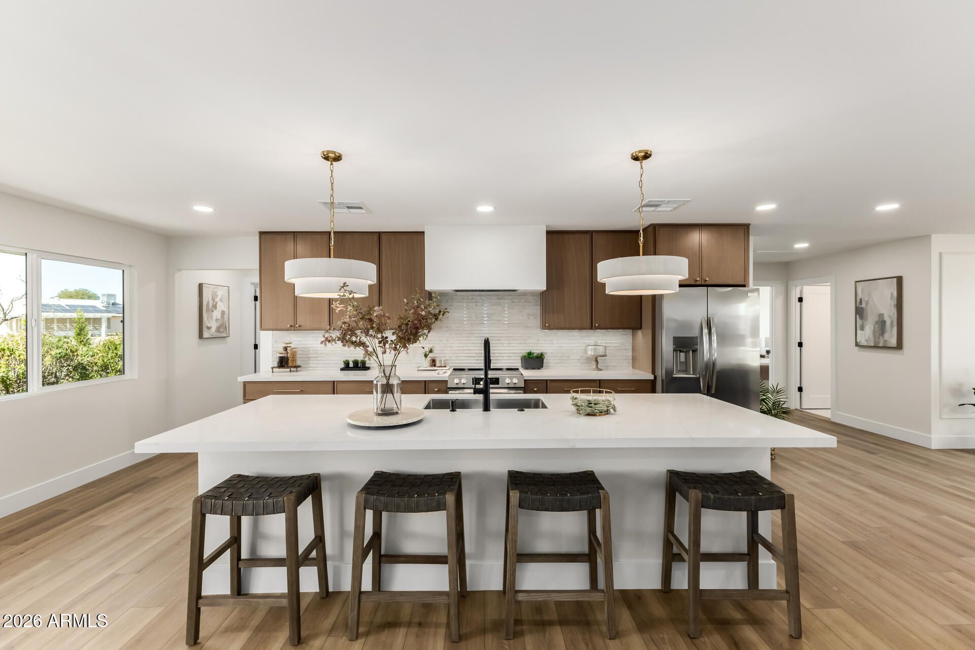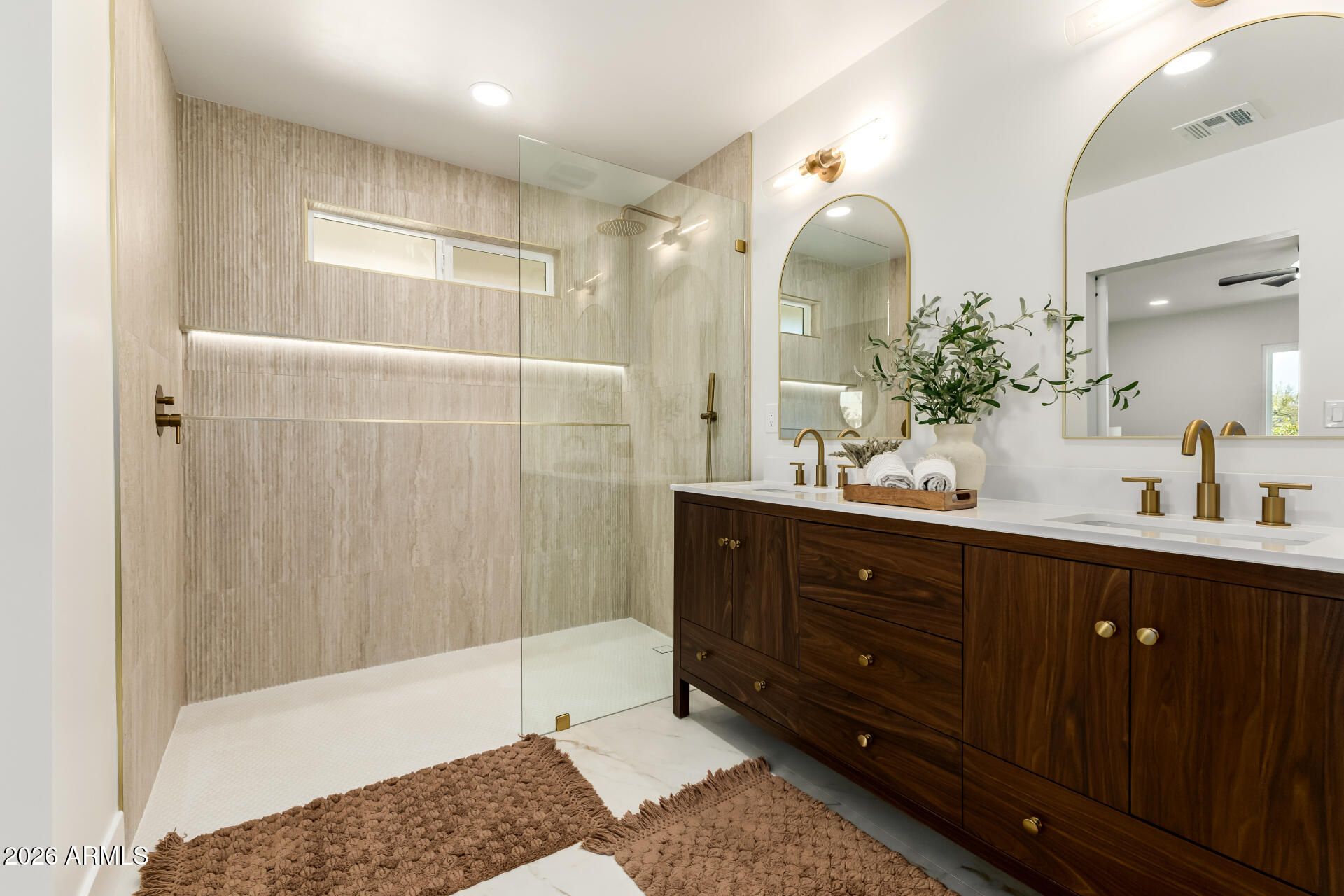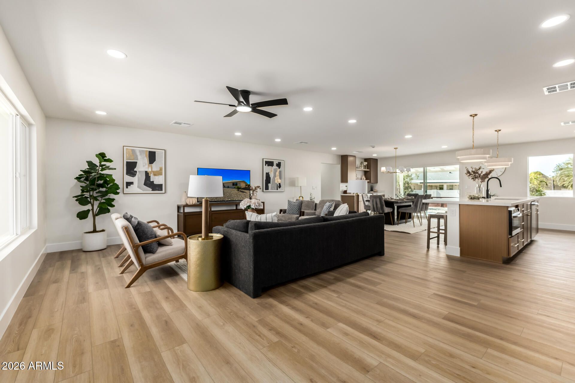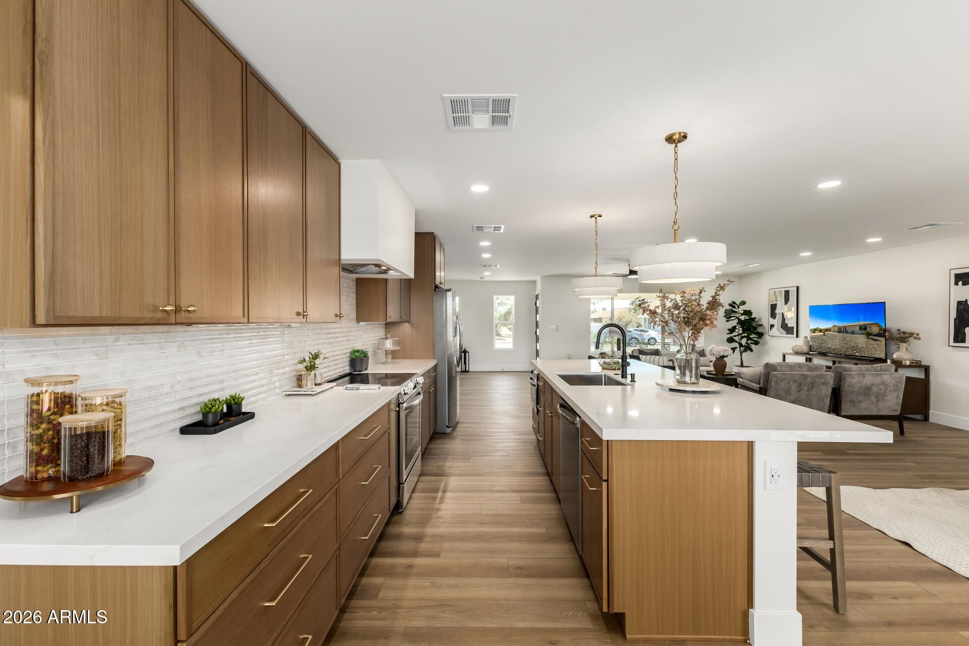 E X Q U I S I T E Golf Course Residence. Inside, you'll find a perfectly flowing layout showcasing clean lines in favor of a sleek & modern design. Soothing palette, recessed lighting t/o, & wide plank vinyl flooring are features you'll love! The stunning New kitchen boasts quartz counters, natural oak shaker cabinets, SS appliances, pendant lighting, under cabinet plugs & large custom island. End your busy day in one of the Two primary luxurious master suites. Lavish spa-like bathrooms, custom vanities, expansive custom showers with large rain shower heads. Large custom closets in each room. Spend relaxing afternoons in the expansive backyard, plenty of space for entertaining! N/S Exposure. Endless views.... This home is a 10!!! List of Improvements: New interior smooth wall texture, All New Curb-less Showers, New door hardware. New SS appliances All New lighting, New plumbing fixtures, New Interior flooring, New Windows and Sliding Doors. Updated Roof by previous owner , New Garage Epoxy, New interior and exterior paint and much more. New Patio Pavers, Updated Landscaping. New Patio Pergola.