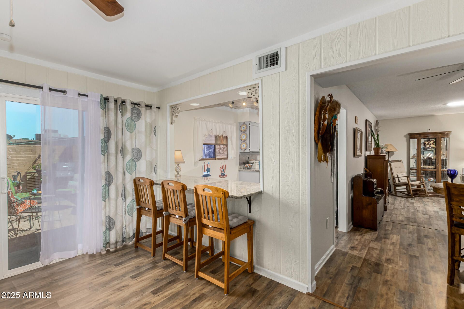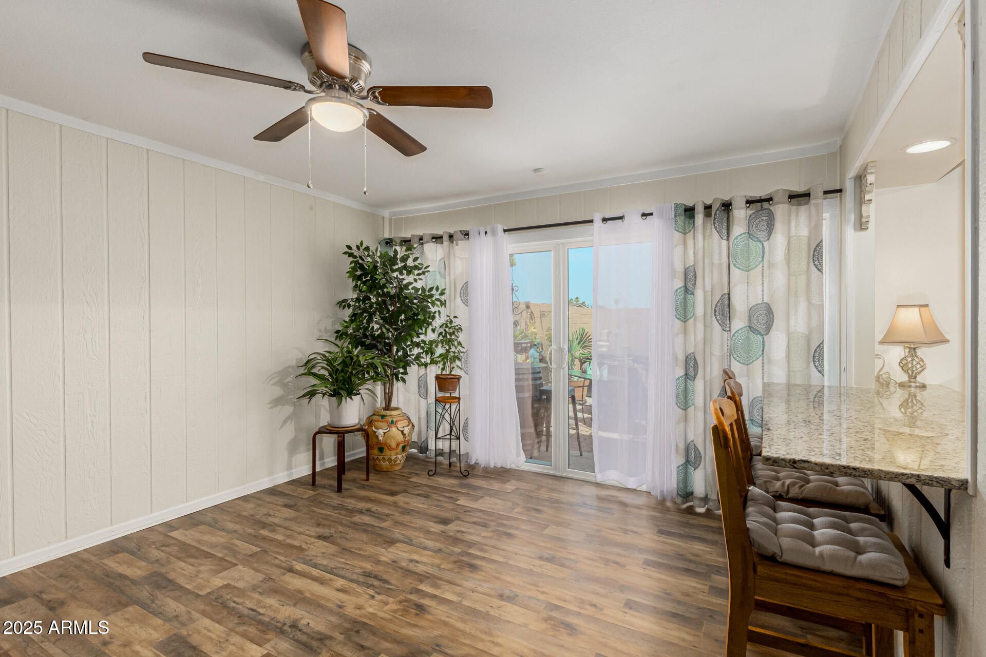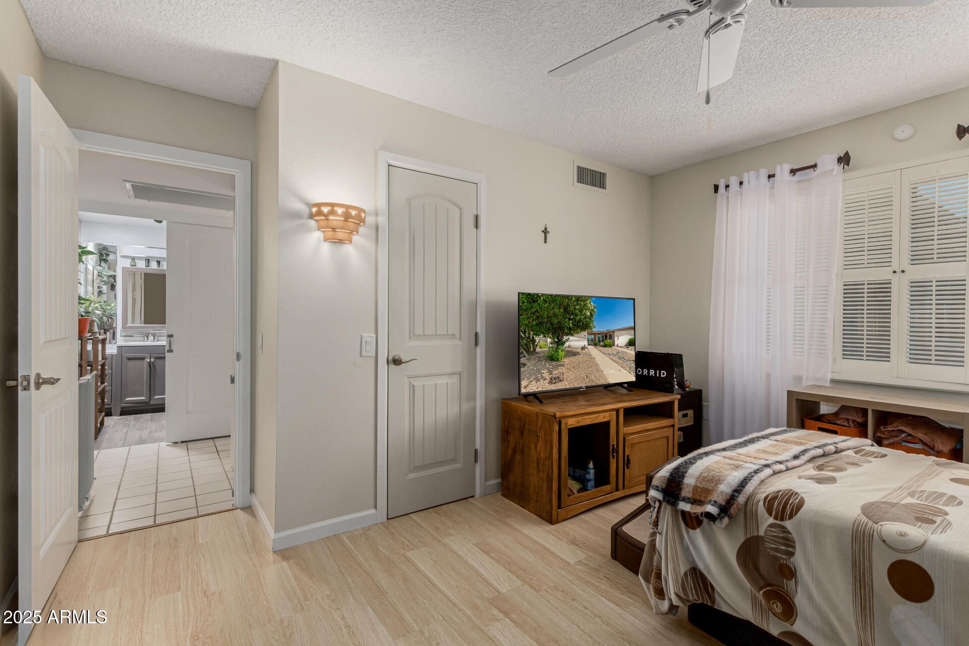 MUST SEE!! This 2 Bedroom 2 Bathroom Apartment Style Condo is located in a great location to enjoy all that Sun City West has to offer. Close to shopping dining and Recreation facilities. Enter to open Family room & Open dining area that has updated flooring along with Electric switches and plugs. Continue to a highly functional galley style kitchen with updated granite counter tops, new lighting & newer appliances. A Breakfast Bar is perfect for those quick meals. This home as an additional office space located just off the patio. The Primary Bedroom features a Custom Cedar Wall, new paint and updated flooring. The hall bathroom is handicap accessible and both bathrooms have newer commodes. Back Patio features a spa, shed and plenty of Sitting area to enjoy the Arizona weather.
