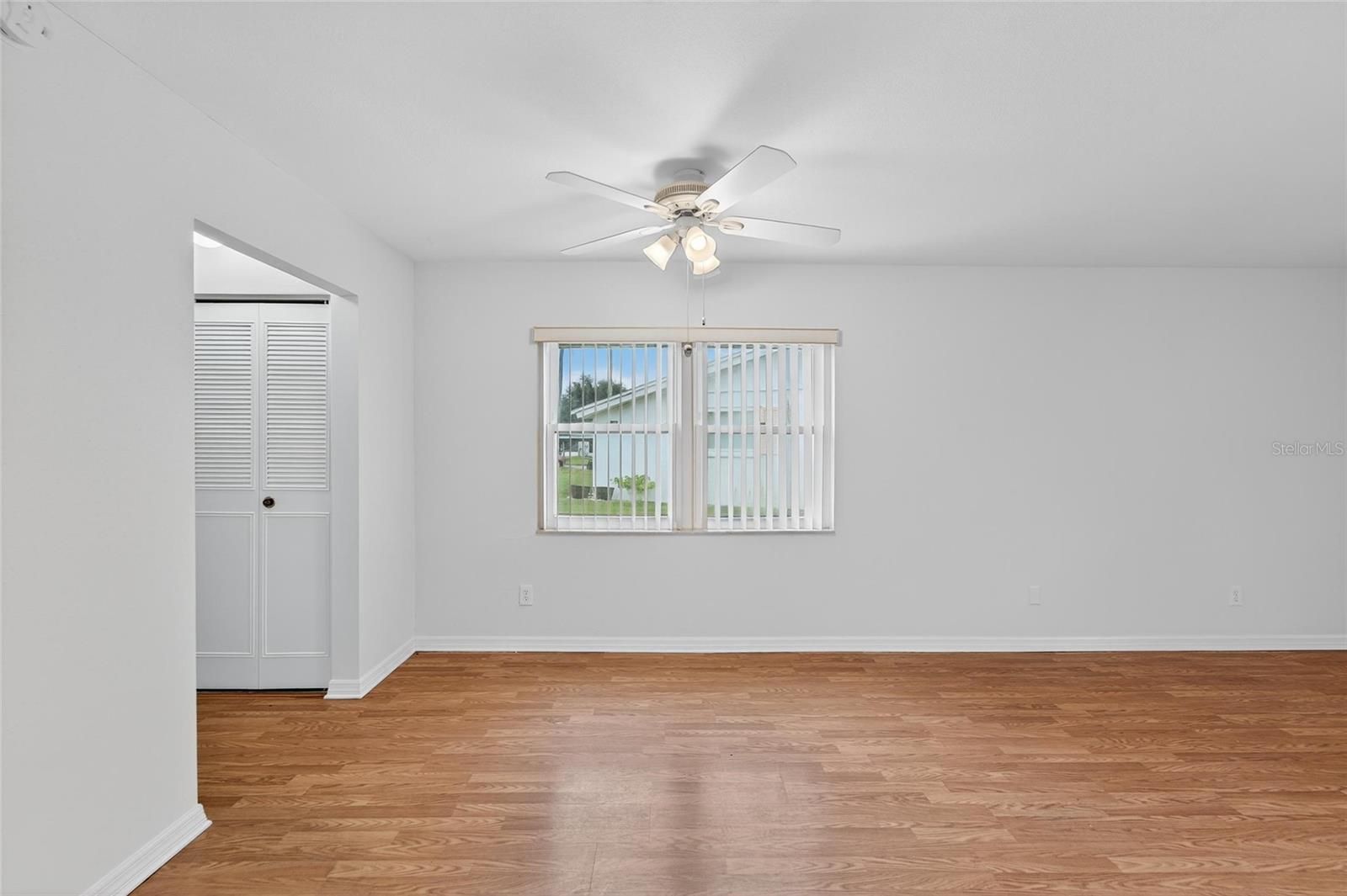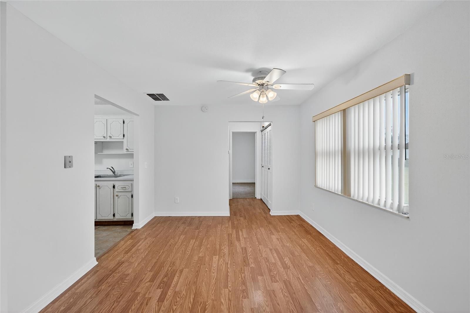 - Ceiling Fan(s), L-Shaped Dining Room, Open Floorplan, Main Level Primary, Thermostat, Window Treatments