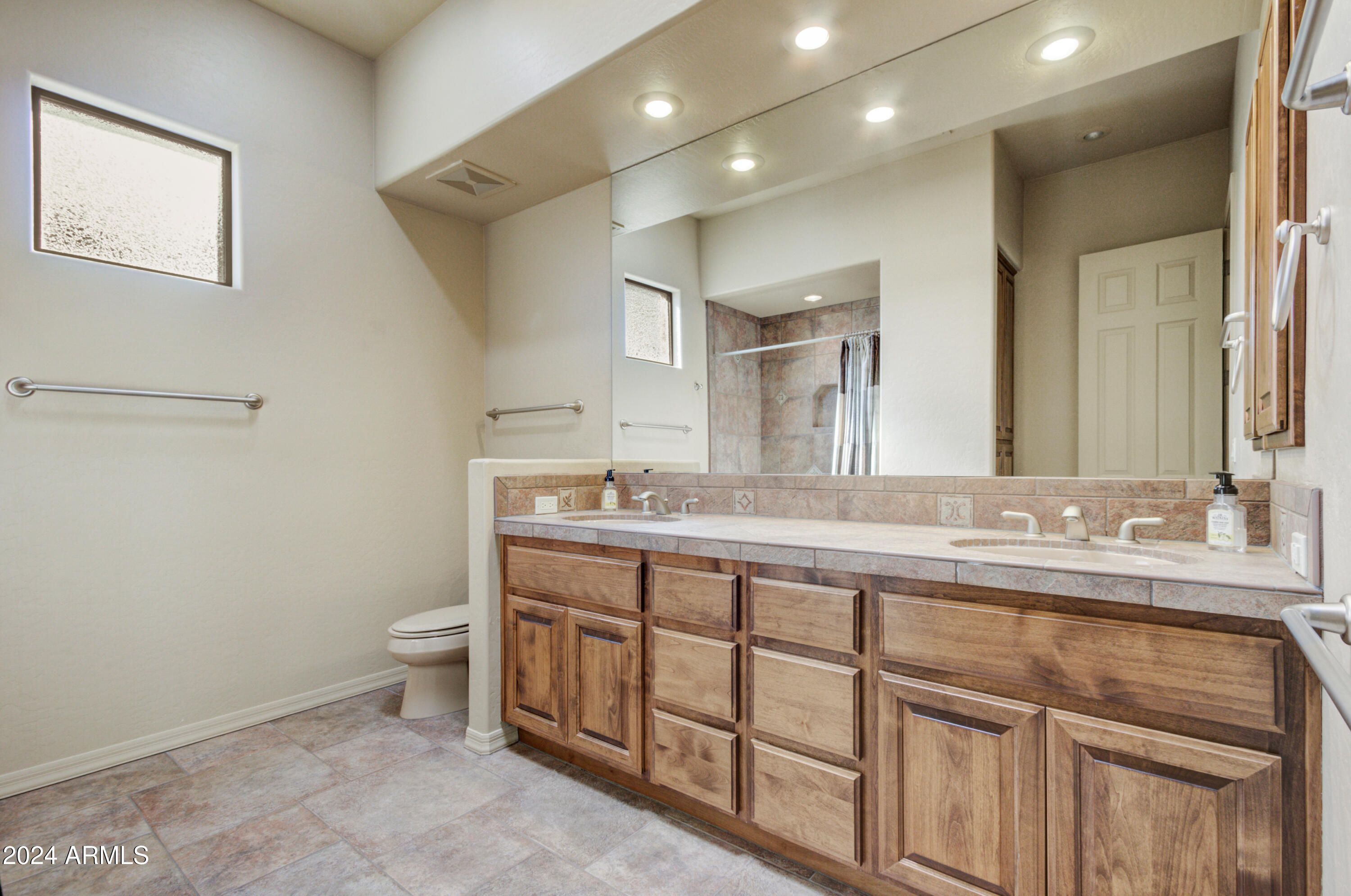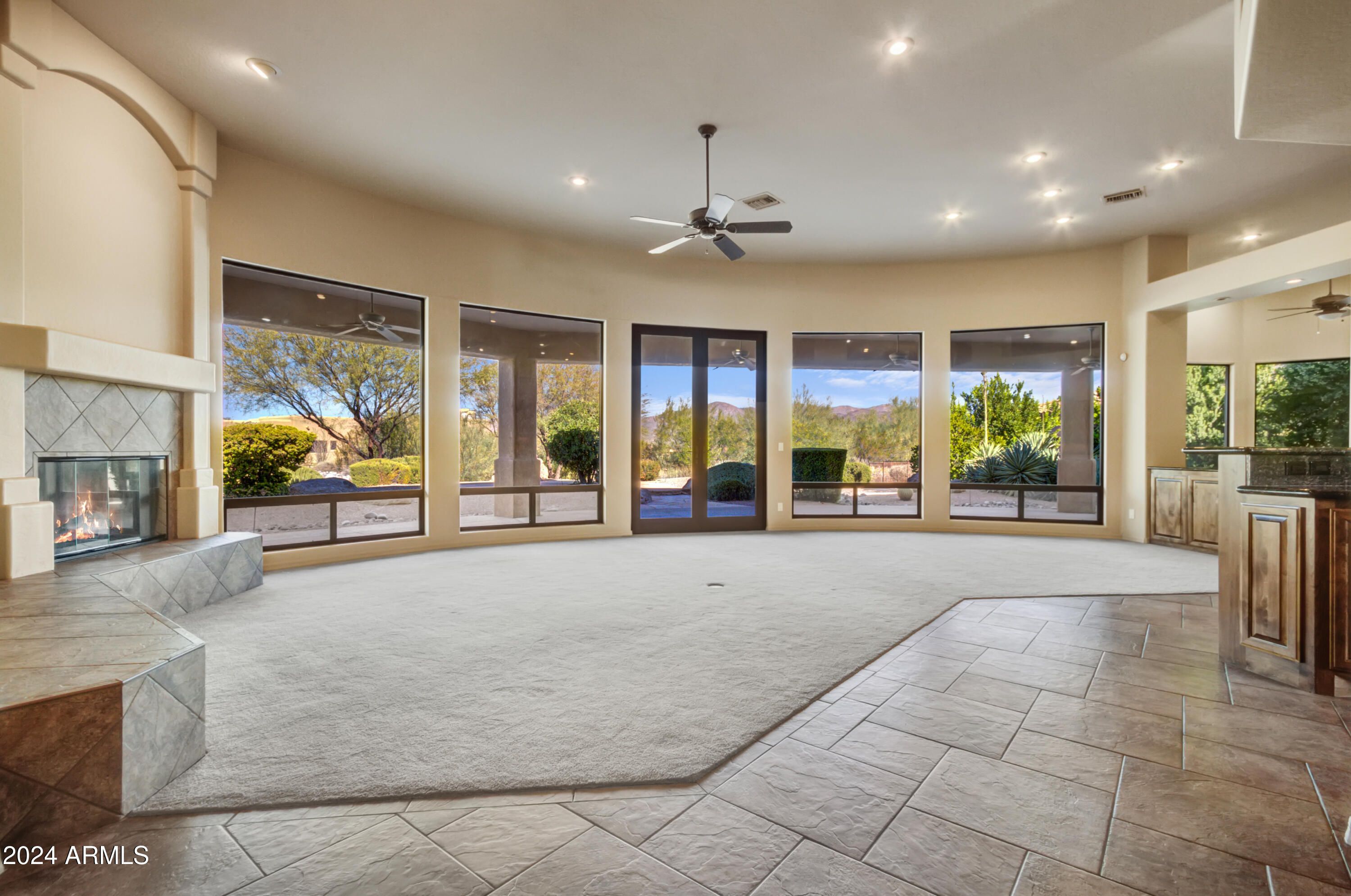 Quiet setting in the gated golf community of Tonto Verde. Large lot backs up to a wash with Mountain views. 3 Bedrooms, 2.5 Baths, Great Room, Den/Office/4th BR. 2 Dining areas, Open Kitchen. Granite Counters, Bar seating, Kitchen Island, Pantry, Dbl Ovens, Microwave. Split floorplan for the Bedrooms. Alderwood Cabinets, 8ft Interior Doors. AC units updated, wrap around covered patio with large windows for the views. Large Utility Room with sink and ample storage. 3 Car garage with over height doors, epoxy floor, storage cabinets and extended length. Gas fireplace in Living room, 12ft ceilings, tile & carpet flooring. Back yard with flagstone Firepit area and fenced in dog run. New Pickleball courts and dog park.