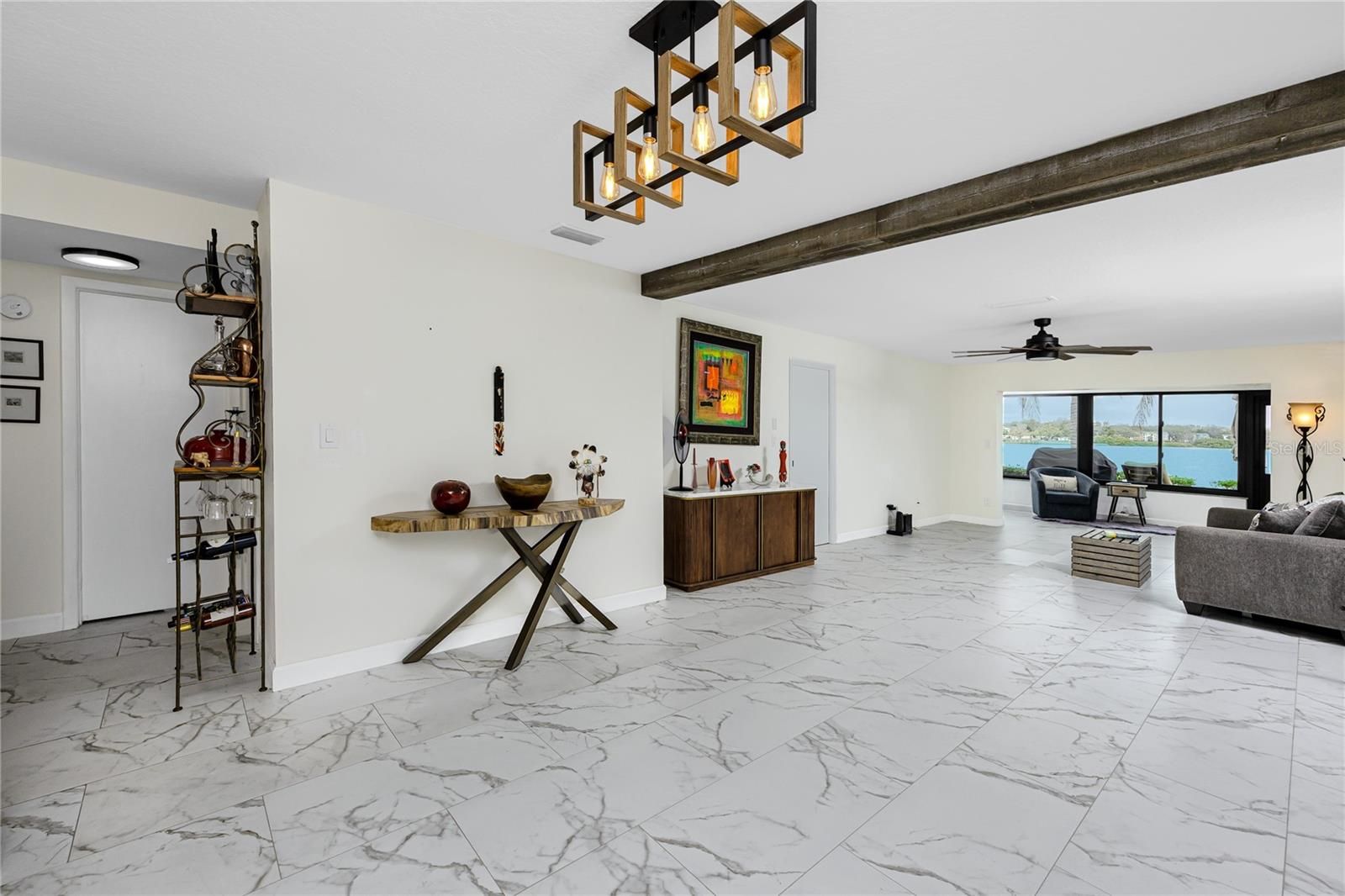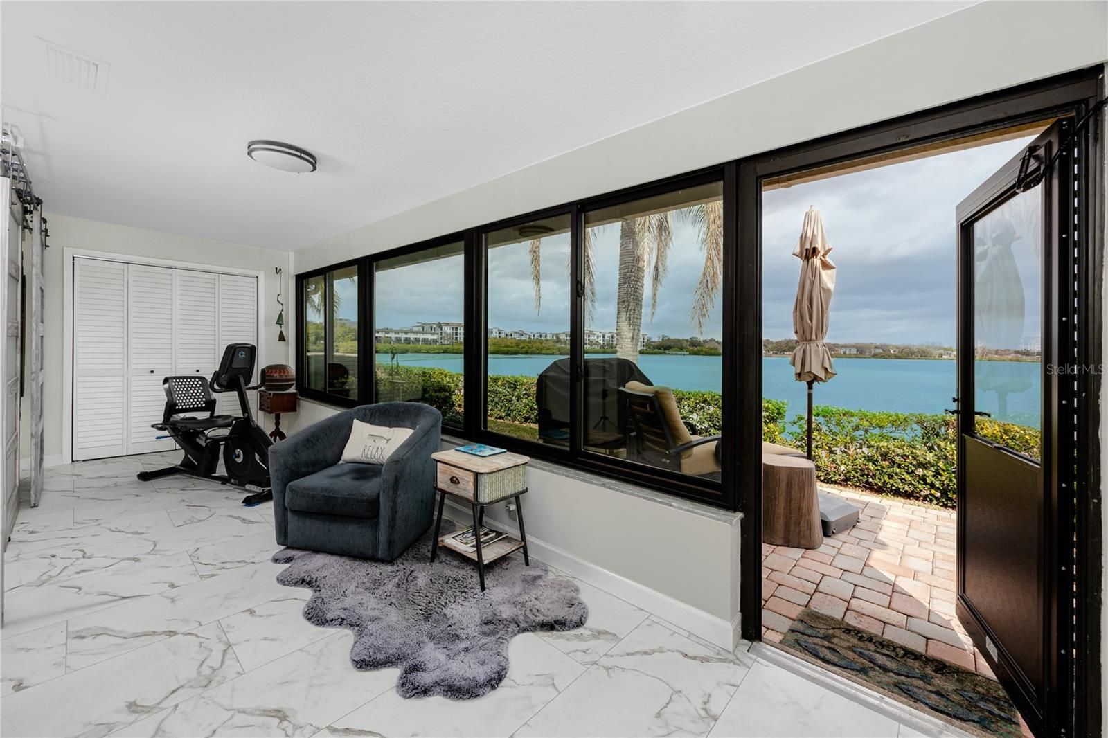 Experience true waterfront living with this beautifully updated 2-bedroom, 2-bath villa overlooking Tampa Bay. Offering spectacular open-water views, this residence invites you to enjoy year-round sunrises and coastal breezes from your enclosed Florida Room—perfect for morning coffee or relaxing anytime. Inside, you’ll find elegant marble-look tile flooring throughout—no carpet—and a modern aesthetic enhanced by updated lighting, upgraded fans, and a decorative beam feature in the living room. The stylish kitchen impresses with stainless steel appliances, a farmhouse-style sink, wine fridge, and pull-out cabinetry designed for maximum functionality. Wake up to gorgeous water views from the spacious Main Bedroom. The large walk-in closet offers abundant shelving and storage, while contemporary barn doors provide a beautiful transition into the Florida Room. The Main Bath is thoughtfully designed for organization, offering generous drawer and storage space. A convenient laundry closet includes a sink, additional storage, and an efficient all-in-one washer/dryer combo. This villa also comes with its own carport and storage closet. Located in the highly desirable Imperial Cove, a gated 55+ waterfront community, residents enjoy a wealth of amenities: heated pool, billiards, shuffleboard, putting green, card rooms, library, fitness center, a lighted walking path along Tampa Bay, fishing pier and frequent dolphin and manatee sightings in the community lagoon. The Clubhouse features free Wi-Fi, and outdoor grills by the pool make entertaining a breeze. All of this just minutes from shopping, dining, Costco, Sam’s Club, Home Depot, and more. Come live the lifestyle you deserve at Imperial Cove—Clearwater’s “Best Kept Secret”!