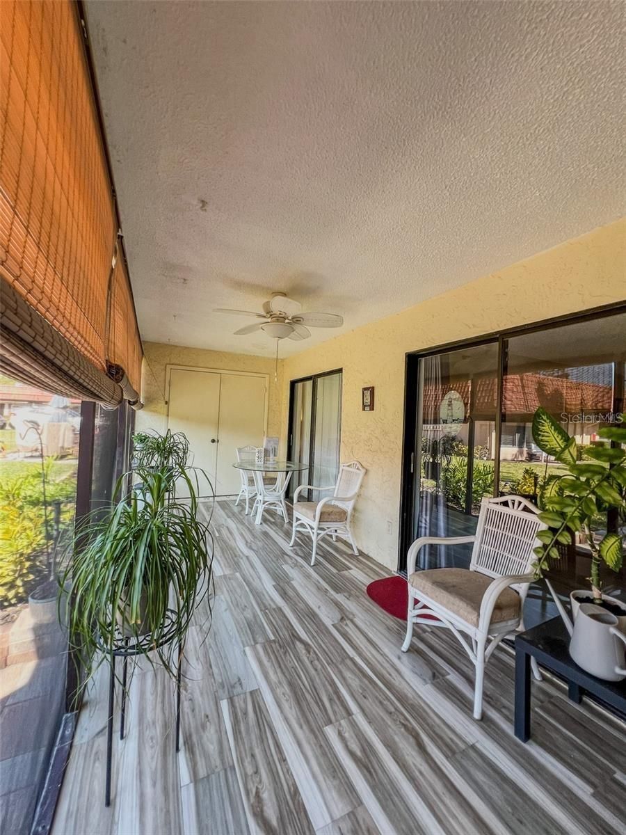 Beautiful Waterfront Imperial Cove on Tampa Bay! A resort style 55+ gated community with plenty of amenities and activities. This spacious 2-bedroom 2 bath features an inside laundry room, huge tiled 22’ x 8’ screen-in covered lanai with privacy roll down shades and an outside 11’ x 11’ paver porch with room for a grill and table with chairs, covered parking and additional storage. The split bedroom and open floorplan feature luxury vinyl plank and ceramic tile throughout with multiple sliding glass doors for plenty of natural lighting! The master bedroom offers a 6’ x 4’ walk-in closet, built-in desk, ceiling fan and sliding glass door out to the lanai and has a remodeled en-suite bath with a stunning 5’ x 7’ shower! The guest bath has also been remodeled with a tub/shower combo and inside the covered lanai is an additional 7’ x 4’ storage room. Conveniently located close to Costco, Sams Club, Clearwater Mall, Best Buy, restaurants, airports, and the world-famous Clearwater Beach! Imperial Cove is a hidden waterfront gem featuring an enormous, heated pool, 2 fishing docks, lighted mile long walkway along the water’s edge, shuffleboard, putting green, fitness center, billiards, ballroom, and there is a Social Director on site in the Clubhouse to help you plan your resort lifestyle!