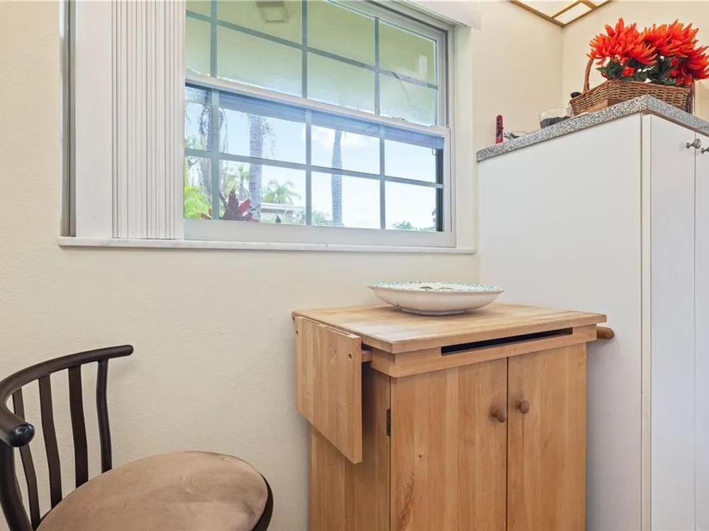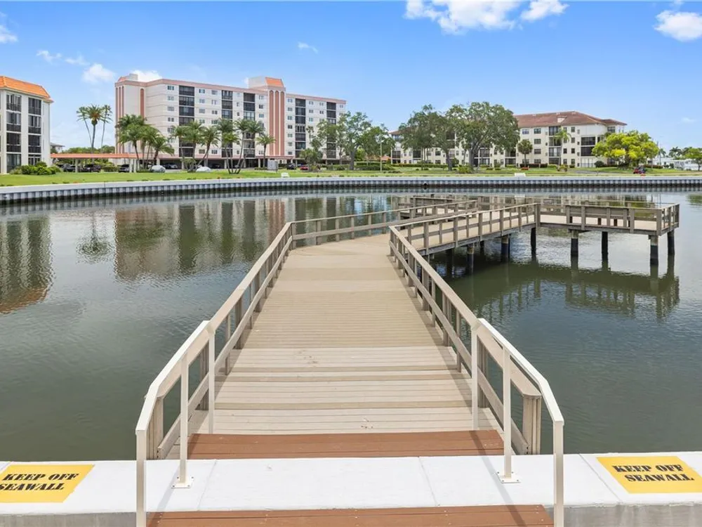 In Imperial Cove, a gated 55-plus waterfront community, this well-maintained residence offers immediate proximity to the community’s top amenities. Adjacent to the pool and parking area, it also enjoys views of a tranquil fountain. Conveniently situated, the carport, mailboxes, guest parking and laundry facility are all near the home. The layout includes a front-facing half bath, with the kitchen to the right upon entry. An expanded pantry adds storage not found in comparable residences. The dining area and living room flow into a bright Florida room overlooking the fountain. The spacious bedroom features upgraded windows, and the bath has been refreshed since the owners’ purchase. Additional updates include a new storm door and replaced windows in the front and bedroom. Imperial Cove provides a comprehensive suite of amenities such as a clubhouse with library, billiards and card rooms, fitness center, party space with dance floor, and dedicated men’s and women’s saunas. Outdoor features include barbecue grills, a putting green, shuffleboard and a heated pool with water aerobics. A scenic path along Tampa Bay leads to two fishing piers and offers illuminated seating areas for relaxation.