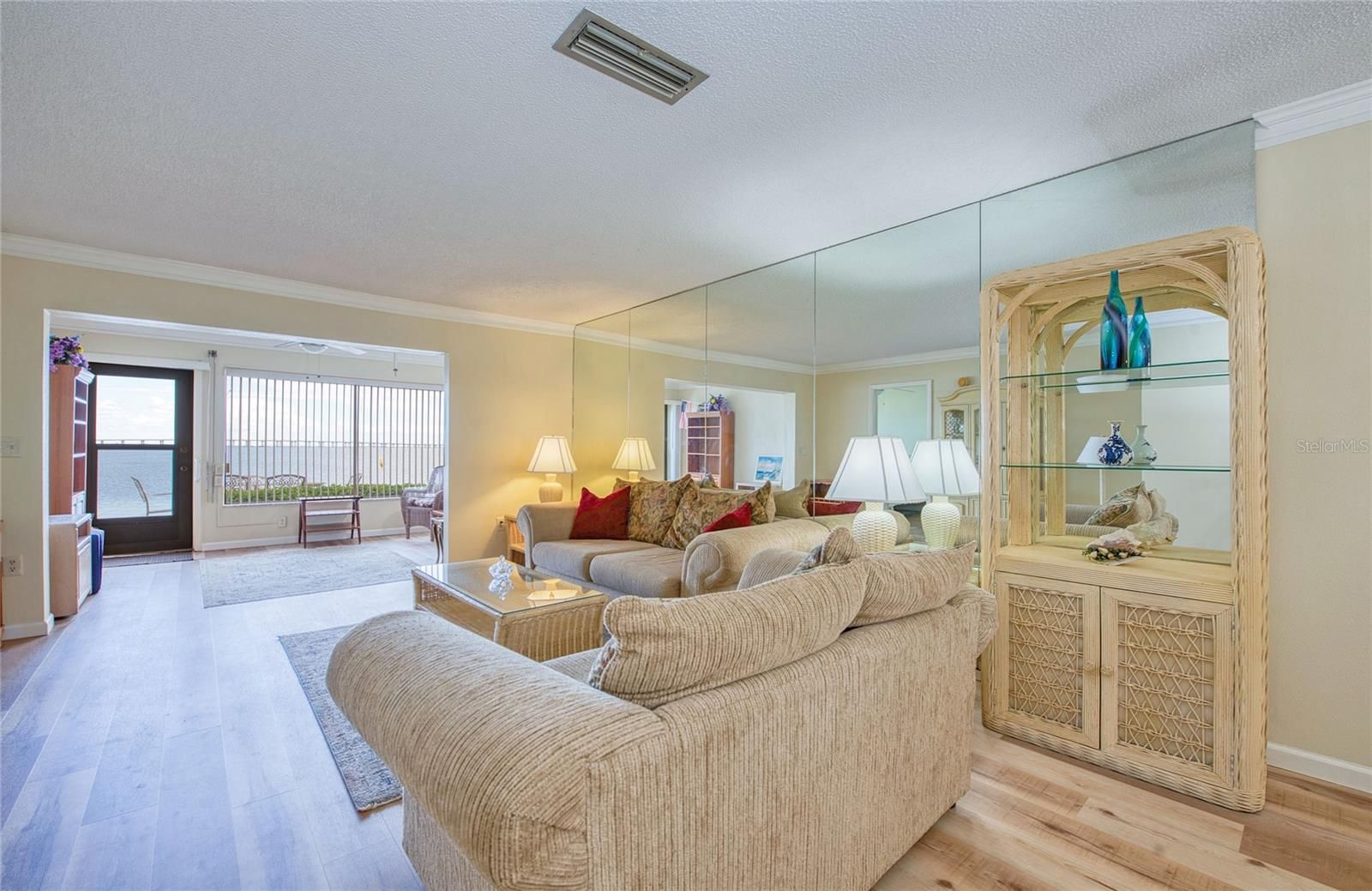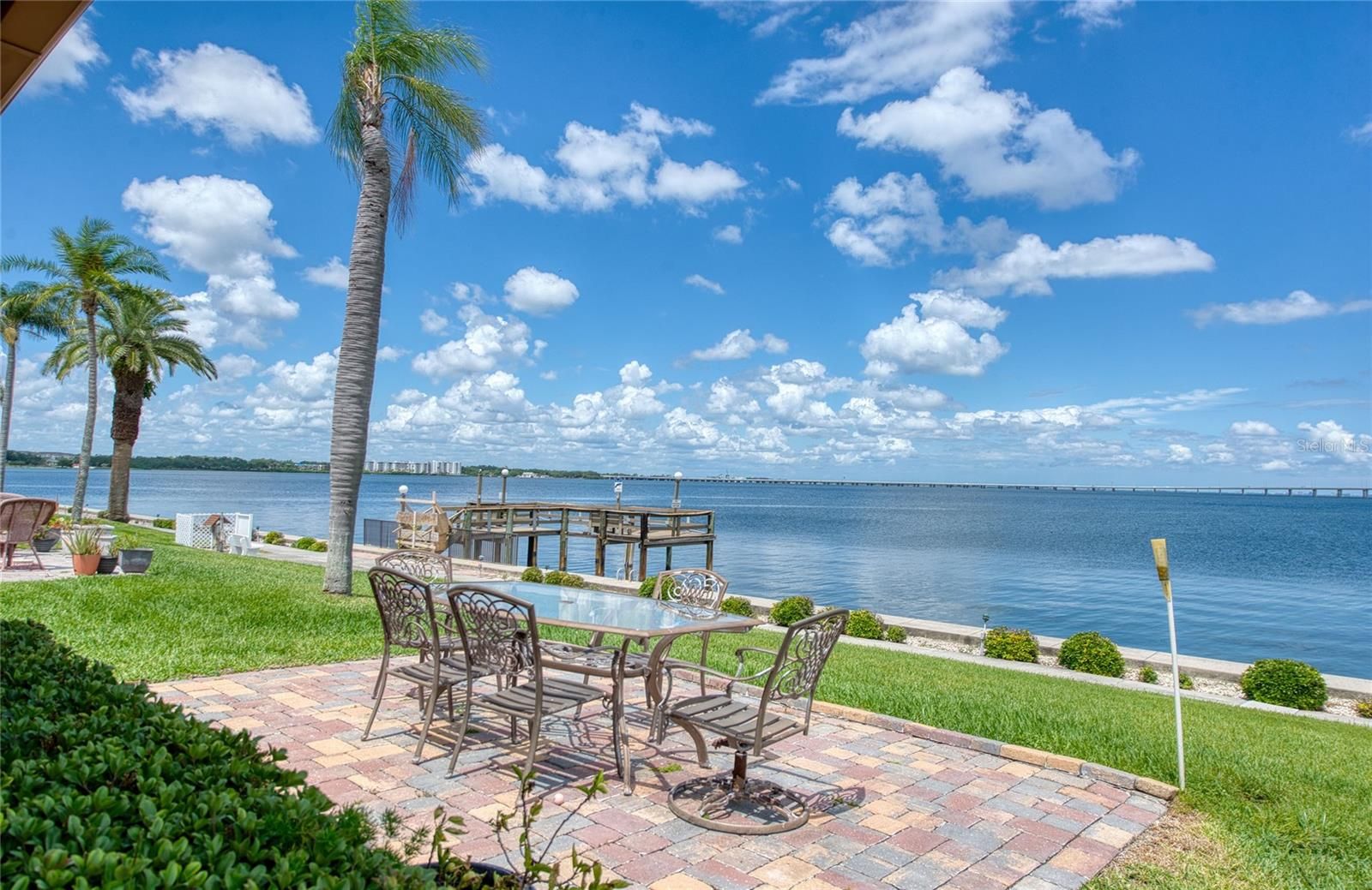 WATERFRONT! 2/2 furnished villa with spectacular views of Old Tampa Bay. The split bedroom floor plan boasts spacious bedrooms with large closets and en-suite primary bathroom with dual sinks. Newer LVP flooring in living areas and primary bedroom. Newer carpet in second bedroom. There is indoor laundry room with cabinetry. Hurricane shutters installed on rear windows and doors. Assigned covered parking and storage unit. There is also ample guest parking. Enjoy the sunrise on large patio while watching the dolphins and manatees. A full roof replacement was completed in April 2025. Condo fee includes water, sewer, trash, exterior maintenance, grounds, roof, internet/cable, and flood insurance. Imperial Cove is an active 55+ gated waterfront community with many amenities, including: a lighted waterfront pathway with views of Old Tampa Bay, a large heated pool, fishing piers, shuffleboard and a putting green. The clubhouse has secured key fob entry, many activities with onsite social director, fitness rooms, saunas, library, billiards, and ballroom. Centrally located, near airports, shopping, restaurants, banking, groceries, entertainment and close to beach. Schedule a showing for this must see hidden gem!