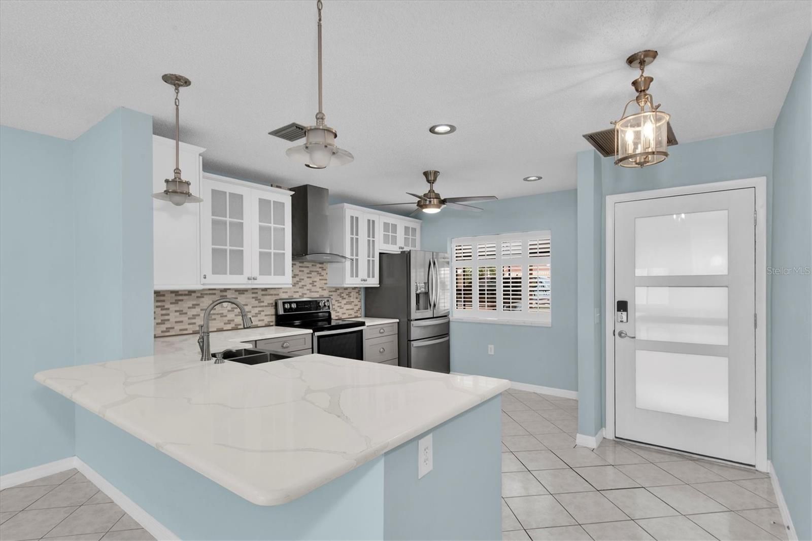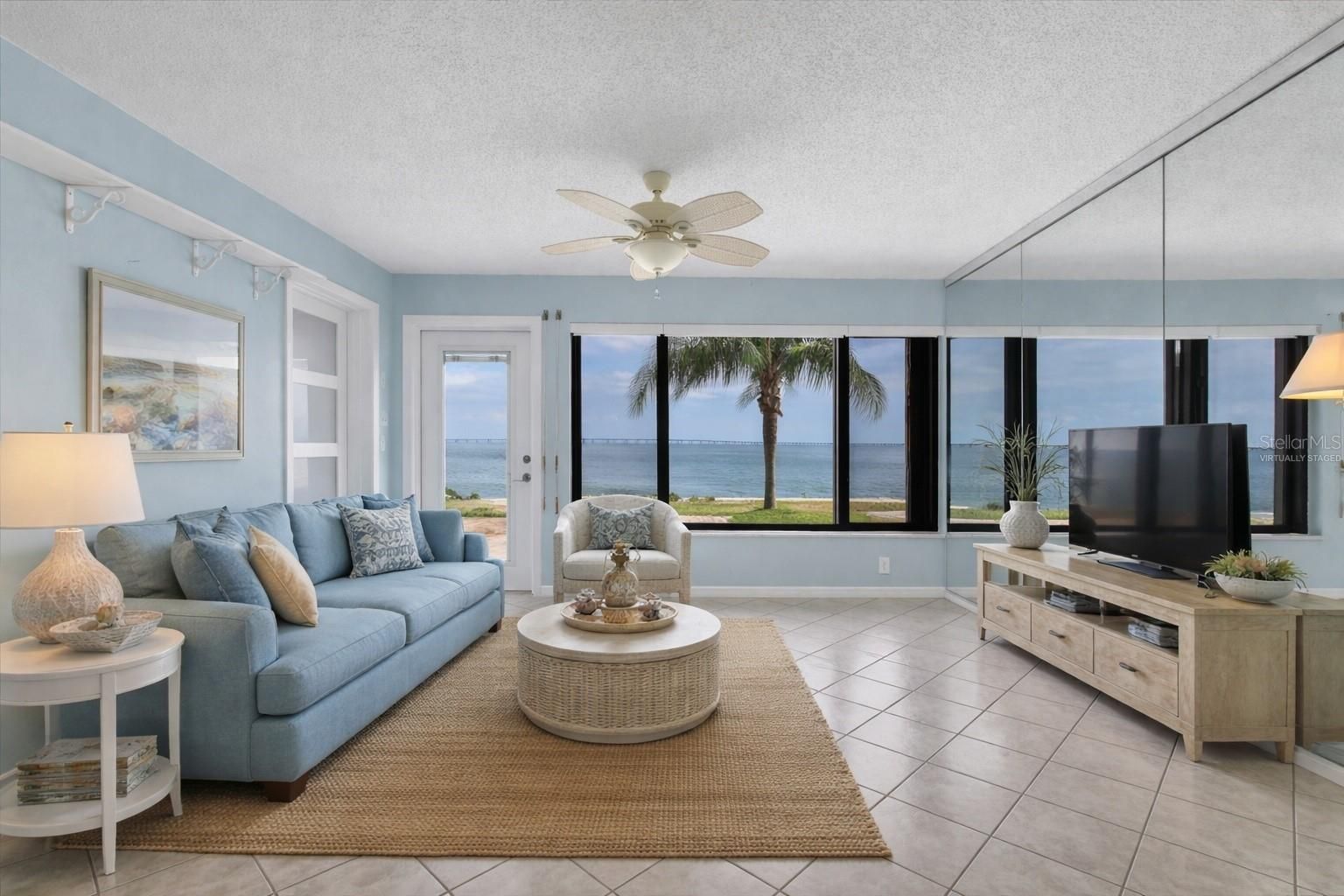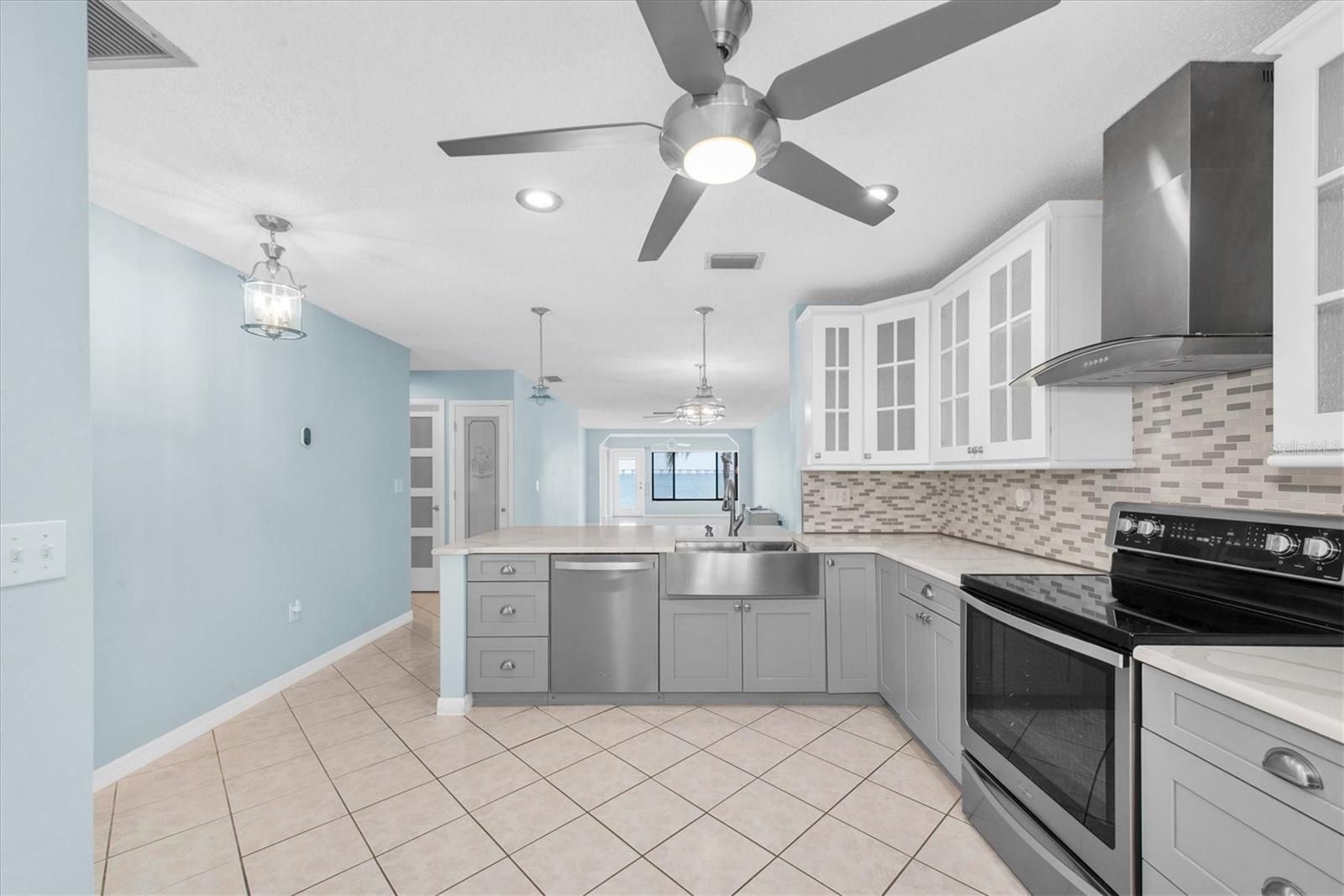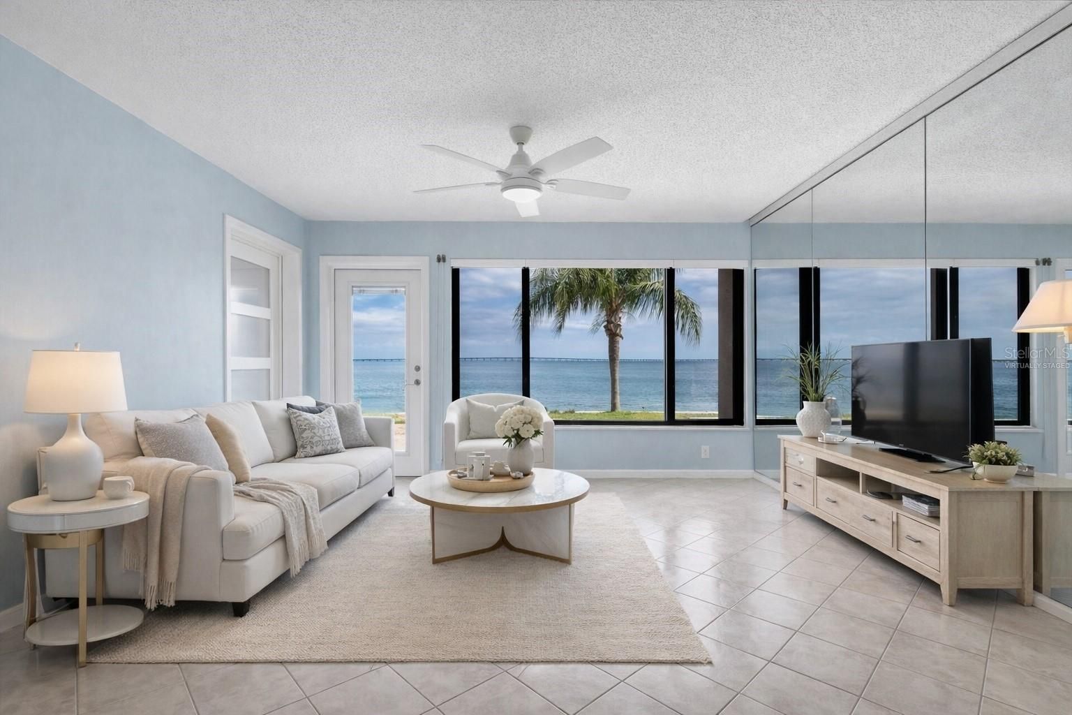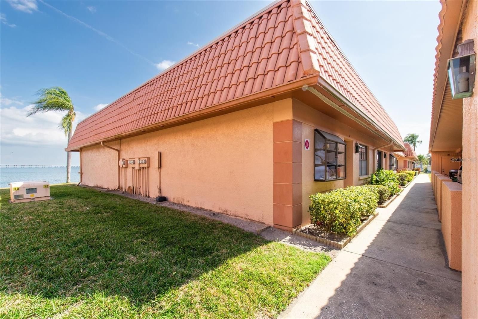 One or more photo(s) has been virtually staged. Imagine waking up to this view every day! Seller financing available!! This completely renovated villa is ideally located in the heart of Pinellas County, close to airports, shopping, dining, golf courses, and world-famous Clearwater Beach. Situated in a gated 55+ community, residents enjoy an active lifestyle with a clubhouse, heated pool, community center, and scenic walking trail along Tampa Bay. Inside, the villa has been thoughtfully updated from top to bottom. Features include a tankless water heater, electric blinds, keyless entry, and security cameras. The beautifully remodeled kitchen showcases top-of-the-line stainless steel appliances, quartz countertops, glass backsplash, soft-close cabinets and drawers, plus both bar seating and a cozy kitchenette area. Additional upgrades include frosted glass interior doors, continuous ceramic tile flooring throughout, and two fully renovated bathrooms. The primary bedroom offers tranquil water views, while the east-facing windows provide stunning sunsets reflecting over the bay. For added peace of mind, the condo did not flood during the 2024 storms, and the new roof means one more major improvement already completed for the next owner. The centrally located indoor laundry room features raised washer and dryer units for easy access, plus extra storage space. This community truly has it all — and this beautifully updated villa is the perfect blend of comfort, convenience, and lifestyle. Schedule your private showing today!