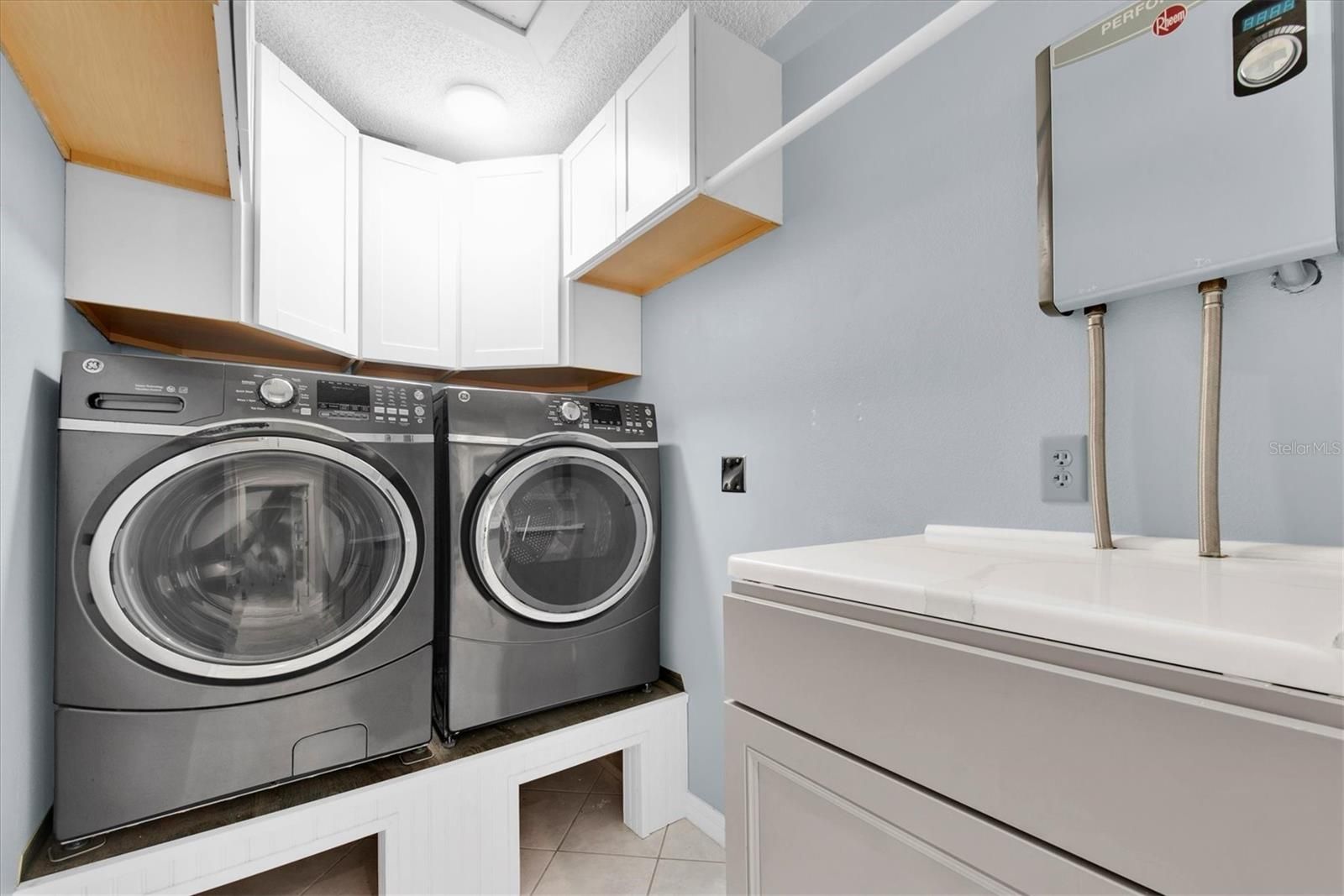 - Dishwasher, Disposal, Dryer, Microwave, Range, Refrigerator, Tankless Water Heater, Washer
