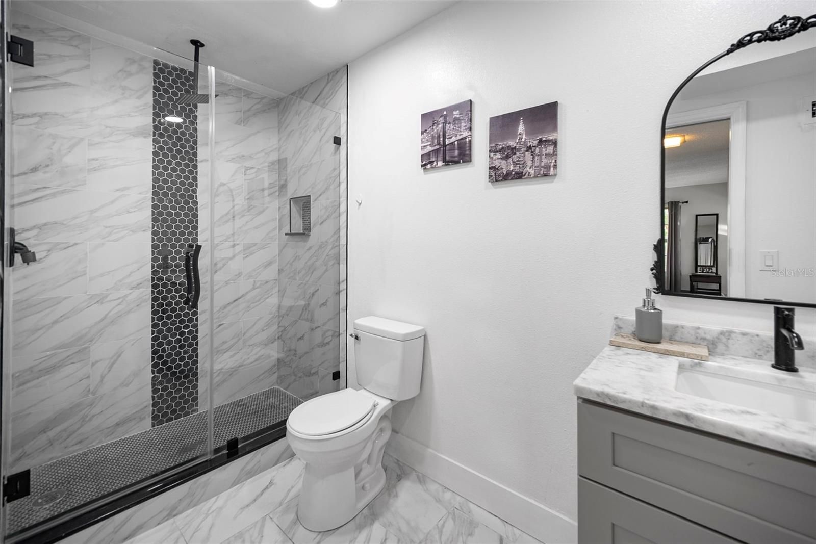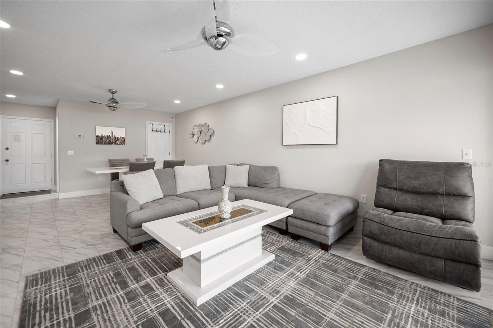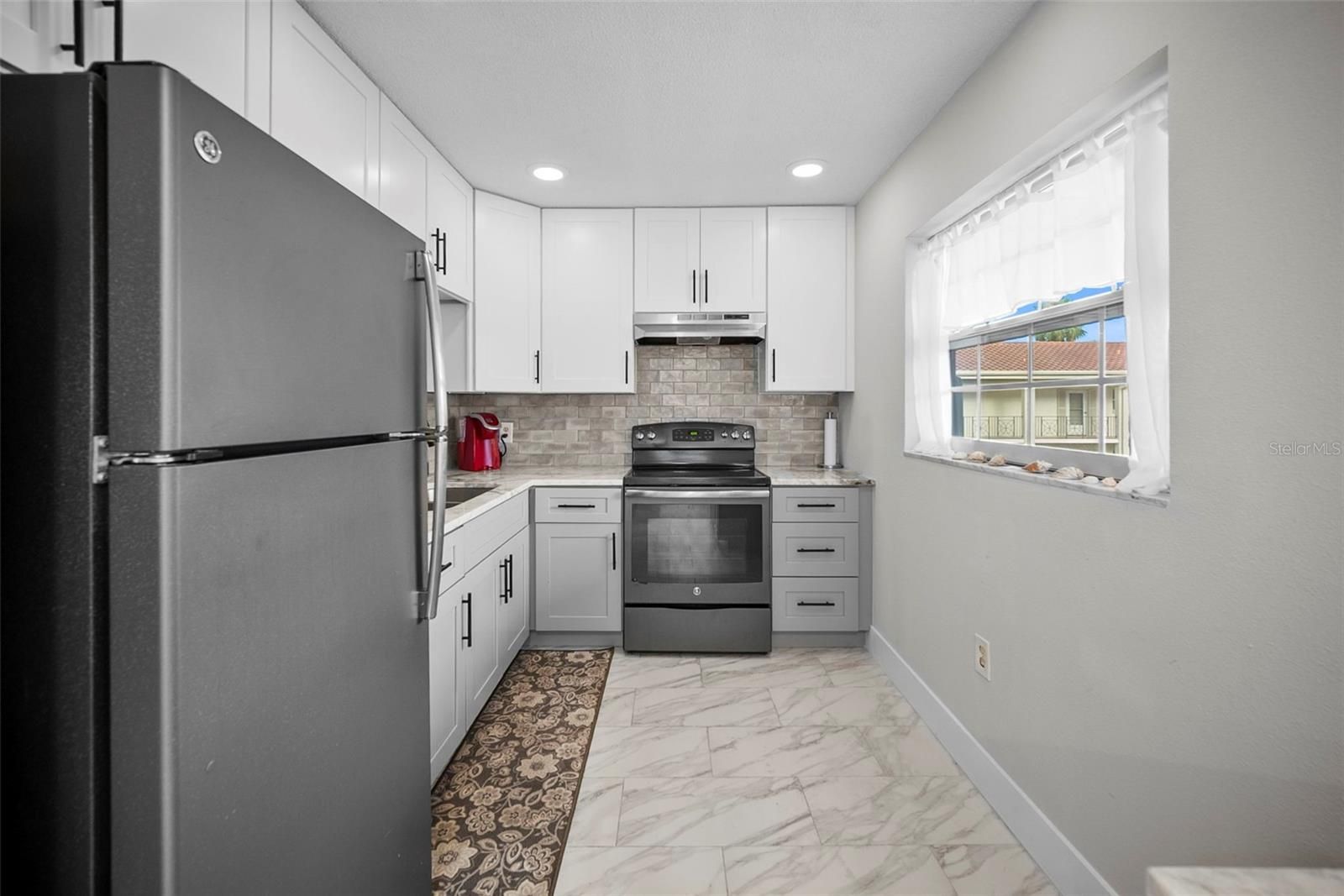 Waterfront Living at It’s Finest! As you walk into this beautifully updated second-floor condo, you are immediately welcomed by modern finishes and thoughtful design. To your right, a fully remodeled kitchen awaits, featuring brand-new shaker cabinets, marble-style granite countertops, porcelain tile flooring, and contemporary light fixtures, while to your left you’ll find a convenient half bath with fresh updates. Continuing, the space opens into a bright dining and living area that flows seamlessly into the remodeled sunroom. Sliding glass doors connect both the living room and the bedroom directly to this versatile sunroom, offering an abundance of natural light and a perfect spot to relax or entertain. The bedroom retreat is positioned just off the living room and includes dual closets, one walk-in and one standard, providing excellent storage. The en suite master bathroom is a showstopper with a brand-new, fully tiled walk-in shower, granite countertops, and modern finishes. Additional storage can be found in the dining and kitchen areas, plus a dedicated storage room is located downstairs for added convenience. Throughout the condo, every detail has been refreshed with new walls, molding, light fixtures, porcelain tile flooring, and fresh paint, giving the home a crisp, modern feel. This 55+ community is designed for resort-style living, featuring an Olympic-sized pool with sweeping ocean views, beautifully landscaped grounds, and a wide array of amenities. The HOA provides exceptional value, covering cable TV, escrow reserves, insurance, exterior maintenance, landscaping, pest control, pool, recreational facilities, security, sewer, trash, and water. Best of all, no flood insurance is required, and the property remained unaffected during recent storms including Hurricanes Milton and Helene. With one assigned parking spot, plenty of guest parking, a monthly condo fee of $488, and close to Costco, Clearwater Mall, Tampa International Airport, Gulf beaches, restaurants, and more, this resort-style property offers the perfect combination of comfort, confidence, and an active lifestyle in a prime waterfront location. If you can see yourself living here, message me today to schedule your private showing.