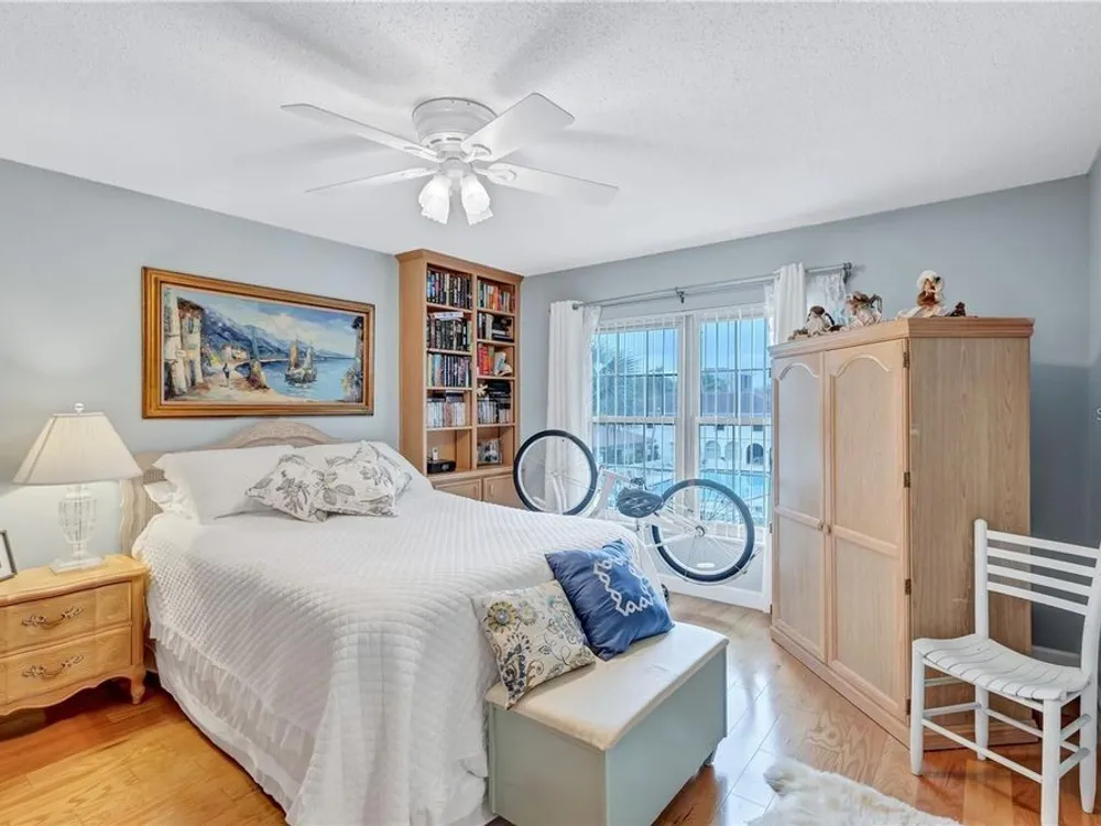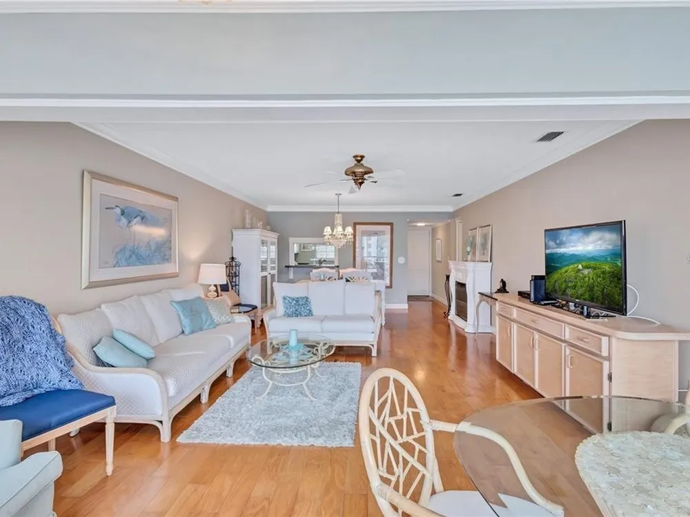This active over 55 community will keep you young at heart. This condo is situated in the best location in The Cove. You will enjoy the view of the Cove, plus the pool, shuffleboard, putting green and all of the amenities of the clubhouse. You notice the gorgeous hardwood floors as you enter, and then the updated, elegant kitchen to the right. But the VIEW as you enter the living area is spectacular with the full windows giving so much radiance. Each bedroom has been updated. A full ballroom for dinners, dances and entertainment. There is a billiard room and two workout rooms with saunas. Also, two game rooms and a library with a covered patio by the pool with grilling for everyone. The Cove flows out to the Bay which surrounds the community. You will want to bring your fishing gear.