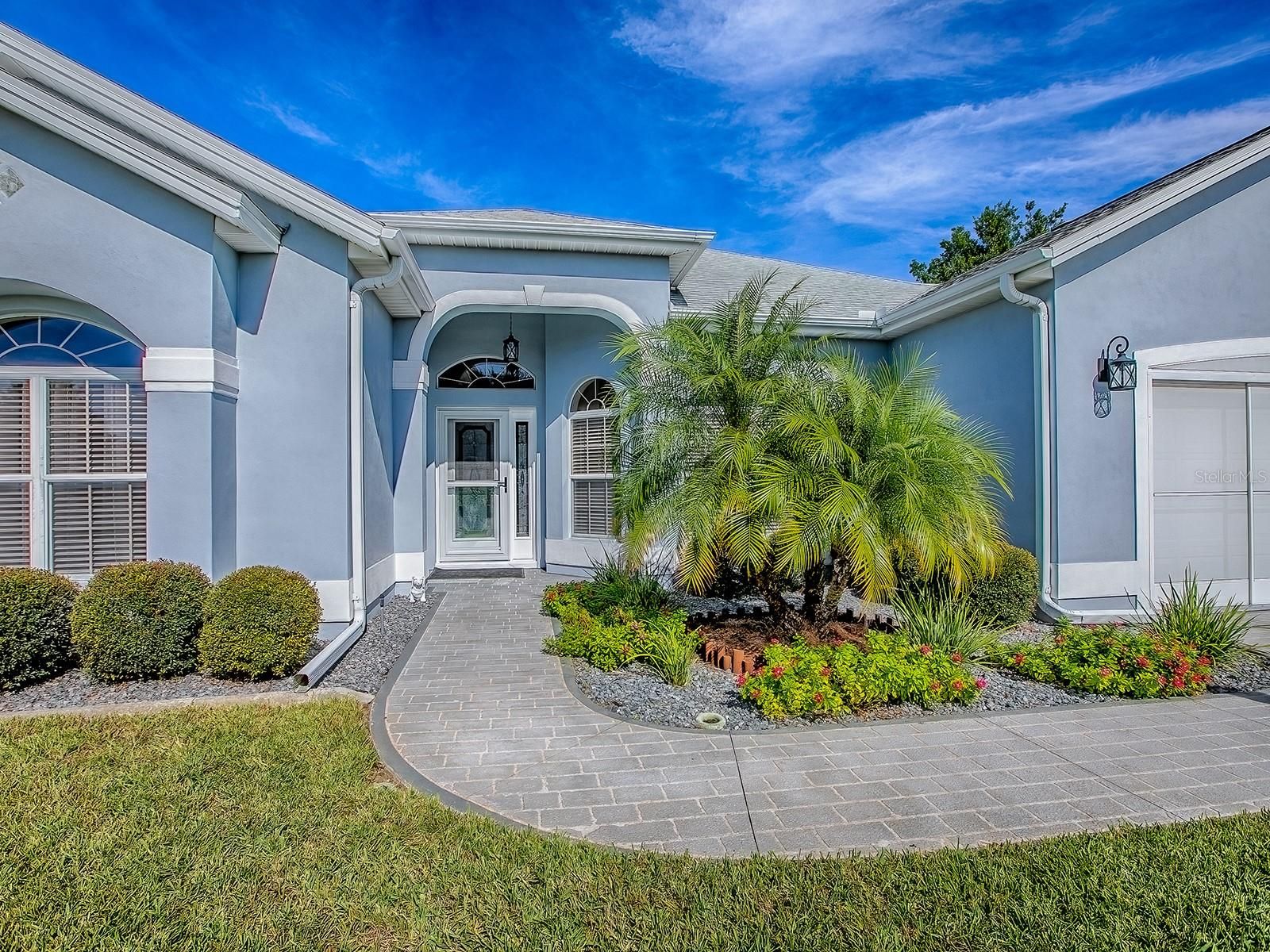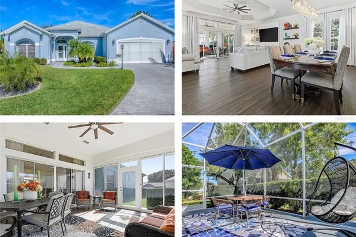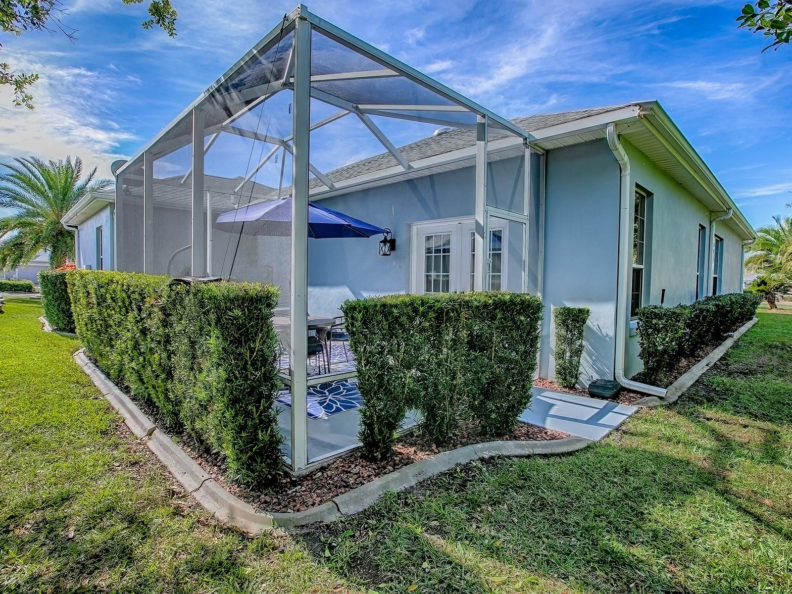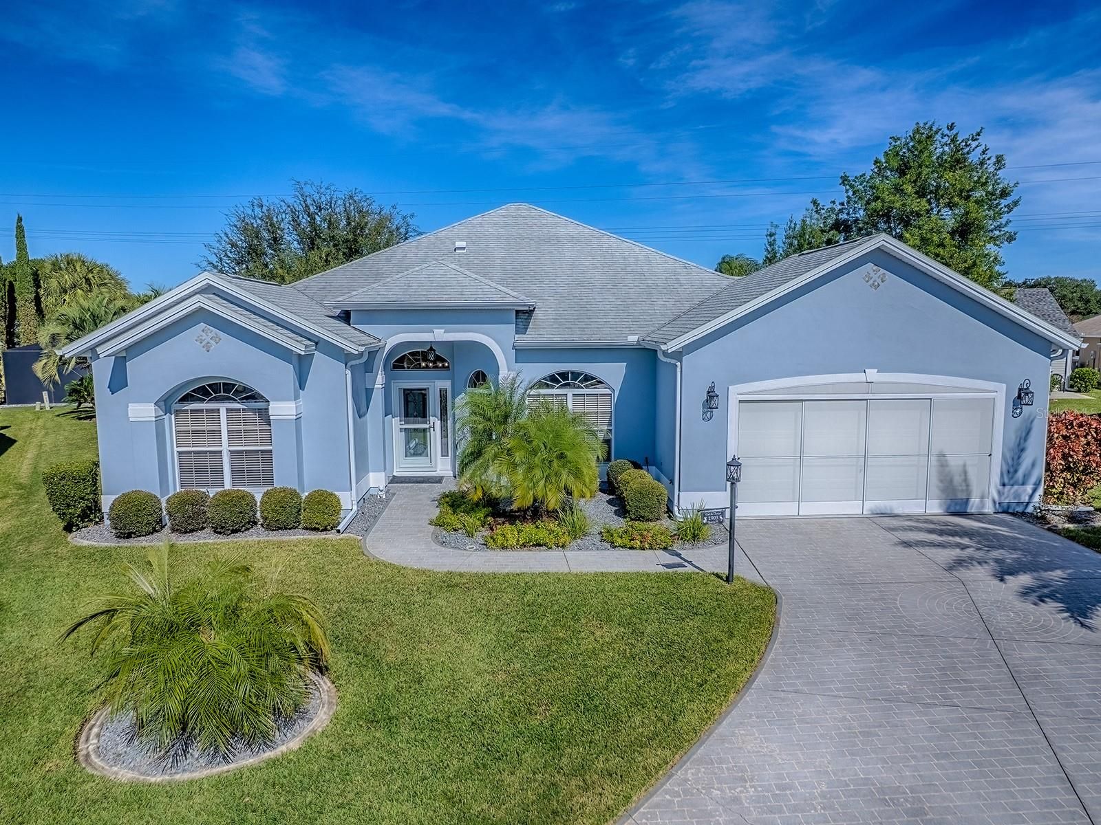 Under contract-accepting backup offers. Bond Paid! This beautifully maintained Rancho Mirage Premier home is perfectly positioned on a quiet cul-de-sac in the desirable Village of Palo Alto. Step inside to discover neutral tones, HIGH CEILINGS throughout, and elegant tray ceilings in both the living room and primary suite. Thoughtful updates include NEW fans and lighting, luxury vinyl plank flooring (NO CARPET), and a built-in electric fireplace for cozy ambiance. The newly updated kitchen impresses with QUARTZ countertops, white stair-step cabinetry, a tile backsplash, newer appliances, and an open layout that flows seamlessly into the living and dining areas. A solar tube between the dining and living rooms fills the space with beautiful natural light. Just off the spacious living room, enjoy the ENCLOSED LANAI with heat and air and wood-look tile flooring, perfect for relaxing year-round. The spacious primary suite features dual closets, a private BIRDCAGED PATIO, and a luxurious ensuite bath with GRANITE countertops, a tiled shower with seamless glass door, and a river rock floor. The stretched garage provides ample room for two cars and a golf cart, featuring painted floors, a screen door, pull-down attic stairs, and an extra storage closet with a utility sink. The second bedroom is located at the front of the home (currently without a closet but with space to add one) and is presently being used as a den. The third guest bedroom is spacious and has a double-door closet. The guest bathroom has been updated with GRANITE countertop and tub/shower combo with glass door. The laundry room is equipped with storage cabinets and a front-load washer and dryer on pedestals. Other updates include: Roof (2020), HVAC (2015). This home has a VA assumable loan at a low interest rate. (Preapproval required) Conveniently located between Spanish Springs Town Square and Lake Sumter Landing Market Square, close to Tierra Del Sol Country Club and Championship Golf Course, Hacienda Regional Recreation Center, The Villages Regional Hospital, 441/27 Shopping Corridor, and 466. Come fall in love with this lovely home!