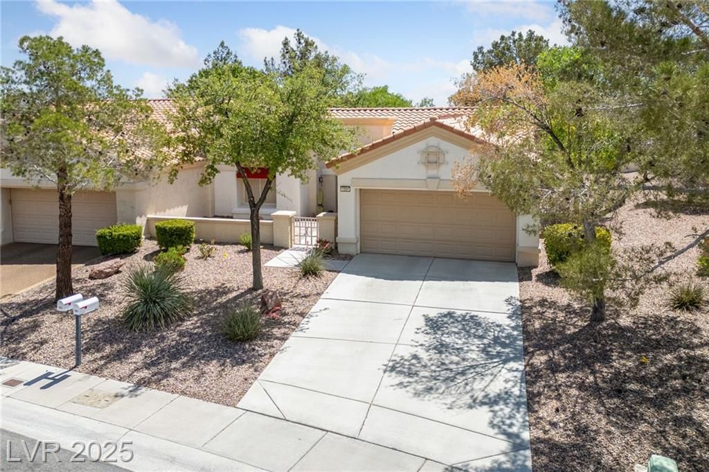 This charming 2 Bedroom Home offers 1,250 sq. ft. of Comfortable Living Space, featuring a Gated Courtyard and Private Patio for Outdoor Enjoyment. Inside, you'll find Granite Countertops, Window Shutters Throughout, and a Custom-Built Roll-In Shower with a Rain Showerhead. A new Water Heater, Indoor Laundry Room with a Sink, and a Water Softener add Convenience. The Home also boasts Garage Storage, a Large Side Yard, and an Extra-Long Driveway. Recently updated with a New Roof, this home is located in the sought-after Sun City Summerlin 55+ Community, which offers an array of Amenities: 4 Community Centers, 3 Golf Courses, 5 Swimming Pools (including 2 Indoor Pools and 3 Pools Outdoors), 3 Fitness Facilities, Tennis and Pickleball Courts, and even a Senior Softball League. Enjoy Live Entertainment at the 312-Seat Starbright Theatre, Social Clubs, and More. "Insist on Enjoying Life" ~ Live Like You Are On Vacation!