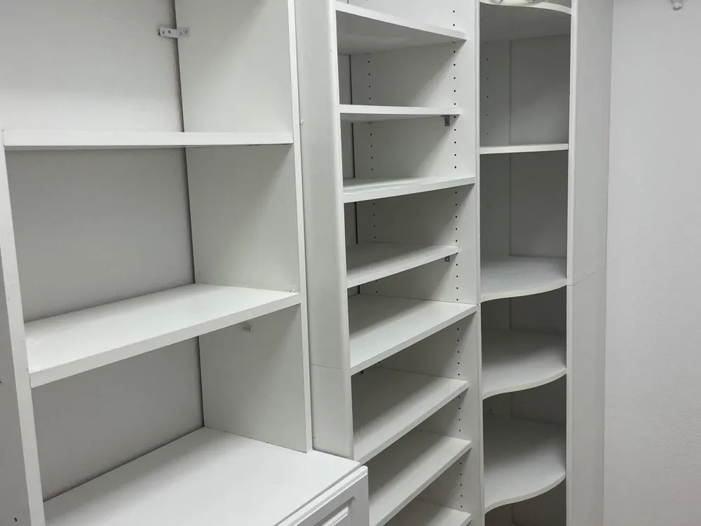 - Built-in Shelving, Custom Mirrors, Entry Level Living Area, Entrance Foyer, Pantry, Walk-In Closet(s), Blinds, Window Vertical(s), Whirlpool
