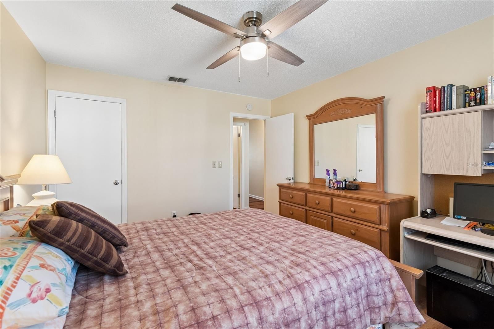 - Ceiling Fan(s), Living/Dining Room, Main Level Primary, Stone Counters, Thermostat