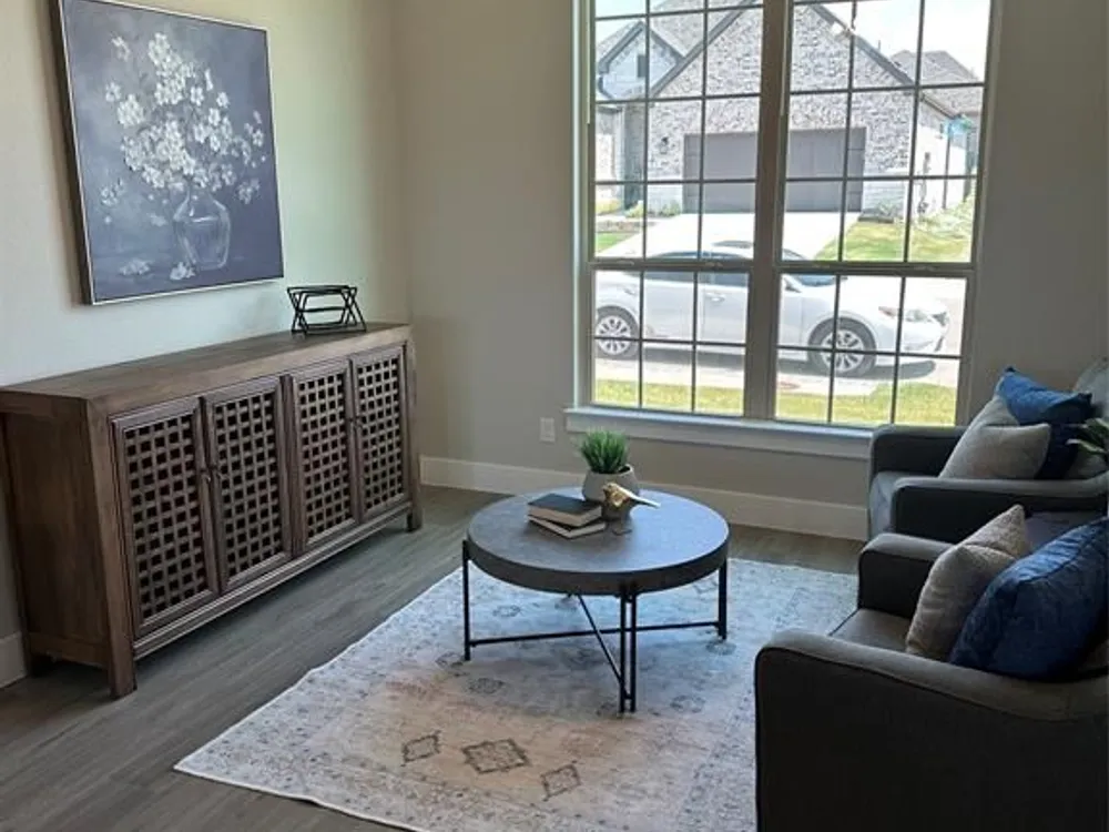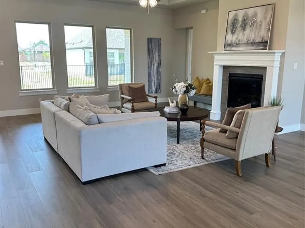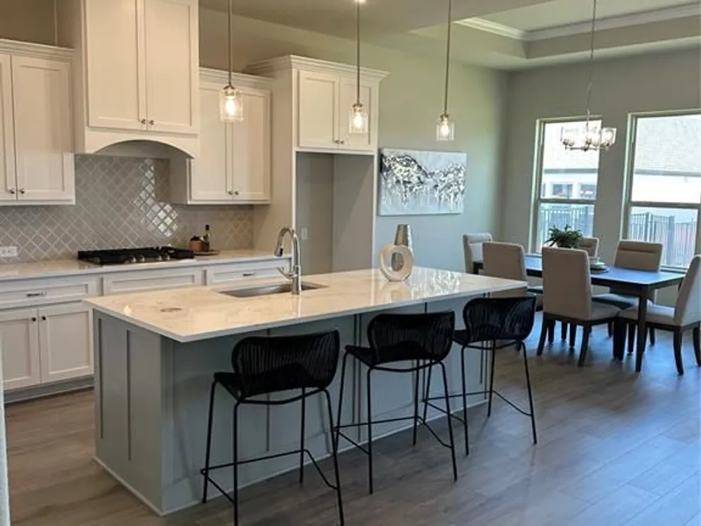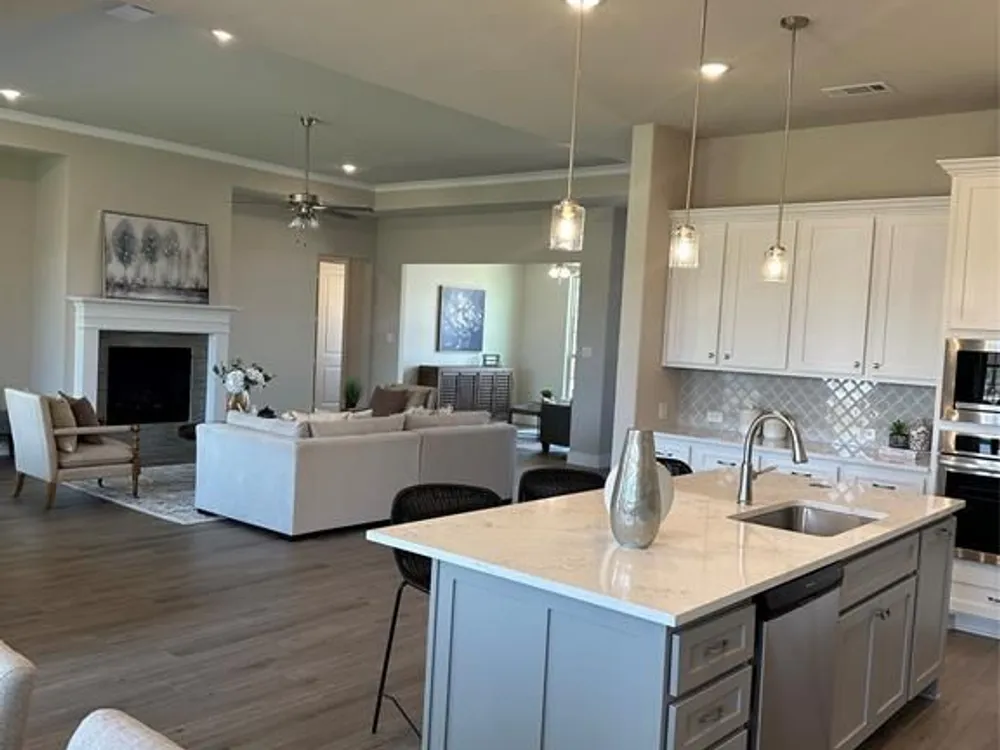 Enjoy the convenience & ease of an active adult lock & leave lifestyle. This up-and-coming community of only 263 homes is located on a Peninsula on Lake Lewisville just minutes from beautiful lake views and a short, scenic drive from shopping, dining and entertainment in bustling Frisco, Denton, Highland Village and more! Ladera Little Elm is centered around The HUB, which includes a resort pool, indoor and outdoor entertaining space, a wellness suite, and more to encourage a laidback lake lifestyle where neighbors become friends. Within the community, Homeowners enjoy amenities including pickleball courts, pool, fitness center, indoor & outdoor gathering areas, firepit, outdoor fireplace, dog park, putting green, walking trails, the (HUB) for social gatherings. Our open, light-filled homes are designed to make living more comfortable, with flexible & spacious living areas & luxury features throughout. Our newly redesigned Hub building features an oversized gathering area, yoga studio, fitness center, private meeting room, covered patio, outdoor pool with bar-b-que grill, pickleball courts & putting green. Walking paths lead you to scenic green space. patio. This Stunning Toscana floor plan sits on an awesome oversized lot with a covered patio. Perfect layout designed with a 3 way split. The master retreat is private & spacious with a huge walk in closet, his & her vanities & large walk in shower. The guest room at the opposite end of home has a full bath & walk in closet, the flex room makes a great den, office, exercise room or anything that meets you needs. The living area is beautiful, featuring gas log FP, cathedral ceilings & a wall of floor to ceiling windows & opens to a chef's dream kitchen. Enjoy the morning on the 20x11 covered patio.