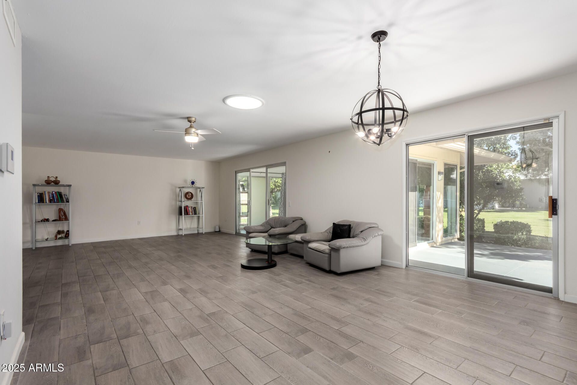 Welcome home to this beautifully remodeled 2-bedroom residence located in the desirable 55+ community of Sun City. This charming home features a private gated courtyard, extended 2-car garage, and a bright kitchen with stainless steel appliances. Enjoy tiled flooring throughout, abundant storage, and spacious walk-in closets. The inviting Arizona room offers the perfect spot for additional living or entertaining space. Step outside to a peaceful patio overlooking the lush greenway with mature trees. Conveniently located near the popular Marinette Recreation Center with easy access to all the amenities Sun City has to offer. Sun City offers many amenities and low taxes. Enjoy one of the 8 rec centers, 8 public golf courses, bowling, swimming pools, hot tubs, gyms, public and private lake, bocce, pickle ball and tennis courts. There is plenty of fun activities including jewelry making classes, wood working, stained glass, dance classes, water aerobics, softball or just catch a concert on the lawn amphitheater. Sun City is in vicinity of freeway access, shopping, restaurants, medical, Lake Pleasant Boat Marina, Peoria Sports Complex to watch great spring training games, casino's and State Farm Stadium.