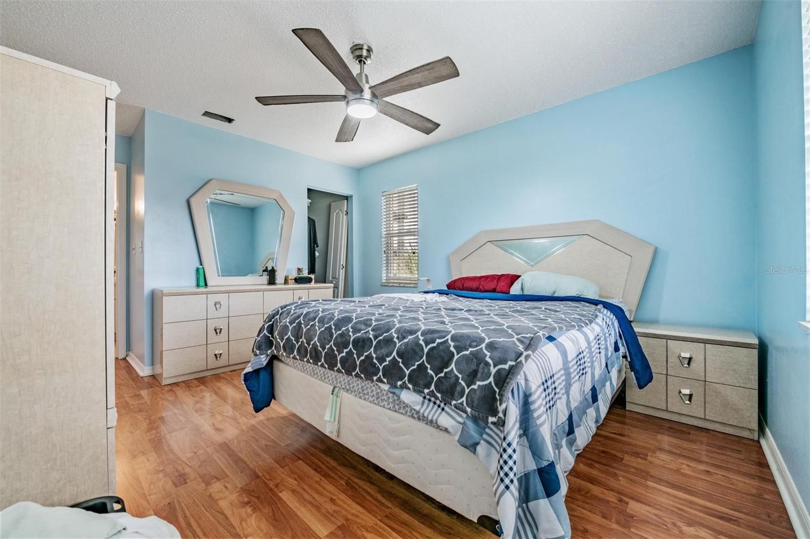 - Ceiling Fan(s), Living/Dining Room, Open Floorplan, Other, Main Level Primary, Solid Surface Counters, Thermostat, Walk-In Closet(s)