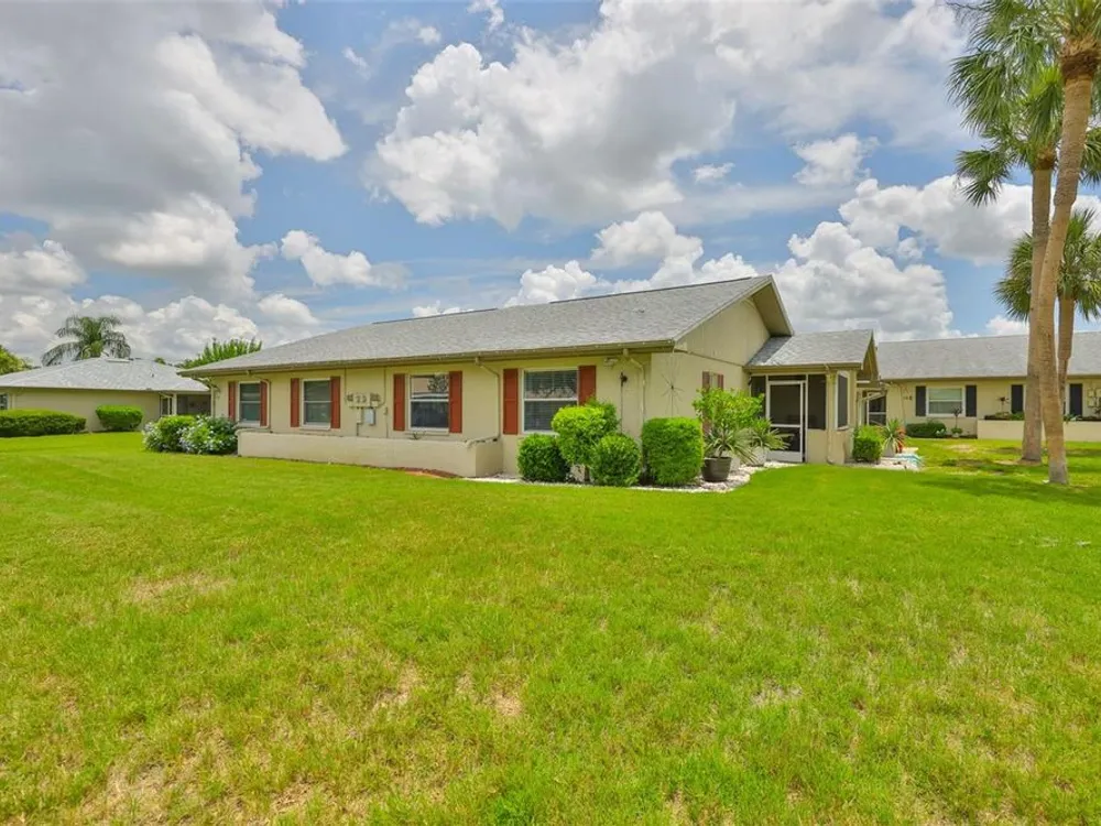 Your location puts you about one mile from both the south and north clubhouses located in Kings Point. Each features indoor and outdoor pools, with sauna areas, many arts and craft shops, and party rooms. The North clubhouse also has a large room complete with a stage for various entertainment venues. The South clubhouse features an excellent dining area with a bar included. Other activities include golf, tennis, pickleball, dog park, lawn bowling, and bocce court. Your condo features a screended in front porch entrance, inside utility with a new washer and dryer, water heater and extra storage area accross from the utility room. The main bedroom features a walkin closet and entrance to a private bathroom. A large enclosed lanai sits off the living and dining room area with a open view of a former golf course. Laminate wood flooring is featured throughout most of the living area. The kitchen features newer appliances and granite counter tops with back splash. The roof was replaced in October 2019. The electric panel was replaced in March 2018, and the main disconnect panel in April 2018. The condo was replumbed with a new pipe in November 2006. The location of Sun City Center/Kings Point puts you within a short trip to all the activities the cities of Tampa, St. Petersburg, and Sarasota offer, which include the white sand beaches, three professional sports teams, cruise ships, arts and crafts, Disney World, and much more. enjoy.