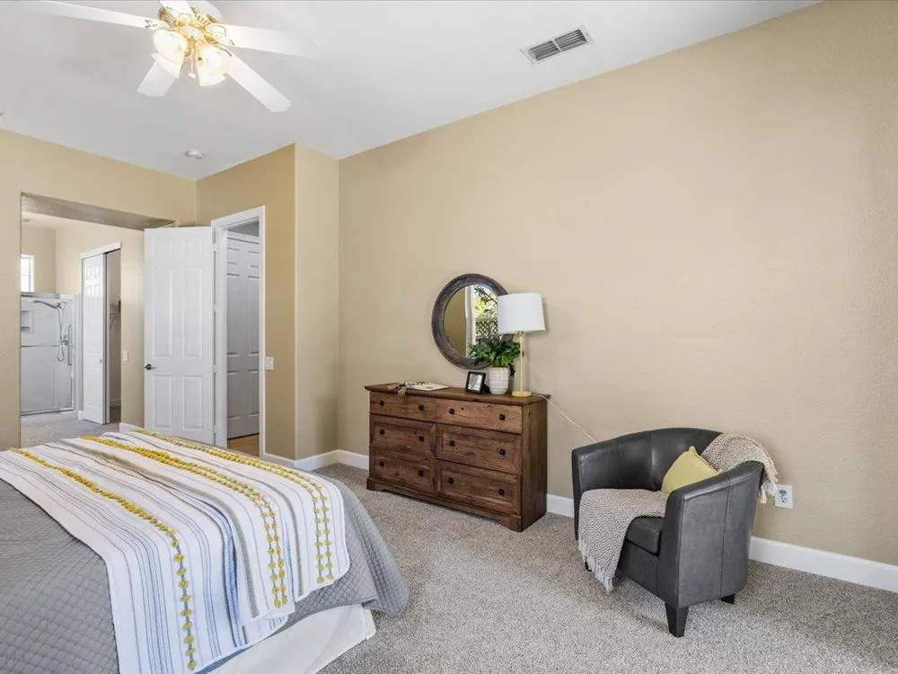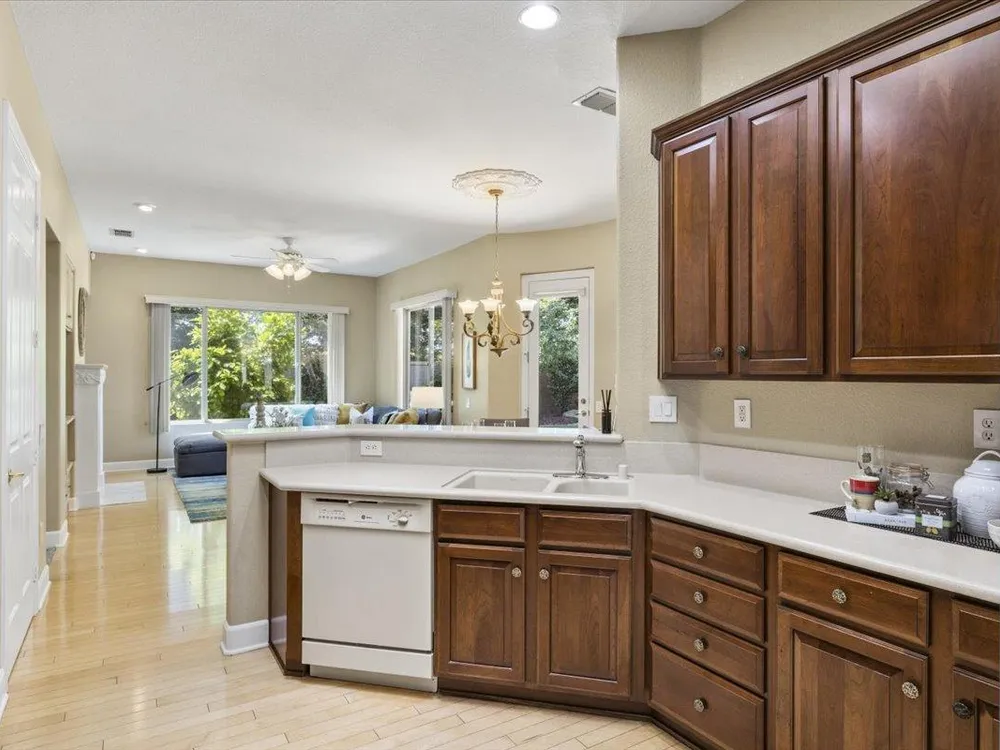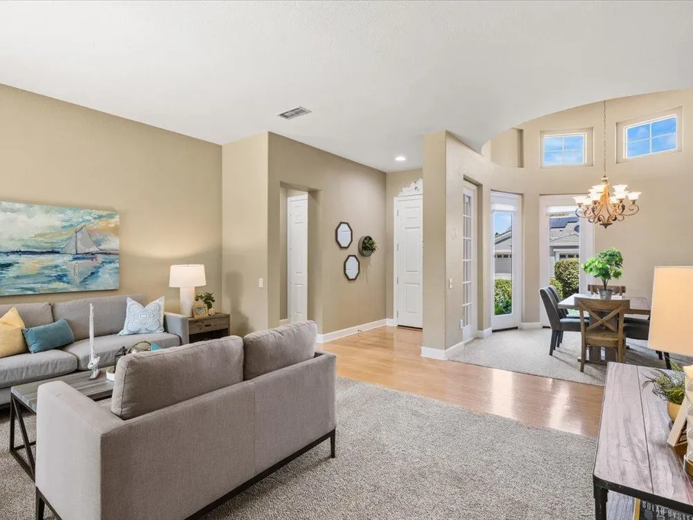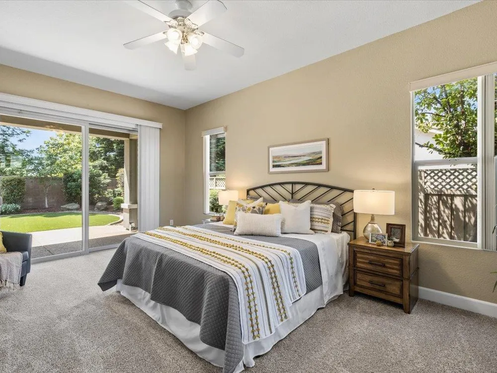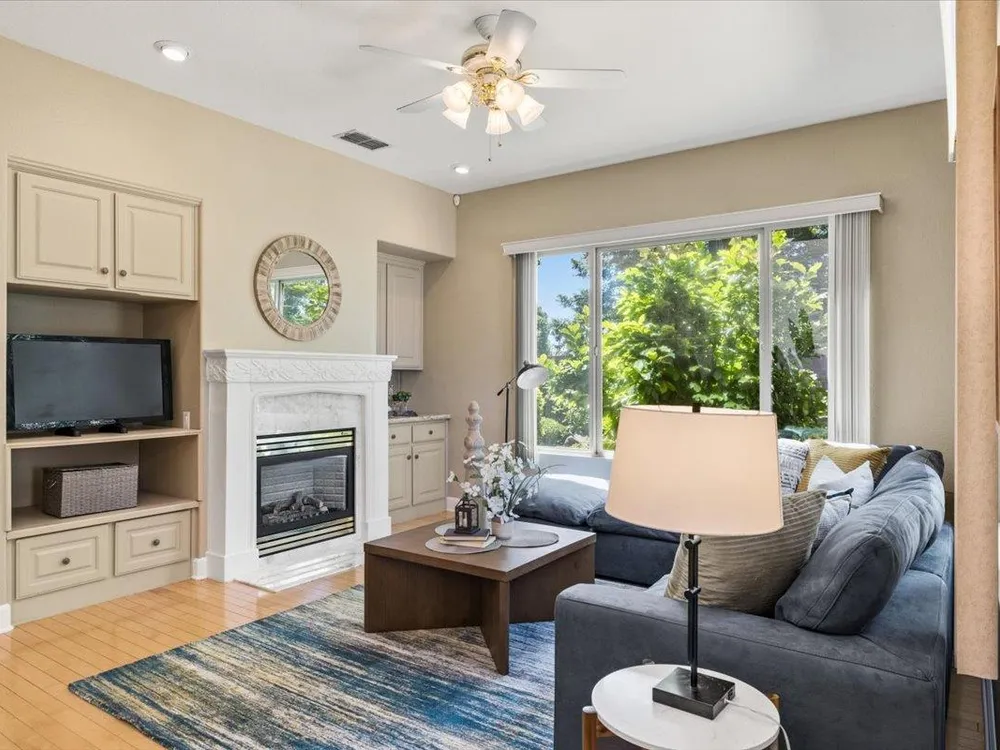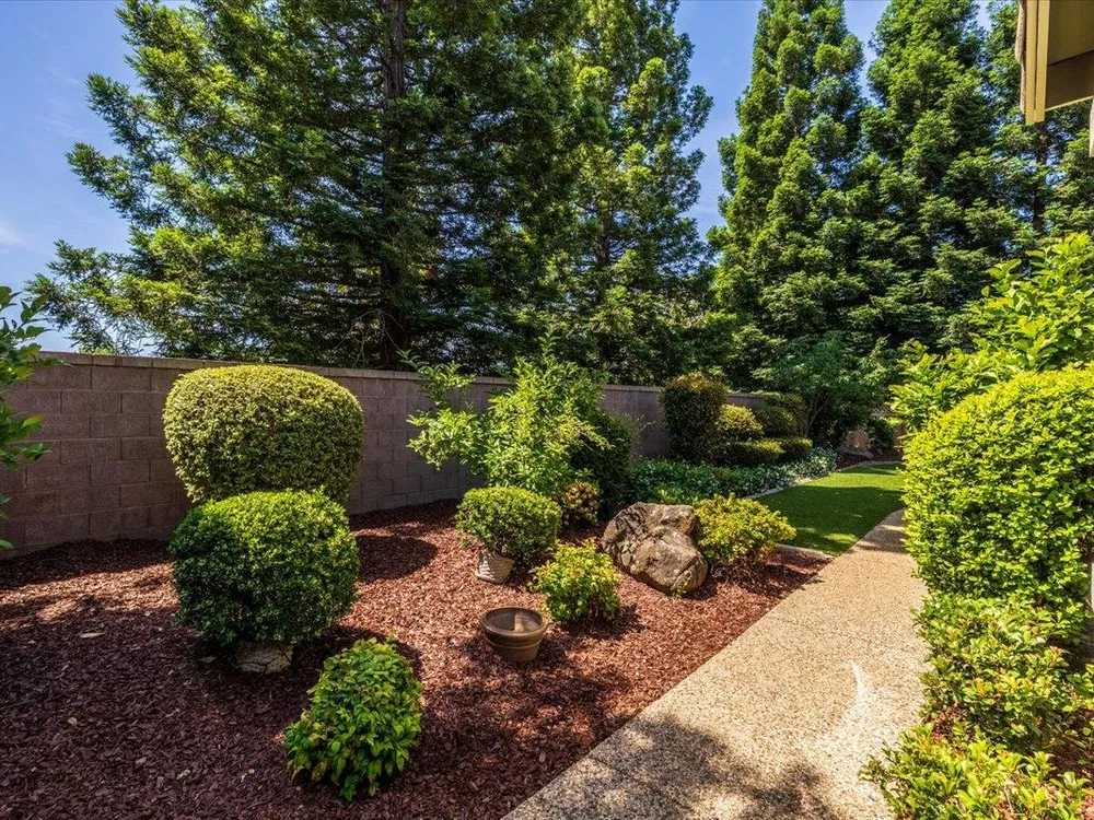 Great value on this immaculate 'Sausalito move in ready! Always popular floorplan freshly painted inside and out along with newer carpeting. Wood flooring. Beautiful kitchen with newer appliances and skylight. Family room with firepalce. Two bedrooms plus den. Primary suite has slider to back yard, double sinks, separate tub and shower and walk in closet. Den and guest bedroom are on opposite side of home for maximum privacy. Beautiful mature landscape with fruit trees. Large two and half car garage with storage. Don't miss the attached video of this sharp home!