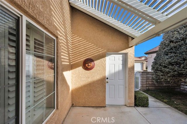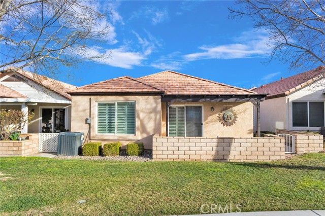 Welcome to this adorable, updated 2-bedroom 2-bathroom home in the highly desirable gated retirement community of Jess Ranch. Situated on a prime lot overlooking the greenbelt walkway, you'll enjoy serene views of mature trees and lush, park-like landscaping right outside your door. Inside, this home has been tastefully upgraded, featuring a modern kitchen updated within the last 2 years, complete with granite countertops, a travertine tile backsplash, white appliances, and ample cabinetry. Tile flooring throughout ensures easy maintenance and a clean, polished look. The split floorplan offers ideal privacy and flexibility, with spacious bedrooms and an indoor laundry room with extra storage. Additional highlights include white plantation shutters and crown molding, an attached two-car garage, and a small patio front courtyard. Enjoy all the amenities Jess Ranch has to offer, including the newly remodeled clubhouse, sparkling pool, and inviting outdoor areas. This community is located just minutes from major shopping, dining, hospitals, and entertainment, offering the best of convenience and lifestyle. Come take a tour and see everything this vibrant 55+ community and charming home have to offer!