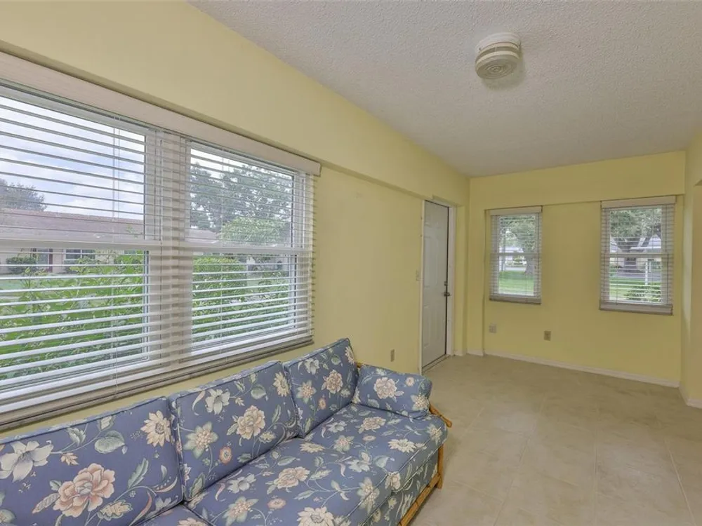 BASK IN FLORIDA SUNSHINE OVER THE WINTER OR ALL YEAR LONG! Whether you're seeking a snowbird retreat or your forever home, this 2-bedroom, 2-bath Stuart model offers endless possibilities and EVERY OFFER IS ENCOURAGED! Tucked away in the highly desirable 24 HOUR GATED golf community of Kings Point, you'll enjoy a vibrant, active lifestyle - where your second car just might be a golf cart! This CLEAN, ADORABLE, and ROOMY condo is perfect for all your needs! The primary suite is equipped with a WALK-IN CLOSET, and will fit a KING SIZE bed beautifully! The second bedroom is SPACIOUS for guests, an office, or hobby space! The FLEX ROOM can be used in so many ways as well! Beyond that you will find your laundry room equipped with a storage cabinet and shelves, and beyond that, space for your golf cart or EVEN MORE STORAGE! The HOA includes: GATED SECURITY, CABLE, INTERNET, WATER, SEWER, TRASH, EXTERIOR AND GROUNDS MAINTENANCE, PEST CONTROL, ESCROW RESERVES, AND LANDSCAPING, making budgeting a breeze! A few personal touches, and you can own your own slice of paradise! Residents have access to exceptional amenities, including indoor and outdoor heated pools, state-of-the-art fitness centers, tennis and pickleball courts, lawn bowling, arts and crafts studios, an 800+ seat auditorium and MORE! With over 200 clubs and activities to explore, there's something for everyone. Ideally located near Tampa, Sarasota, and St. Petersburg, you're just a short drive from Tampa International Airport, shopping, dining, world-class beaches, theaters, and exciting sporting events. What are you waiting for at this price?!