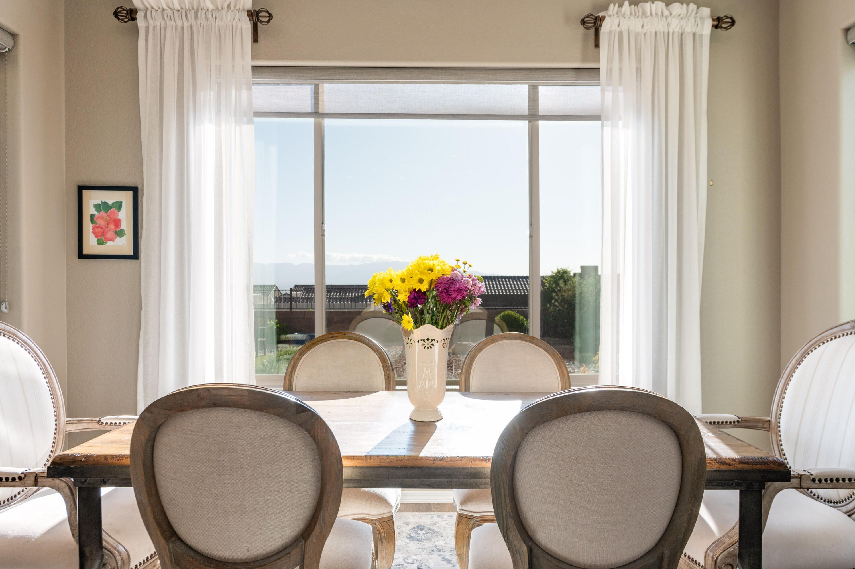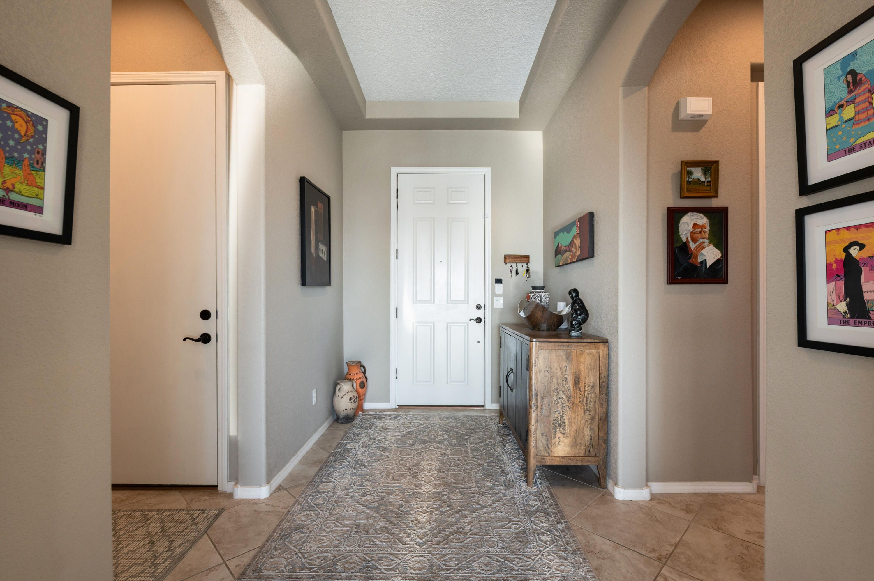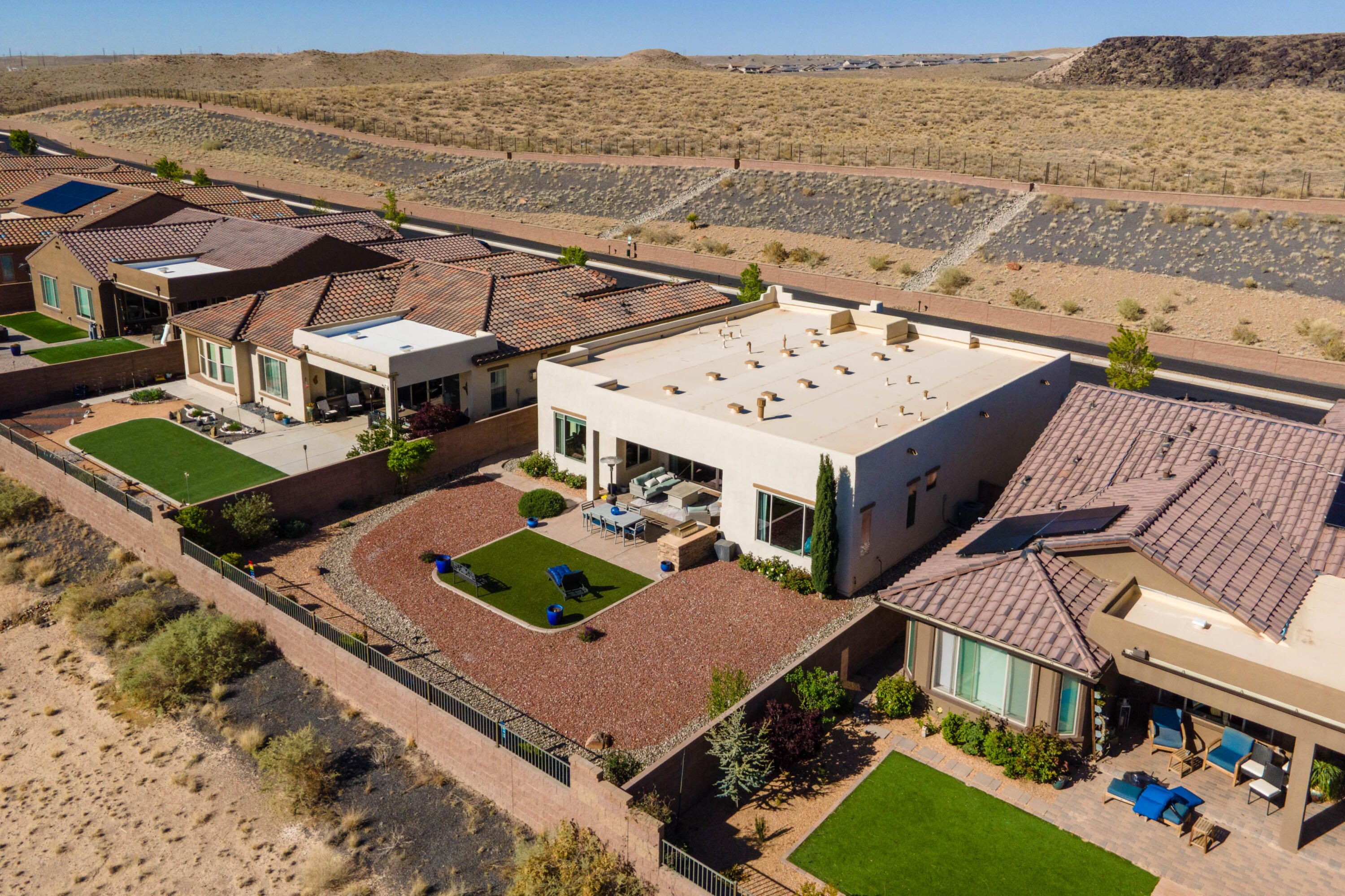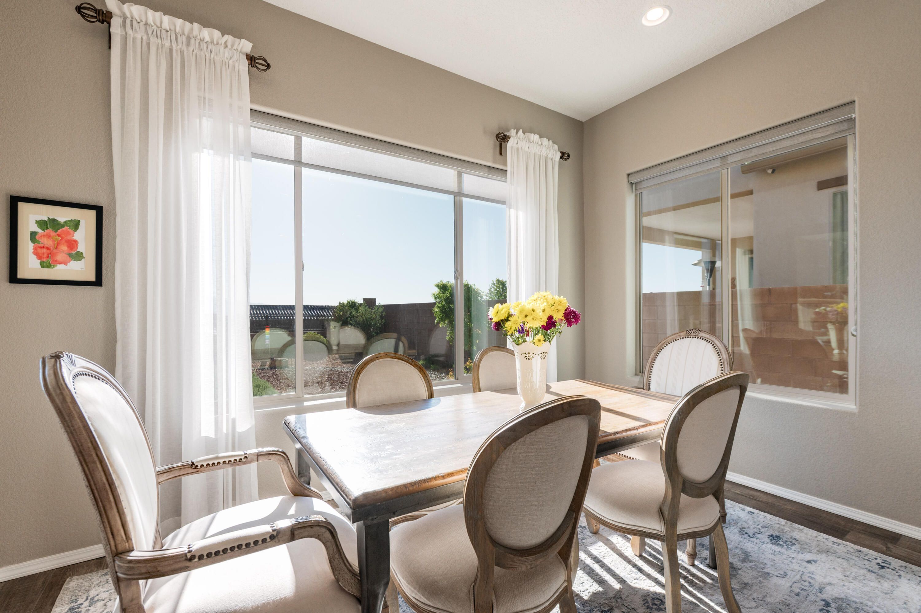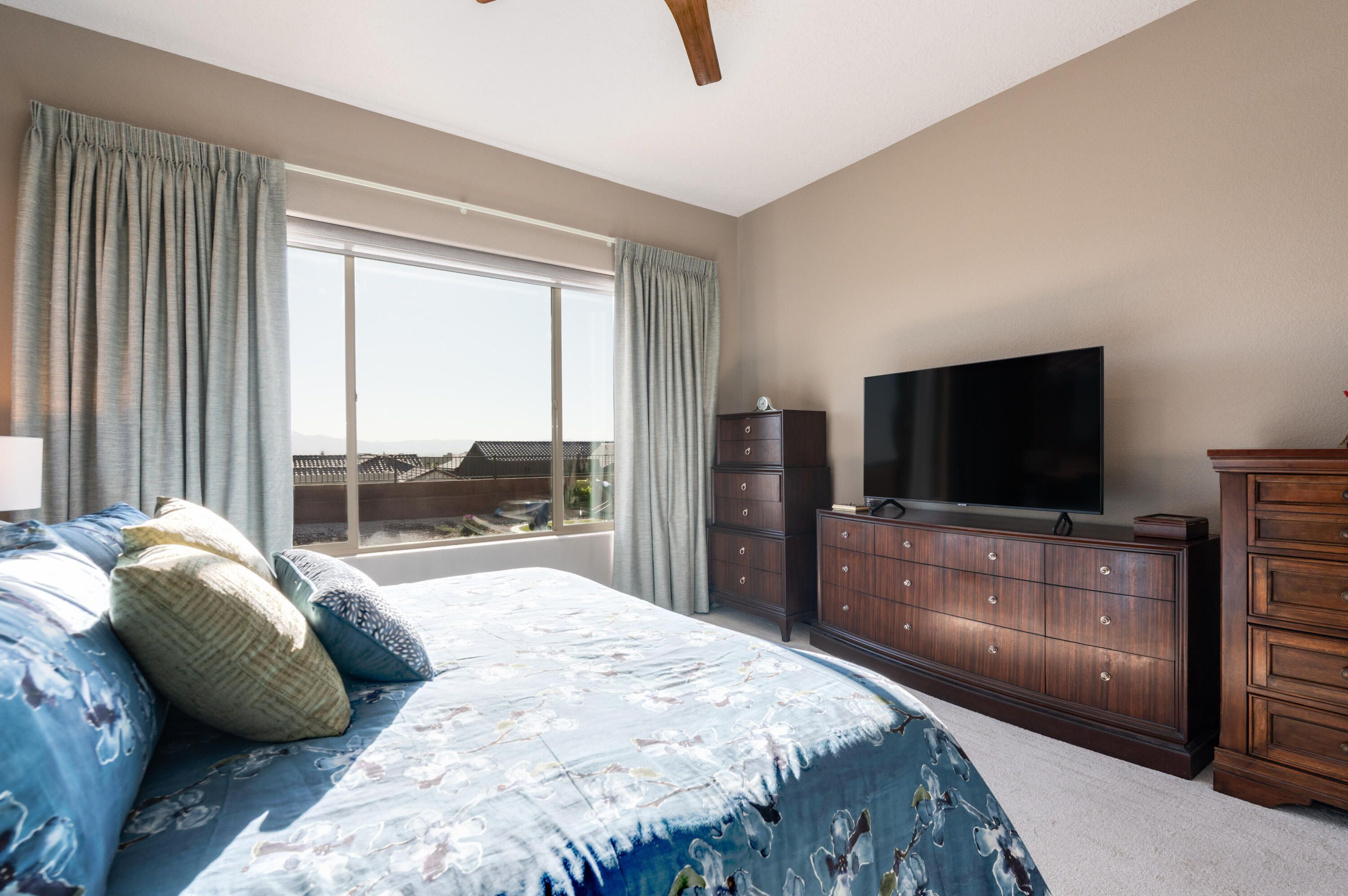 Beautiful Home with Forever Mountain and City Views in Albuquerque's Premier 55+ Active Adult Community, Del Webb Mirehaven! Built in 2020 this Pursuit Model Floorplan has 2137sf which includes a heated/cooled garage storage room, 2 BR's, 2 BA's, plus office/den or optional 3rd BR! Features include a large sliding door showcasing the views, soft arch hallways, tray ceilings, gourmet kitchen w/quartz countertops, pull-out cabinets, two ovens, wet bar w/wine fridge, reverse osmosis, nice large Island. Stylish LVP flooring, tile & upgraded carpet in bedrooms. Spacious primary suite w/ tiled walk-in shower & custom closet. Laundry w/sink, soft water system & instant hot water. Custom landscaped backyard w/stacked stone built-in BBQ, pavers, turf & plantings! Custom window shades & coverings!!
