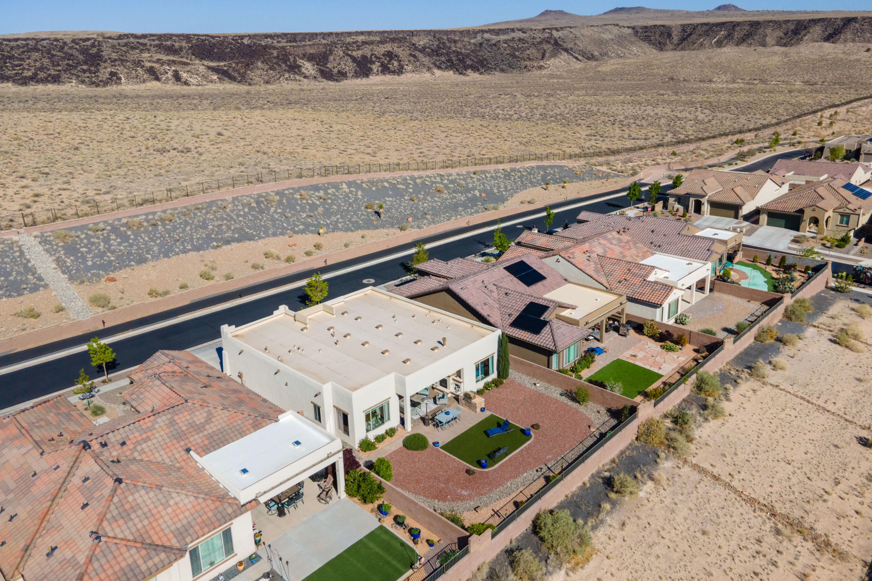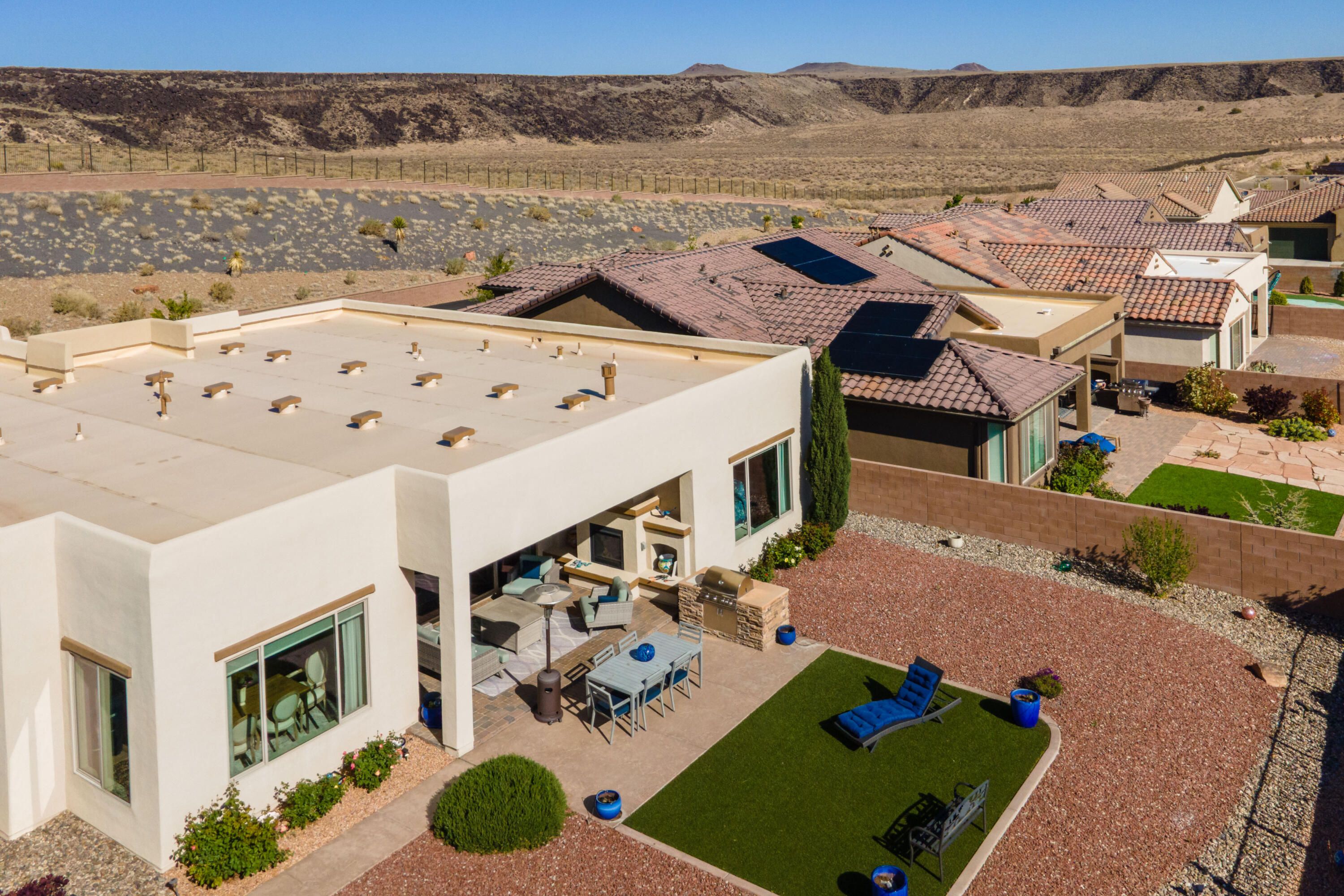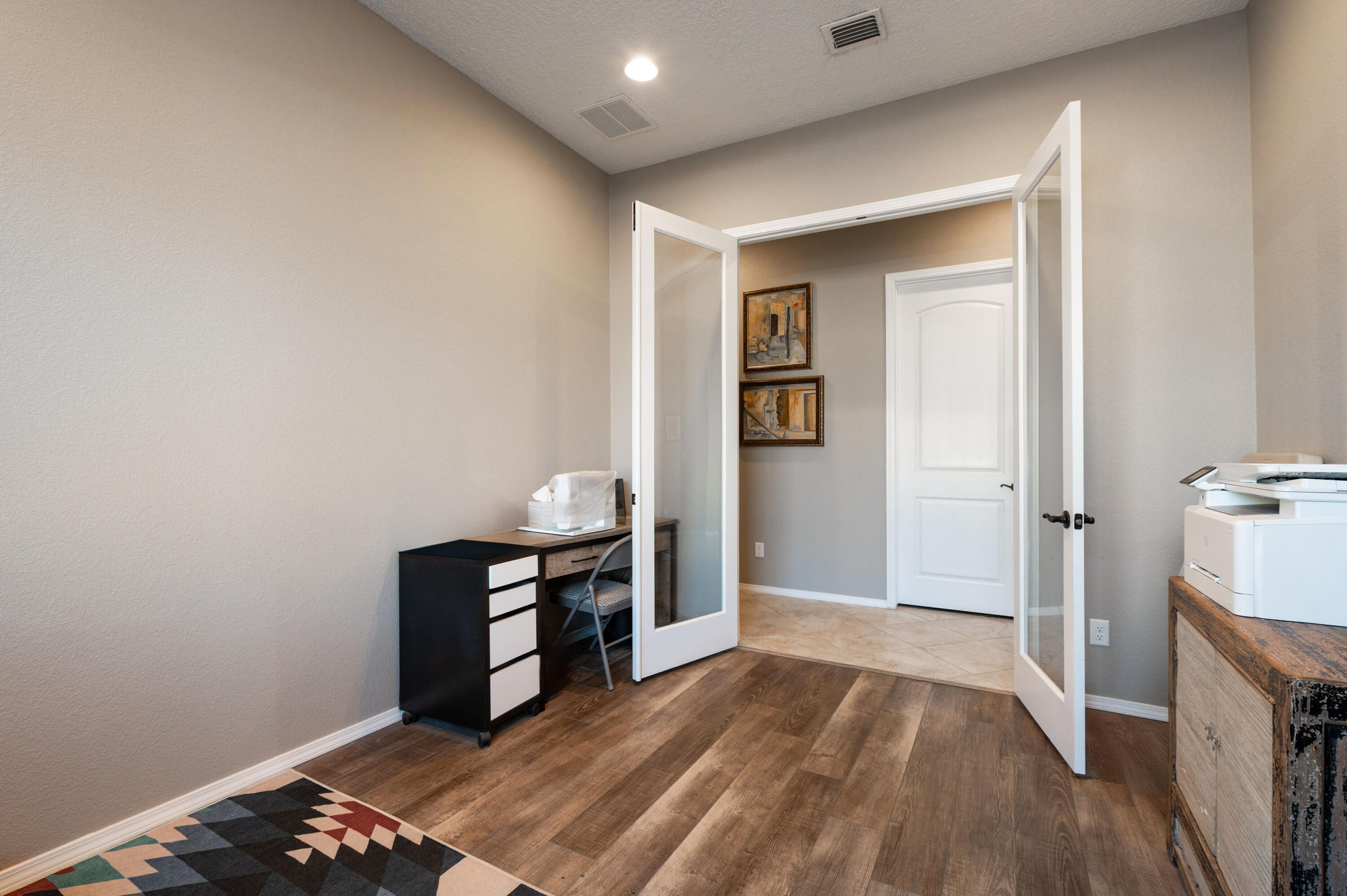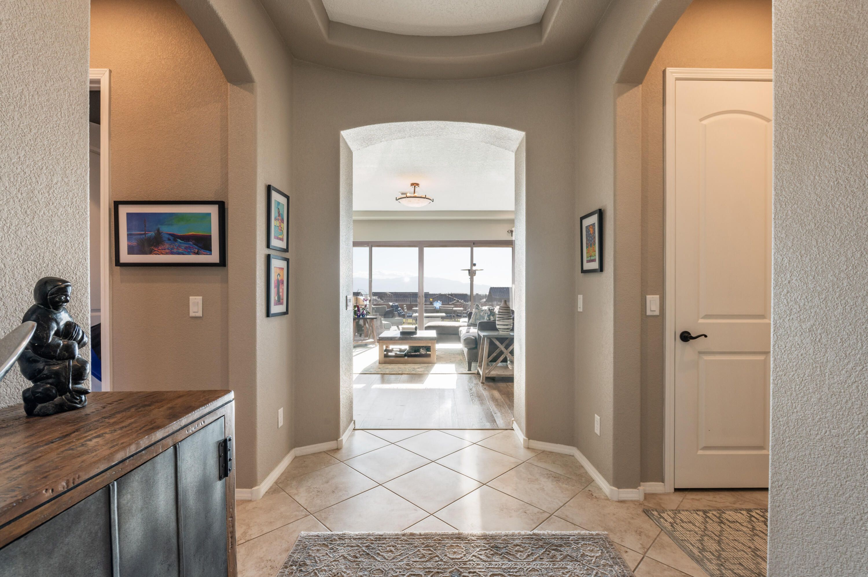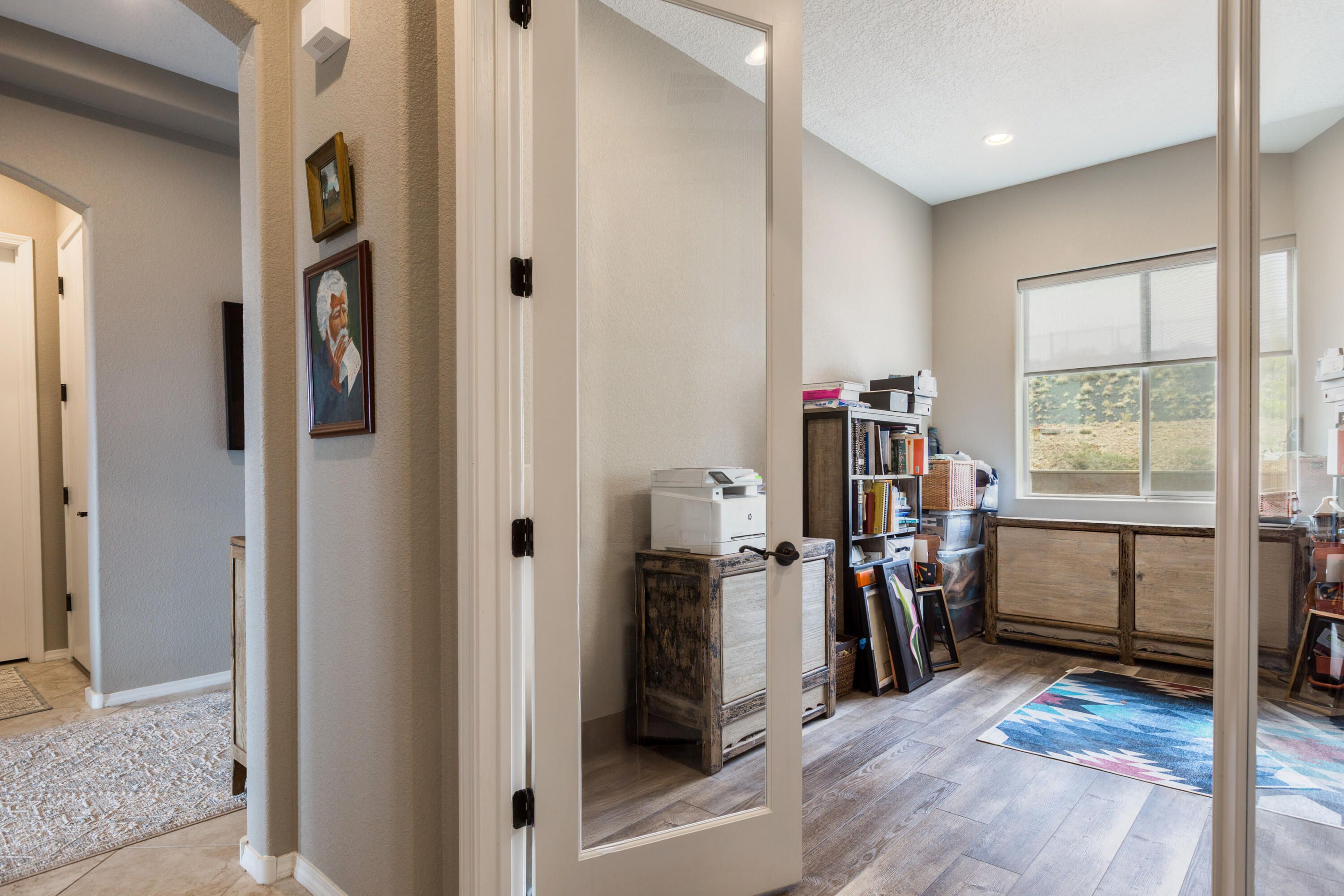 Beautiful Home with Forever Mountain and City Views in Albuquerque's Premier 55+ Active Adult Community, Del Webb Mirehaven! Built in 2020 this Pursuit Model Floorplan has 2137sf which includes a heated/cooled garage storage room, 2 BR's, 2 BA's, plus office/den or optional 3rd BR! Features include a large sliding door showcasing the views, soft arch hallways, tray ceilings, gourmet kitchen w/quartz countertops, pull-out cabinets, two ovens, wet bar w/wine fridge, reverse osmosis, nice large Island. Stylish LVP flooring, tile & upgraded carpet in bedrooms. Spacious primary suite w/ tiled walk-in shower & custom closet. Laundry w/sink, soft water system & instant hot water. Custom landscaped backyard w/stacked stone built-in BBQ, pavers, turf & plantings! Custom window shades & coverings!!
