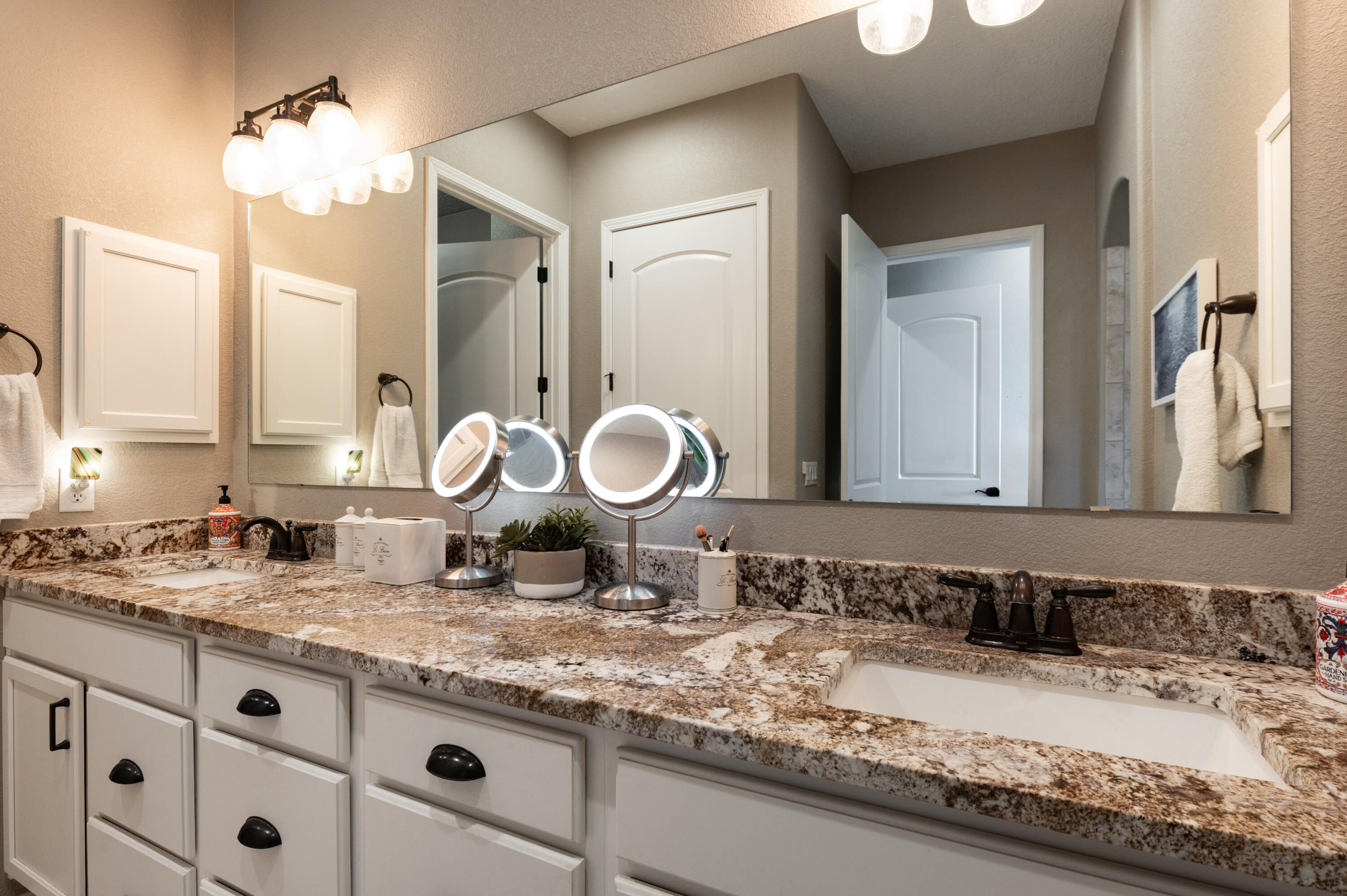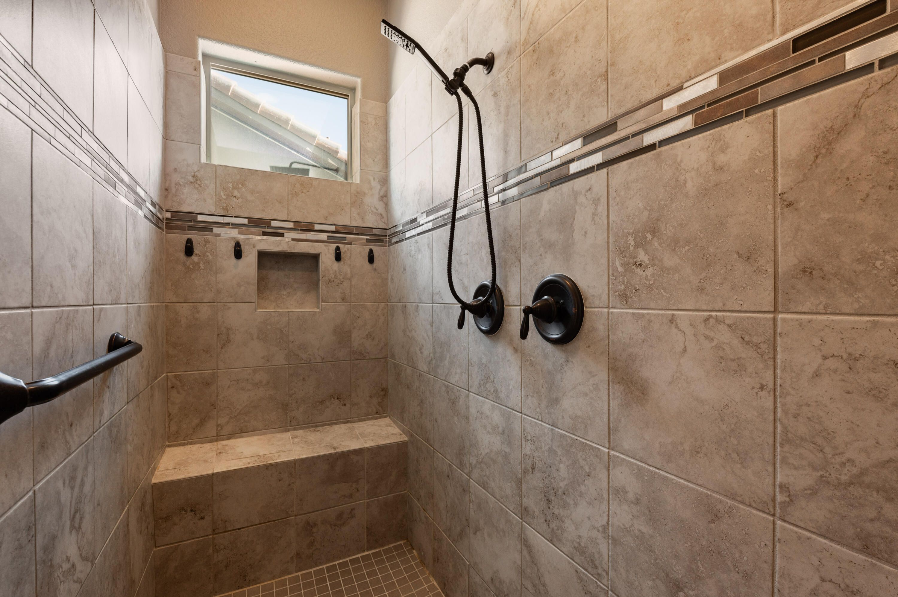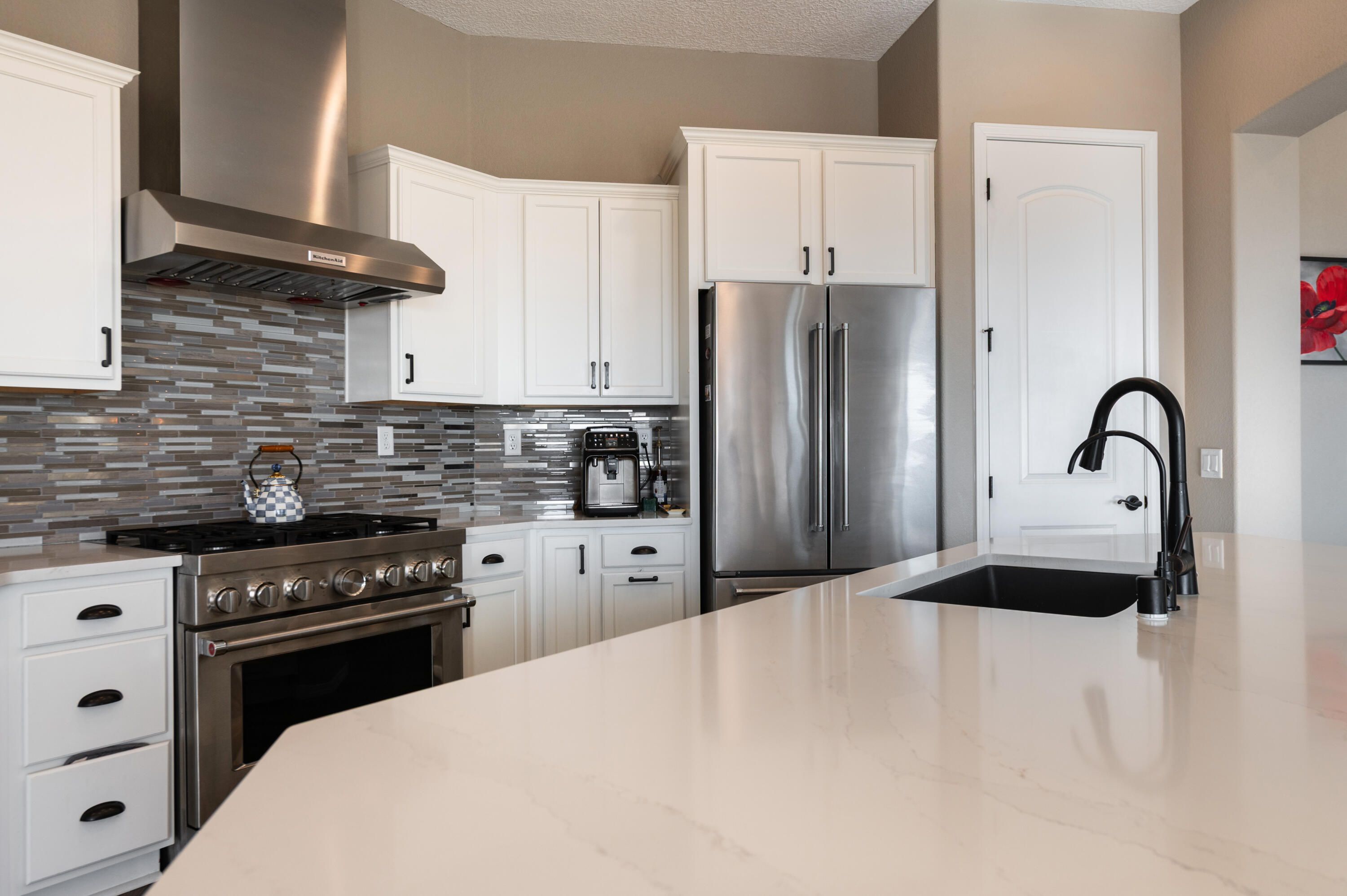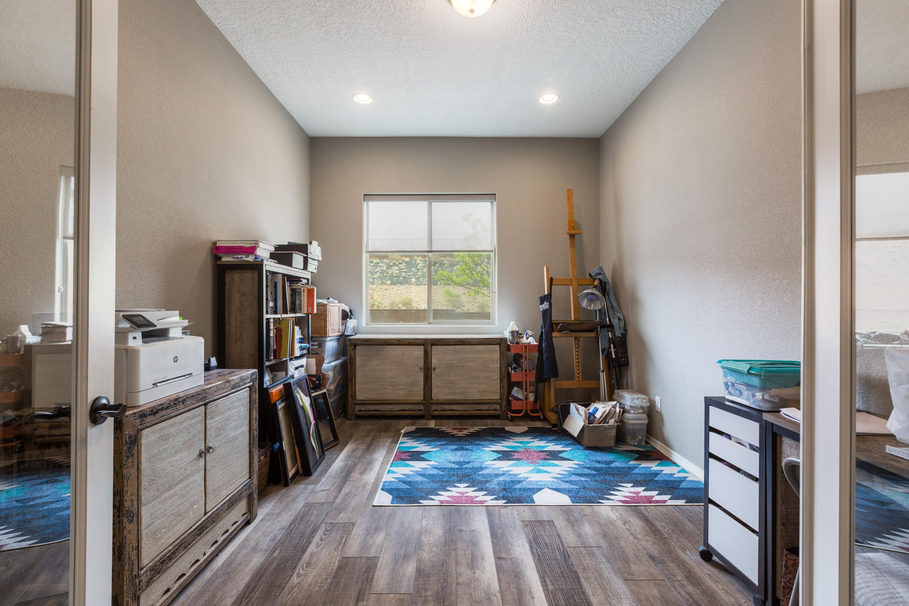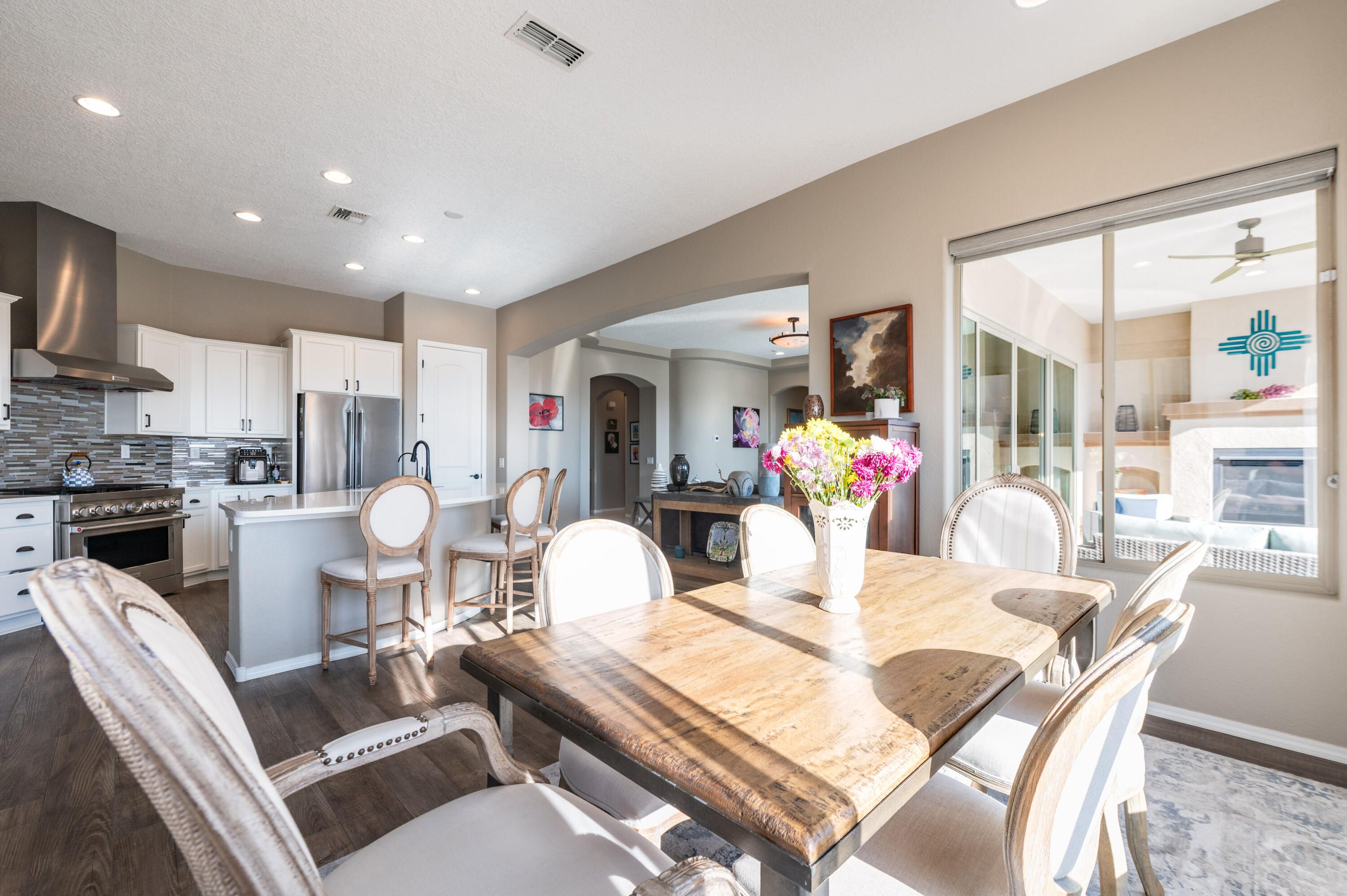 Beautiful Home with Forever Mountain and City Views in Albuquerque's Premier 55+ Active Adult Community, Del Webb Mirehaven! Built in 2020 this Pursuit Model Floorplan has 2137sf which includes a heated/cooled garage storage room, 2 BR's, 2 BA's, plus office/den or optional 3rd BR! Features include a large sliding door showcasing the views, soft arch hallways, tray ceilings, gourmet kitchen w/quartz countertops, pull-out cabinets, two ovens, wet bar w/wine fridge, reverse osmosis, nice large Island. Stylish LVP flooring, tile & upgraded carpet in bedrooms. Spacious primary suite w/ tiled walk-in shower & custom closet. Laundry w/sink, soft water system & instant hot water. Custom landscaped backyard w/stacked stone built-in BBQ, pavers, turf & plantings! Custom window shades & coverings!!
