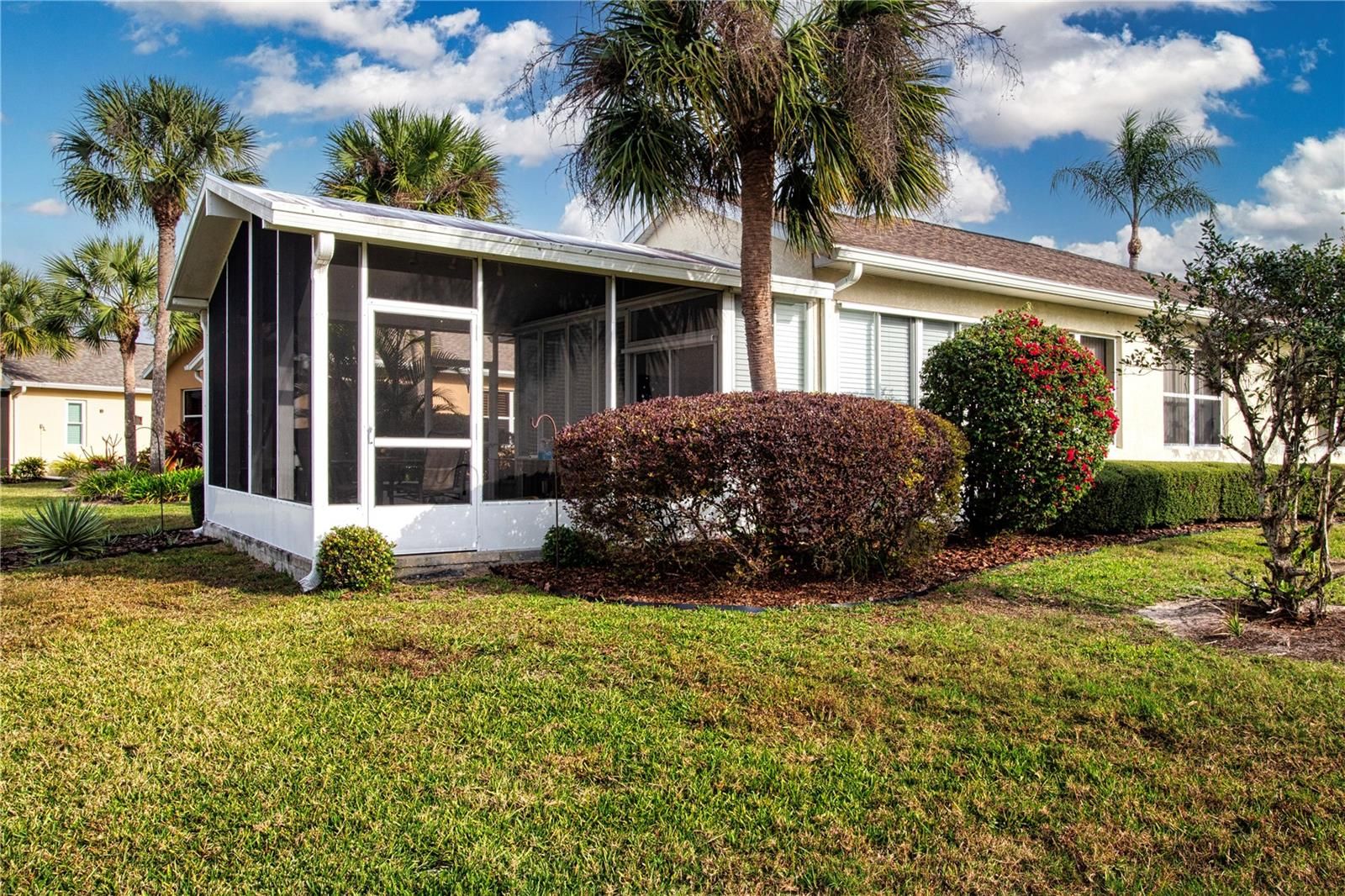Waterfront POND lot with stunning water views! This 2-bedroom, 2-bath, 2-car garage, 1,503 sqft single-family home is tucked away on a quiet cul-de-sac street in the sought-after 55+ community of Azalea Trace. Enjoy the peace and quiet of no rear neighbors with uninterrupted pond and conservation views from the newly built 200 sqft screened-in lanai. Upon arrival, you are greeted by a perfectly manicured lawn with updated landscape and a newer pavered driveway and walkway to the front screened-in entryway. The home is full of upgrades throughout including a NEW ROOF (2023), new A/C unit (2023), new gutters and downspouts (2023), an enclosed air-conditioned Florida Room (2023), ceiling fans (2020) and SO MUCH MORE! The enclosed Florida room was extended by 4 ft, adding 231 sqft of indoor living space. It is a perfect extension of the living room and an extra space for overnight guests to utilize as a private room when the glass sliders and blinds are closed. This room is complete with hurricane shutters for each of the windows if needed. The open concept boasts a desirable layout between the kitchen, attached breakfast nook, living room, Florida room, and lanai. The kitchen features plenty of cabinet space, pantry closet, and large breakfast bar that overlooks the living room. Just off of the living room is the primary bedroom which has 2 closets and an ensuite bathroom with separate vanities and a large walk-in glass shower in between. The split bedroom floorplan offers added privacy between the primary suite and secondary bedroom, located towards the front of the home with a nearby full bath. The spacious garage is the perfect place to utilize as a workshop as it is complete with storage shelving and a screened door for year-round use. Bring your golf cart to immerse yourself in the Sun City Center lifestyle with easy access to shopping, restaurants, and grocery stores. Community amenities include a clubhouse, indoor/outdoor pools and spas, a fitness center, pickle ball, tennis courts, baseball field, dog park, golf course, clubs, and activities such as arts and crafts. The community is centrally located to major highways making the nearby Tampa Bay cities of Bradenton, Sarasota, St. Petersburg, Clearwater, and Tampa very accessible.