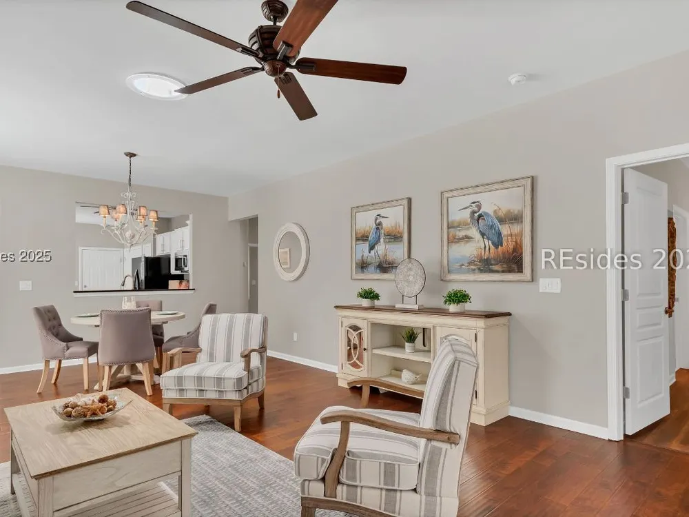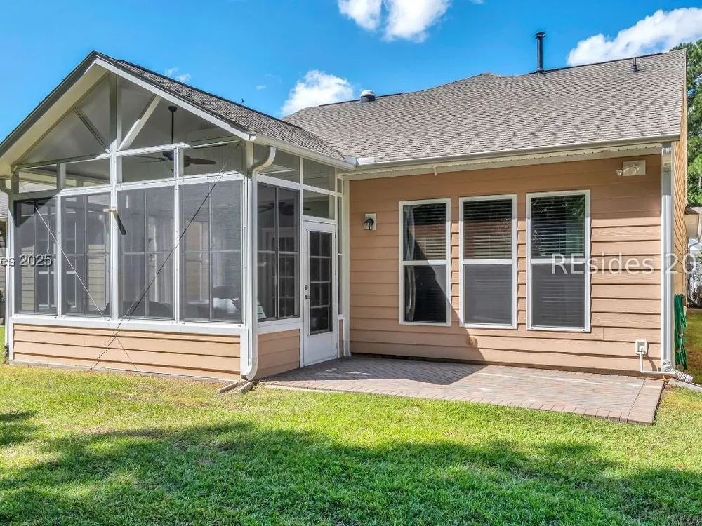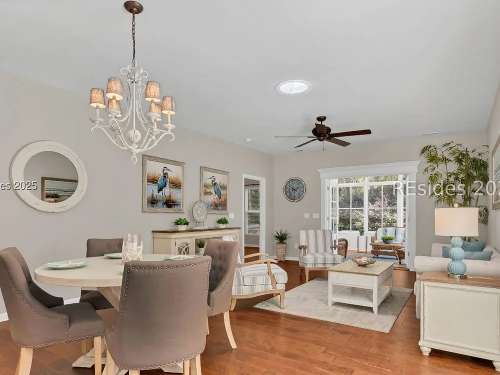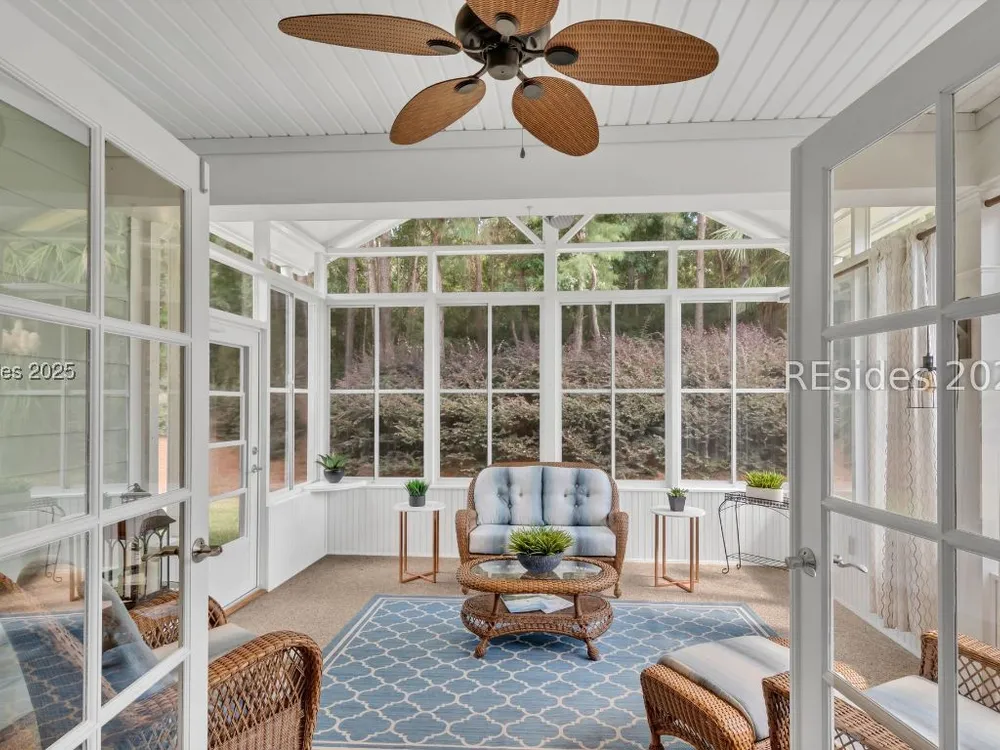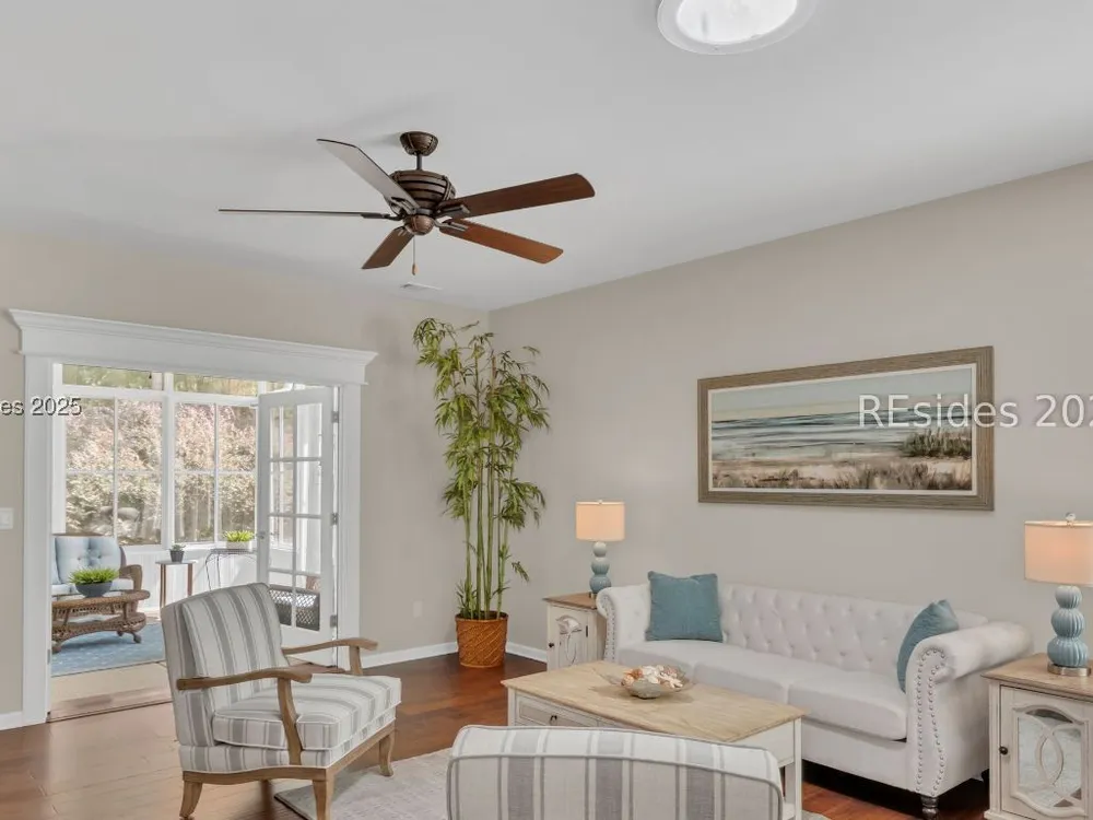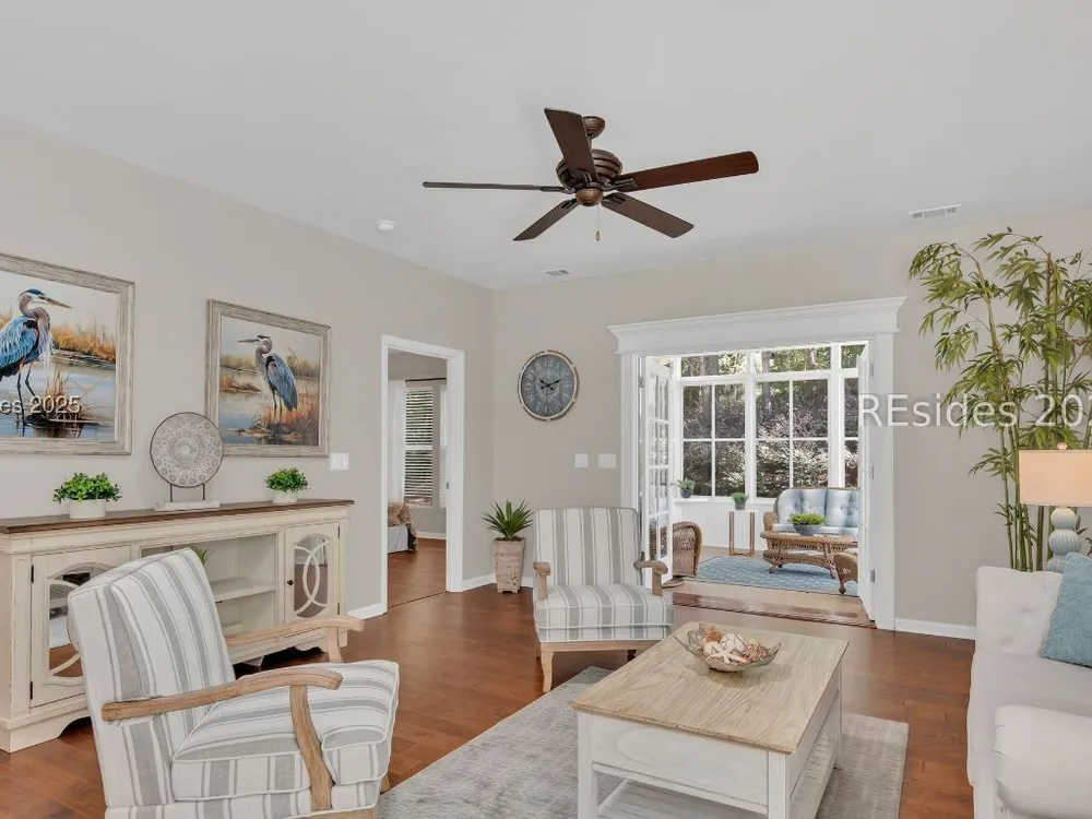 Enjoy the wooded privacy of this expanded Gray Myst model from the sunny, climate-controlled 4 seasons room. From there, step out onto the brick paver patio. Quiet, peaceful, light and bright in great location. 2 Bedrooms, 2 Baths PLUS Office/den (or 3rd Bedroom with storage closet). Many upgrades include rich hardwood floors in living room, new LVP flooring in bedrooms, kitchen and baths. White cabinets and granite countertops in kitchen. New microwave, dishwasher, washer and dryer. Freshly Painted, New Roof 2023, New Furnace 2025. Extended 2 car garage with new insulated hurricane resistent belt driven garage door. Generous storage in attic. Move in ready! Start living the Sun City lifestyle today!!!