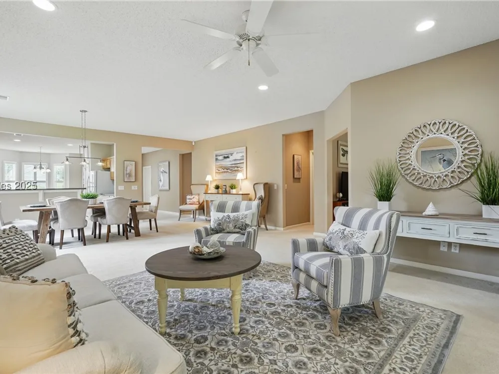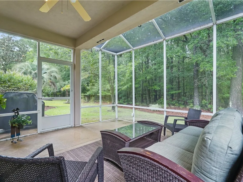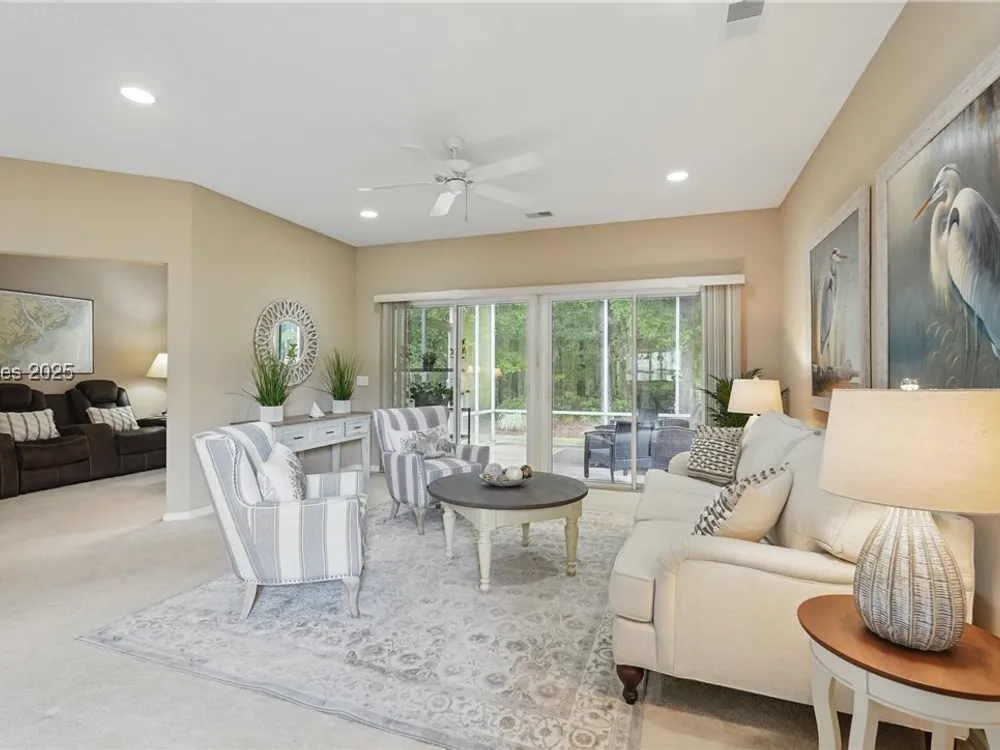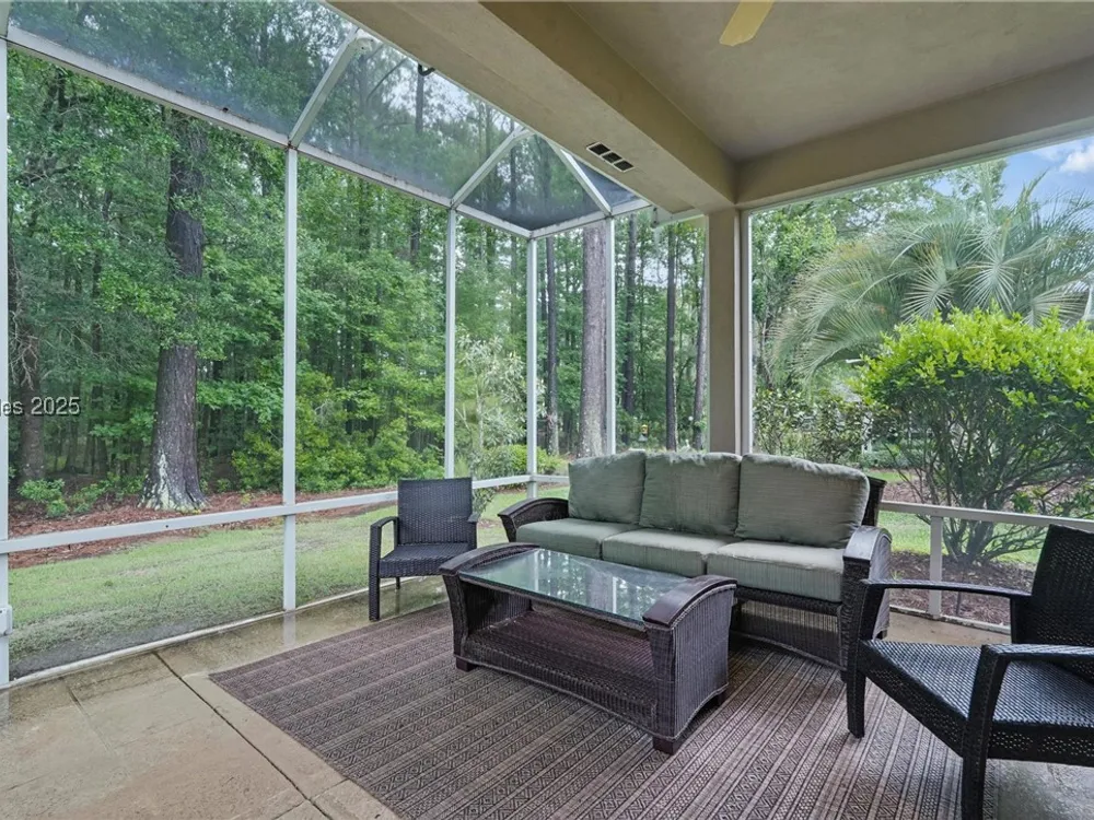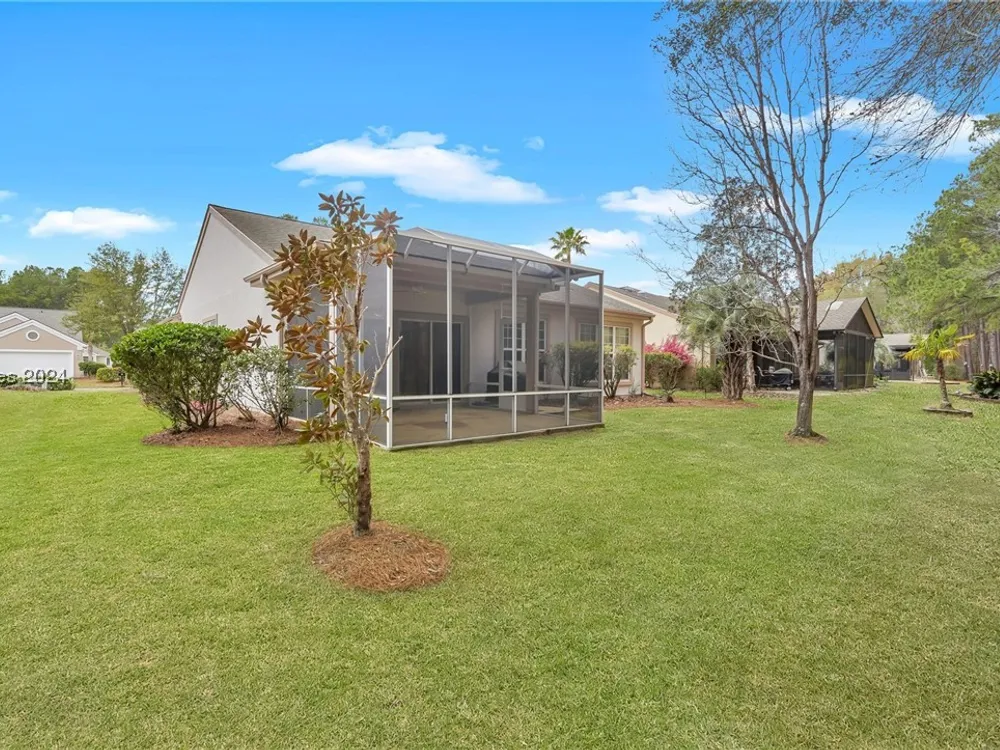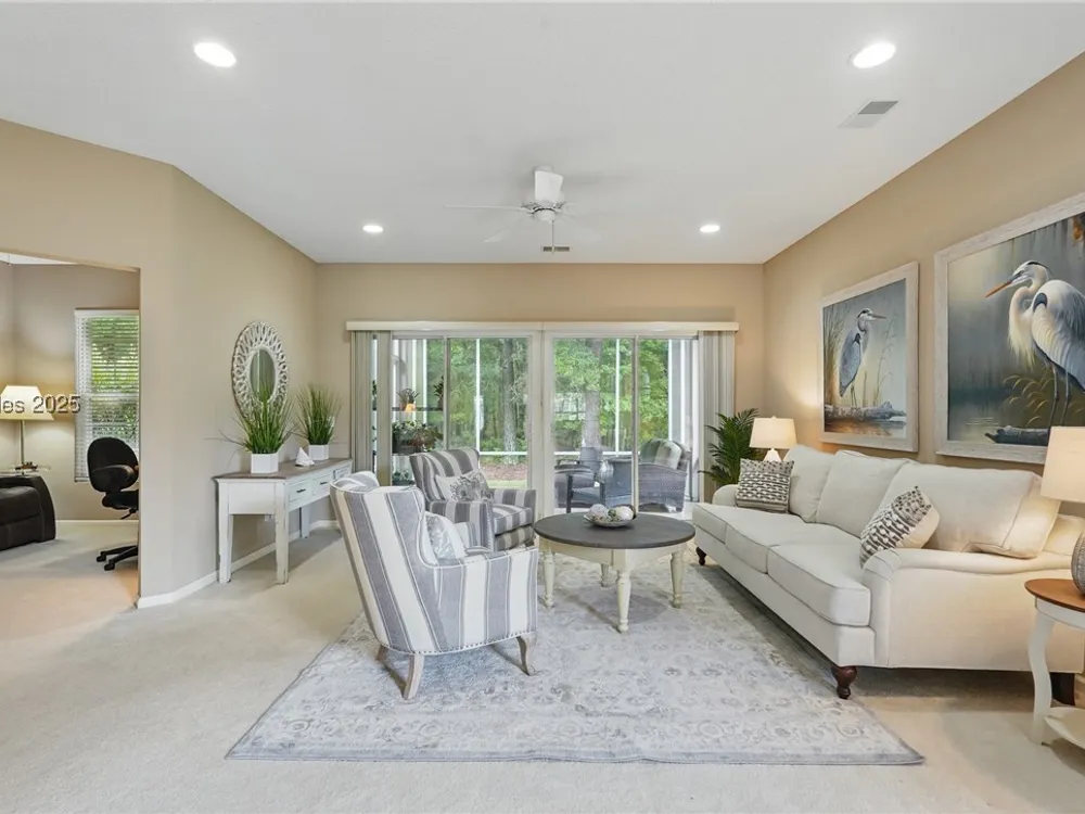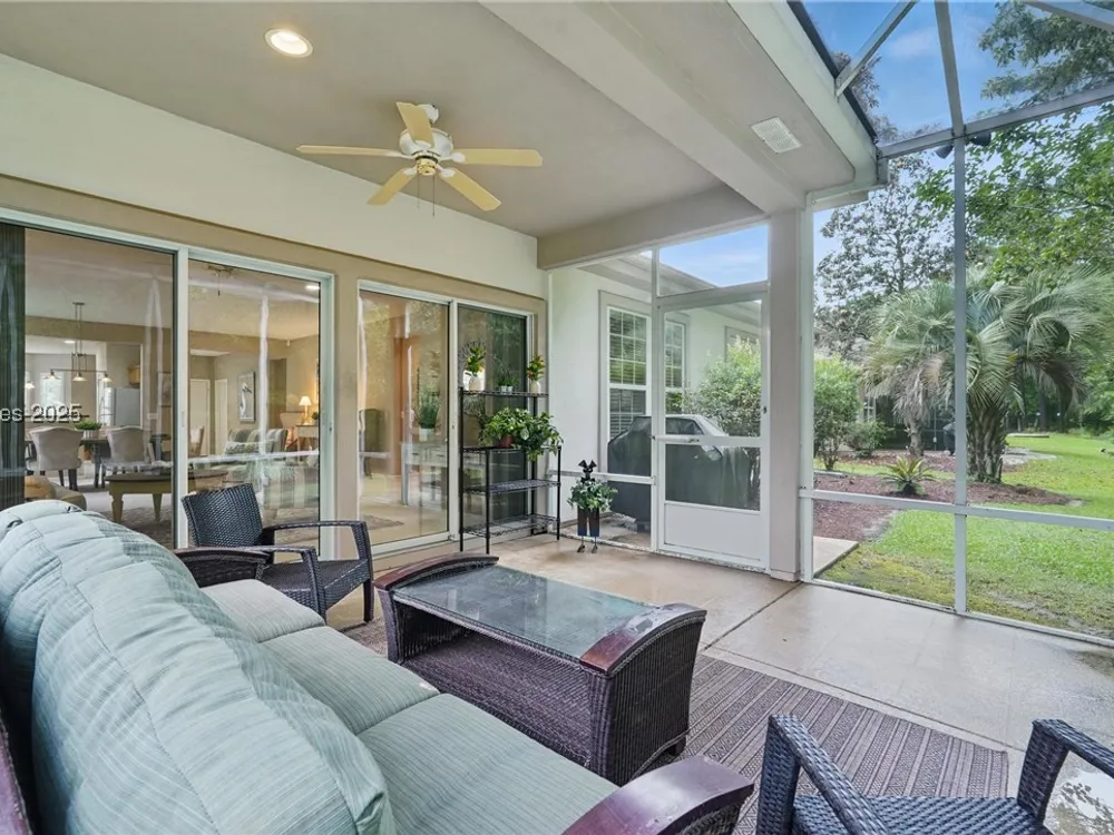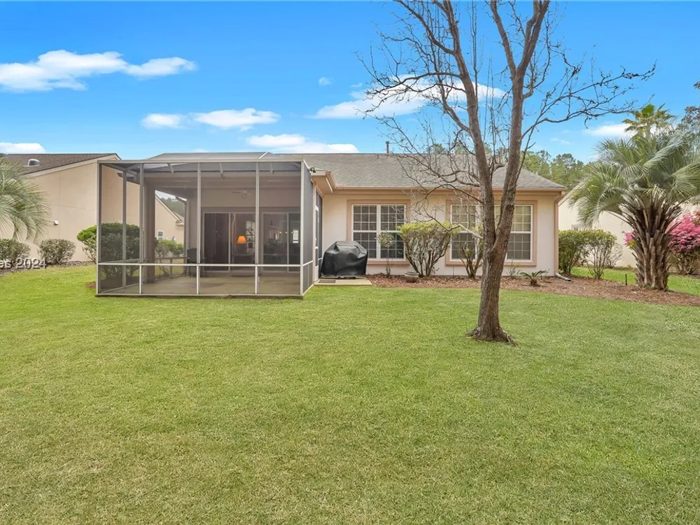 UPDATED PRICE! Located in SUN CITY HILTON HEAD, this popular Pelican model w/ 1850 SQ FT, offers 2 bedrooms, 2 baths, & a flex/office. Enjoy a private wooded view from the screened lanai. The eat-in kitchen flows to the open dining/living area, ideal for entertaining. The spacious primary suite features a large walk-in closet & relaxing soaking tub. This home is ready for your personal touches! One of the best values in Sun City! Don't miss this one! Sun City Hilton Head in Bluffton, SC, is a premier 55+ community spanning over 5,000 acres, offering an unmatched resort-style lifestyle. Residents enjoy 54 holes of golf across three scenic courses, six pools (including indoor lap and leisure pools), and three fully equipped fitness centers with classes and studios. The sports park offers tennis, pickleball, bocce, softball, volleyball, croquet, and more. Social and creative outlets abound with a ballroom, 16,000 sq ft performing arts theater, arts and crafts studios, woodworking shop, billiards, card rooms, and a library. Outdoor enthusiasts appreciate the Lake Somerset and Riverbend Docks, fishing, miles of walking and nature trails, community gardens, and three dog parks. There are over 150 clubs covering everything from arts and music to technology and lifelong learning. Additional amenities include on-site restaurants, RV and boat storage, and a secure, gated environment with convenient access to Hilton Head beaches, Historic Savannah and Charleston along with local shopping, dining, and healthcare. Sun City is also expanding with a new multimillion-dollar resort style amenity center coming soon!