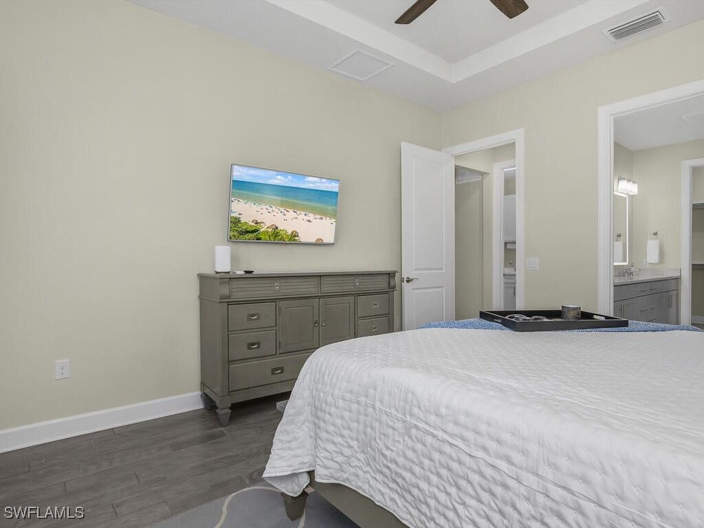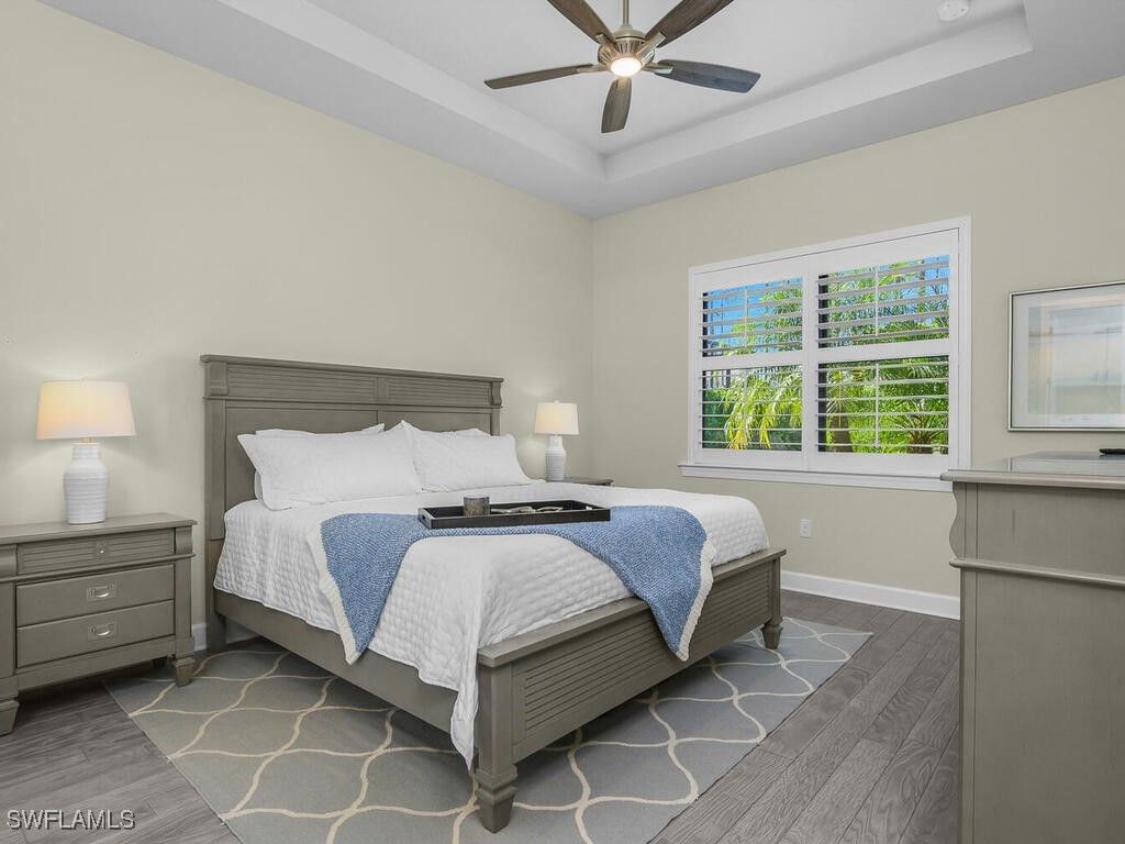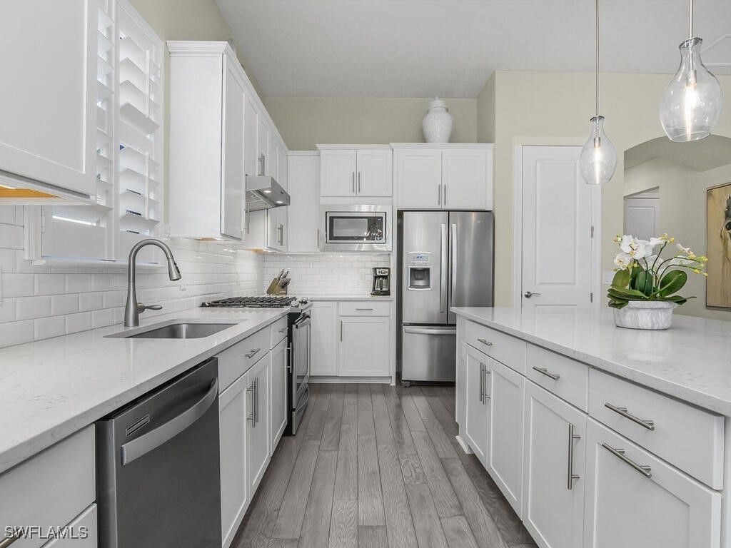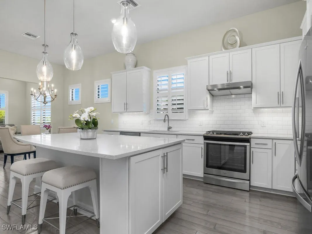 The STUNNING WildBlue home is not only the BEST PRICED home in the neighborhood, it is also offered TURNKEY and ready for you to enjoy the winter season in this amazing LAKE & BOATING community! You'll LOVE this METICULOUSLY maintained, rarely available Abbeyville home, offering 1,807 sq. ft. of beautifully designed living space and it includes an inviting 12' x 10' SUNROOM which fills the home with natural light. Featuring 2 bedrooms plus a den, this open-concept design seamlessly blends the kitchen, dining, and great room, creating the perfect space for entertaining. You'll LOVE the engineered hardwood flooring throughout, with tile in the baths and no carpet anywhere in the home giving it a fresh and clean look. The kitchen is the center of it all and includes upgraded stainless steel appliances, pantry, natural gas stove, center island and a kitchen cafe area. The owner suite is your personal retreat featuring a spacious bedroom with spa-like bath including a frameless glass oversized shower with custom tile, dual sinks, back-lit mirror, and a custom-designed walk-in closet. Guests will enjoy their own private space at the front of the home with their own bedroom and bath. The entire home is beautifully accented with plantation shutters and designer lighting and ceiling fans throughout. There is even a drop zone at the garage entry and a huge laundry room which includes a utility sink and an additional storage area and extra cabinet space. Relax and take in the tropical views on your private screened in lanai ~ this home has a huge yard with plenty of room for a pool and sits at the end of a cul-de-sac so there is little traffic and no homes on the opposite side of the street. This particular section of WildBlue is one of the MOST COVETED because it has NO THRU TRAFFIC and is the quietest street in the community! WildBlue is an amenity-rich, boating and lakefront community, where residents enjoy access to an onsite restaurant, lake beach, sports complex, and a vibrant, active social scene. Have a boat? Lease a boat slip and enjoy the best of waterfront living! Whether you're looking for a seasonal retreat or a full-time residence, this low-maintenance home is MOVE-IN READY and waiting for you. Don’t miss this exceptional opportunity—schedule your private tour today!