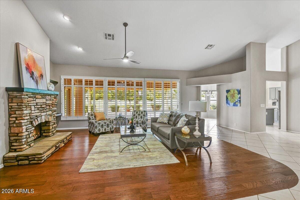 If you've been looking for the perfect home, look no more! Enjoy golf course living in highly desirable Westbrook Village. This 3 bed, 2.5 bath home with a 3-car garage features an open floorplan, vaulted ceilings, shutters, and a formal dining area with fireplace--perfect for entertaining. The eat-in kitchen offers stunning panoramic views. The primary suite includes vinyl plank flooring, bay window, patio access, and an en-suite bath with dual sinks and tiled walk-in shower. Two additional bedrooms provide space for guests or a home office. Relax on the extended covered patio overlooking the course. Enjoy resort-style amenities including 2-18 hole golf courses, 2 community pools, 2 rec centers, pickleball, restaurants, clubs and so much more!