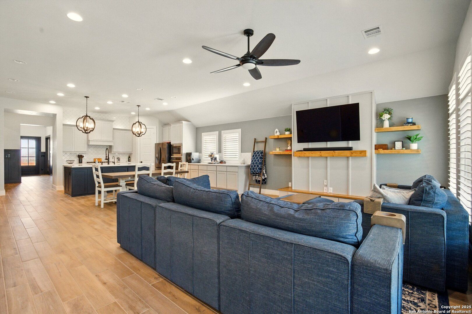 Beautiful One-Story Perry Home- 4Bed - 3.5 Bath --3 Car Garage- Welcome to this exceptional one-story Perry home that blends timeless design with modern convenience. Offering 4 bedrooms, 3.5 bathrooms, and a 3-car garage with a sleek epoxy-coated floor, this home is built for comfort, style, and functionality. Inviting front entry with custom accent walls and a decorative concrete walkway alongside the driveway, adding charm and curb appeal. Living room bump-out serves as the focal point, with a mounted TV and decorative shelves on either side-- designed for functionality and style. Flexible Office/Game room perfect for work, study, or entertainment. A stunning kitchen island, ideal for cooking, casual dining, and hosting gatherings. Located in a vibrant community with a neighborhood pool and a variety of nearby stores and shops, all just minutes from everything New Braunfels has to offer. This thoughtfully designed home offers the perfect combination of comfort, convenience, and modern living in one of the most desirable areas.