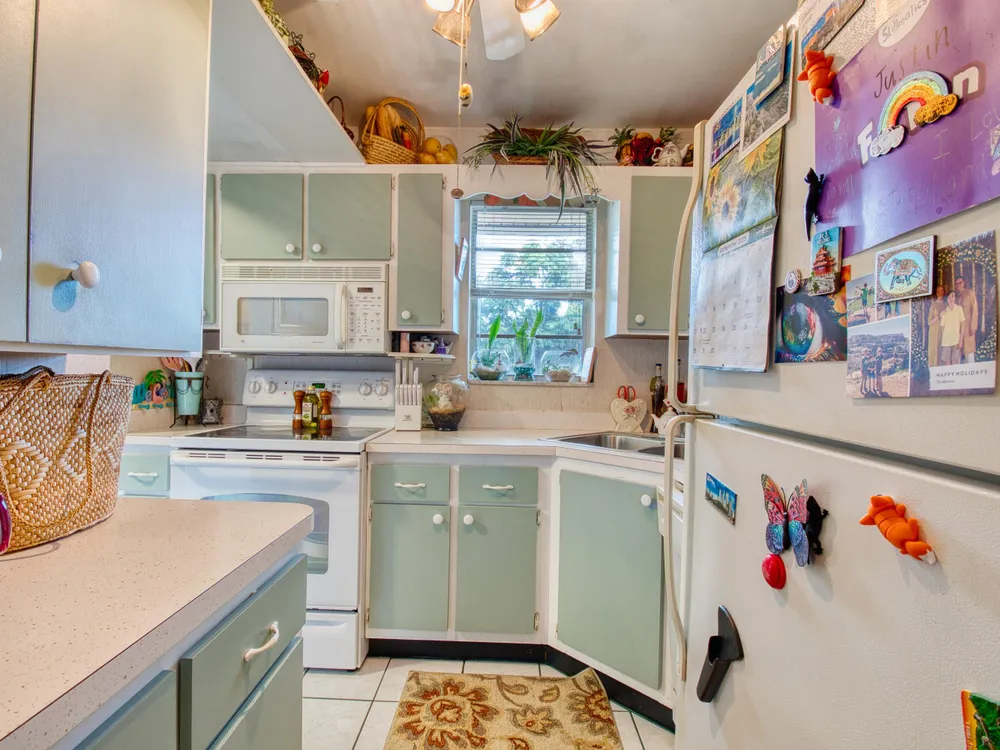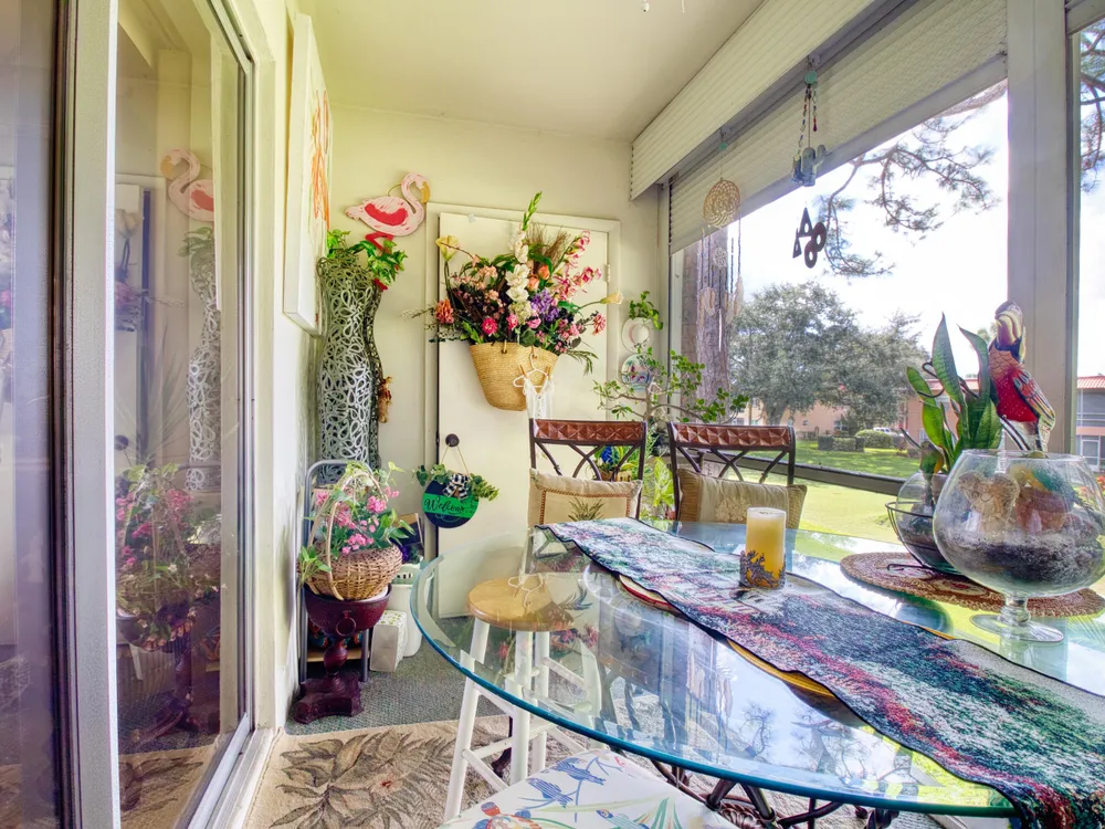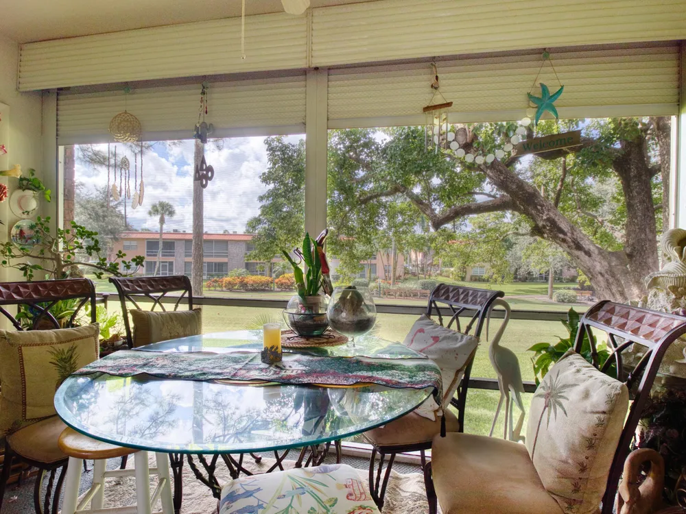 Right on the golf course in the heart of Stuart, this furnished 2-bedroom, 2-bathroom condo in Monterey Yacht & Country Club is designed for the active 55+ lifestyle. The home's layout offers a cozy living area with tile and laminate flooring throughout, bedrooms with ample storage, and accordion shutters for peace of mind. The kitchen is compact yet functional, making everyday meals simple and efficient. Step outside to the screened patio, an inviting spot for morning coffee or evening relaxation with golf course views.