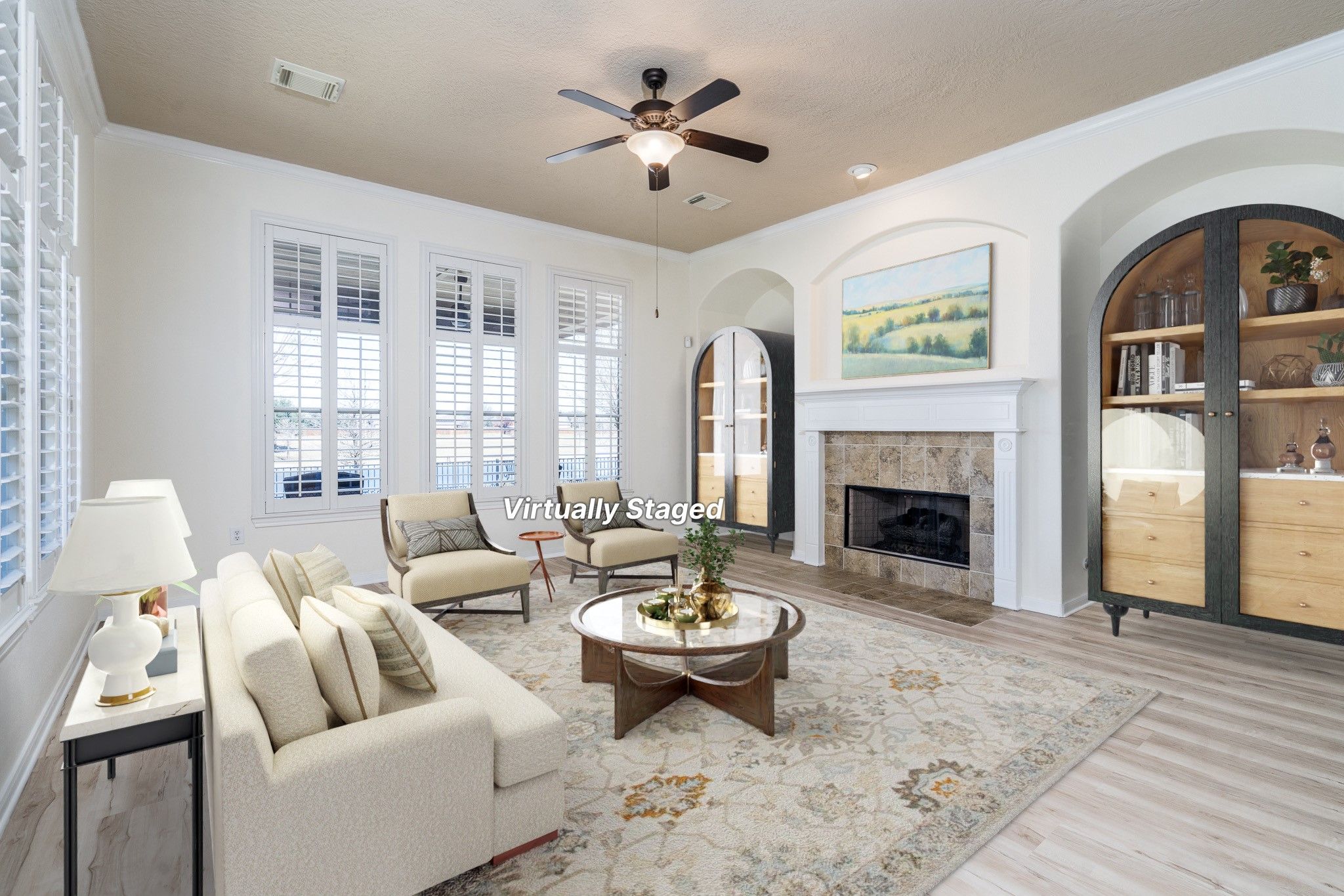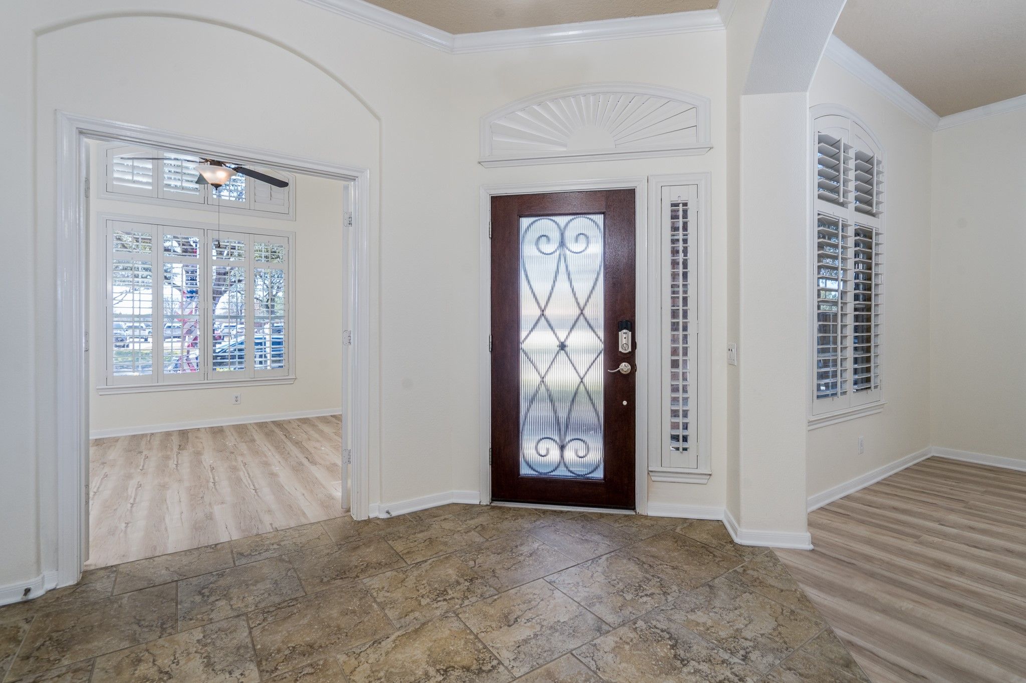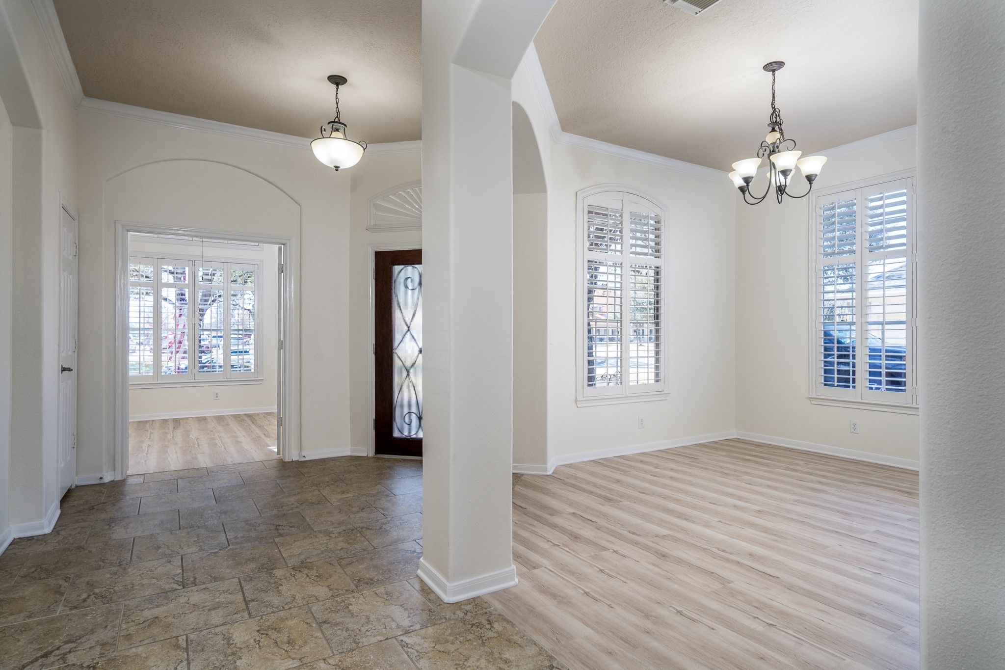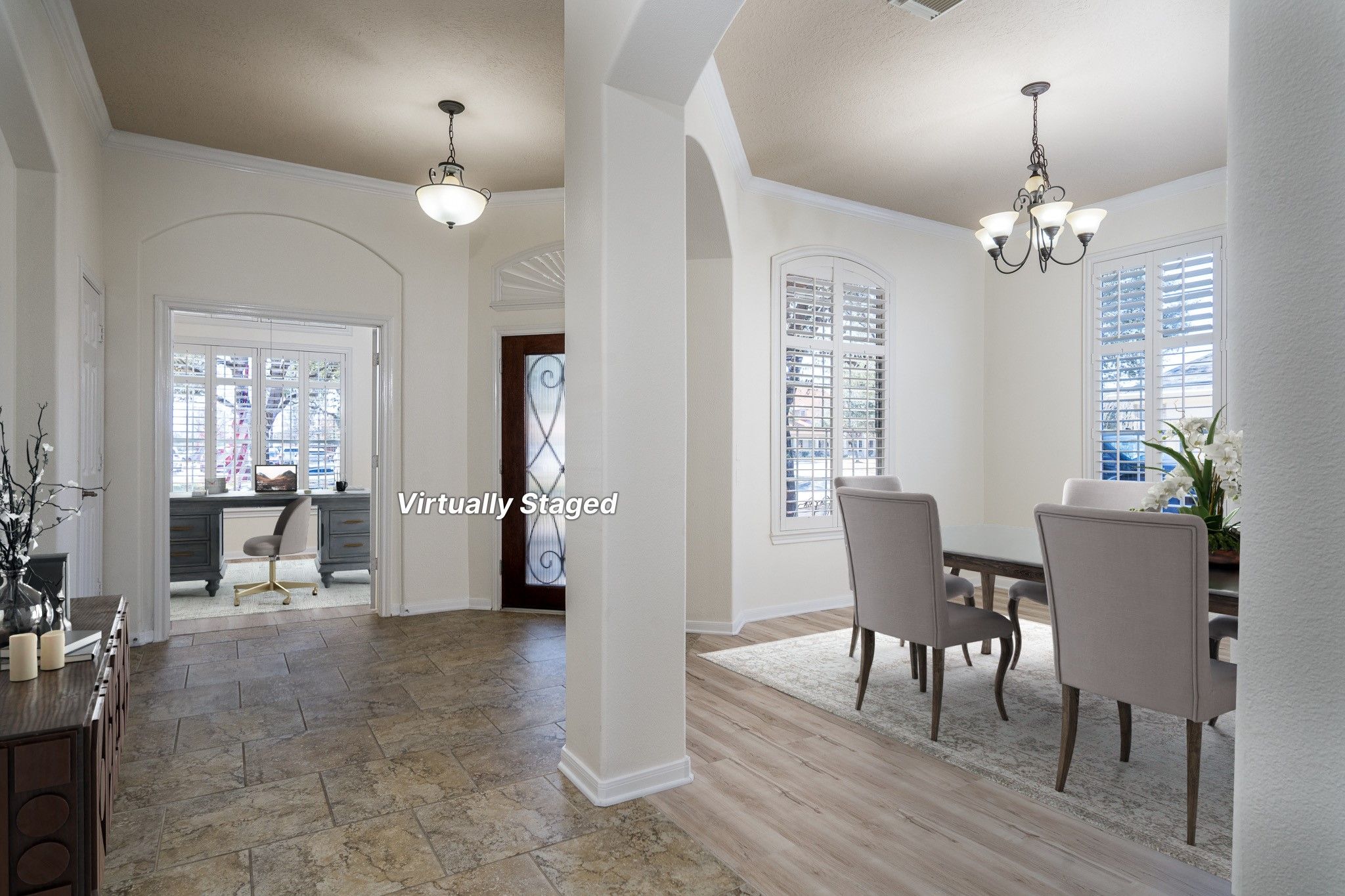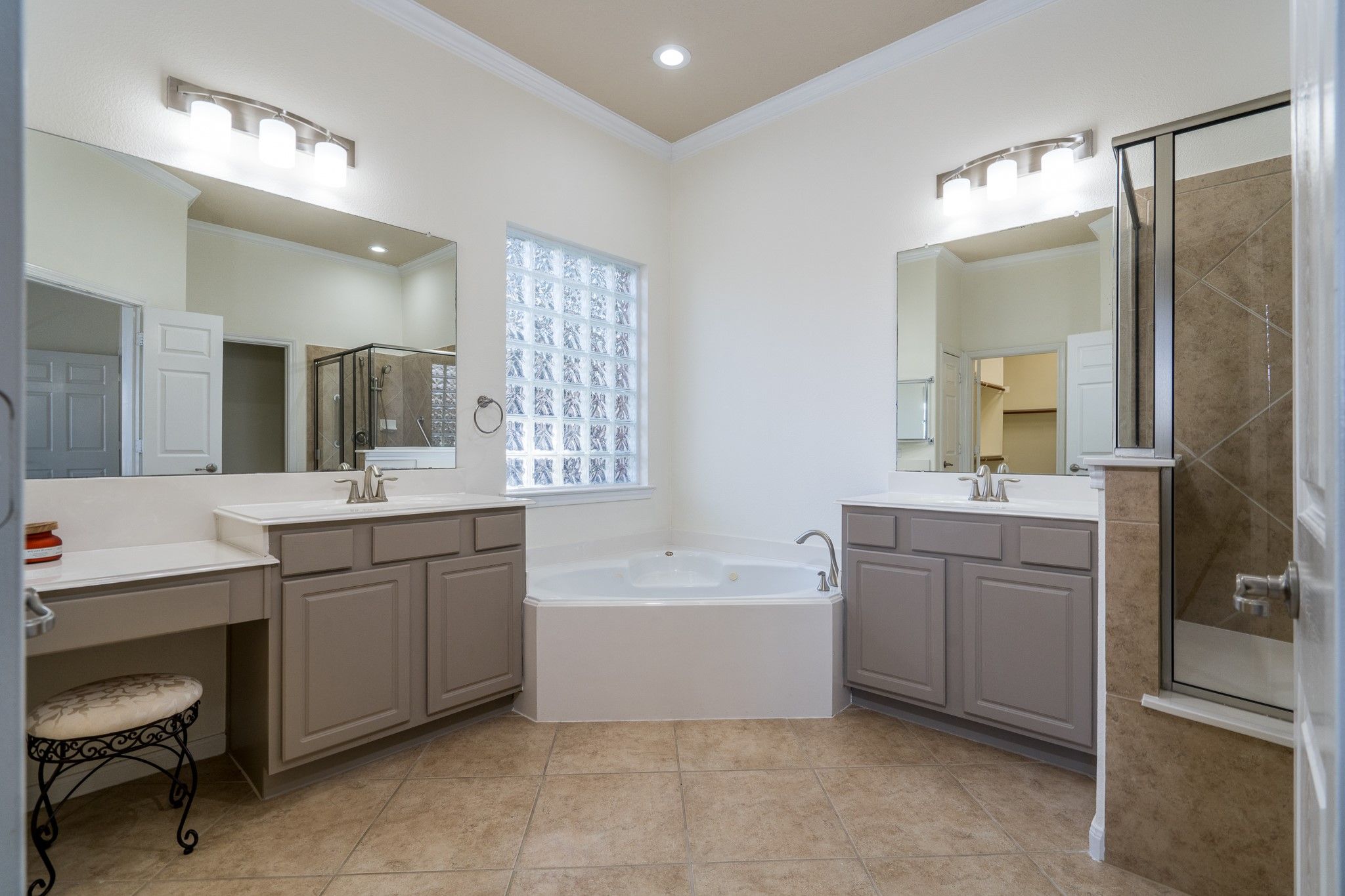 - Crown Molding, Double Vanity, Entrance Foyer, Granite Counters, Jetted Tub, Kitchen Island, Kitchen/Family Room Combo, Separate Shower, Tub Shower, Walk-In Pantry, Ceiling Fan(s)