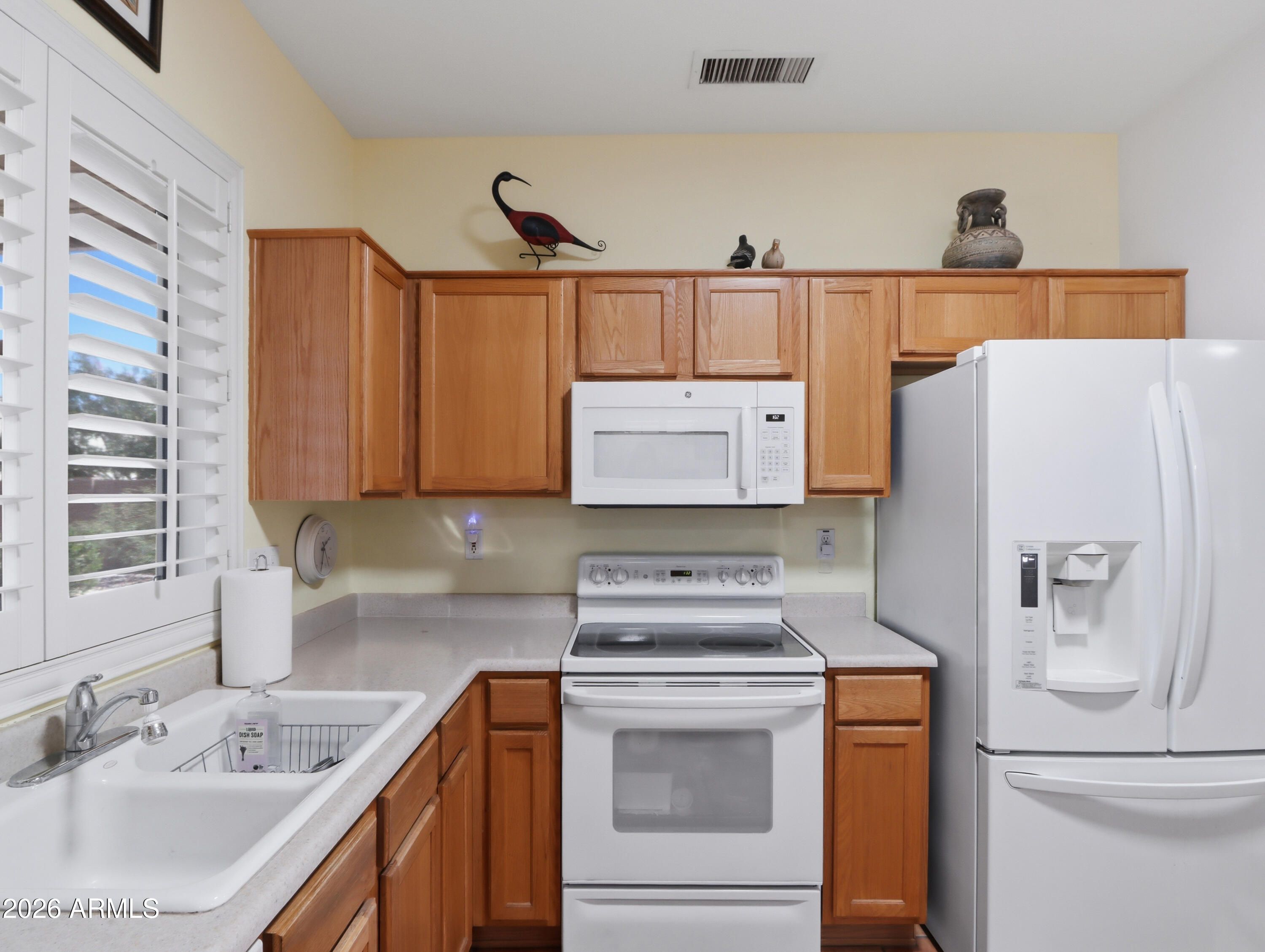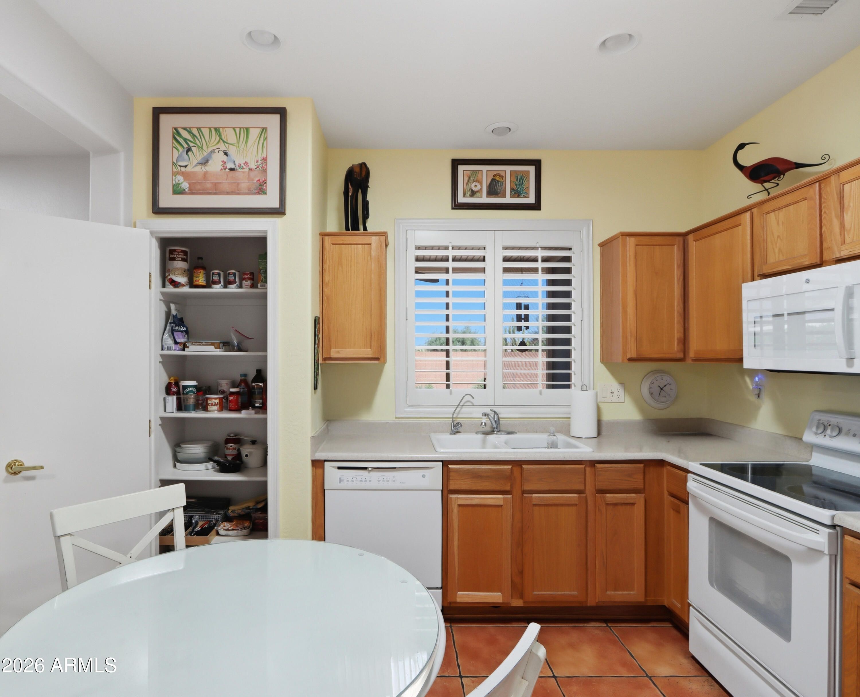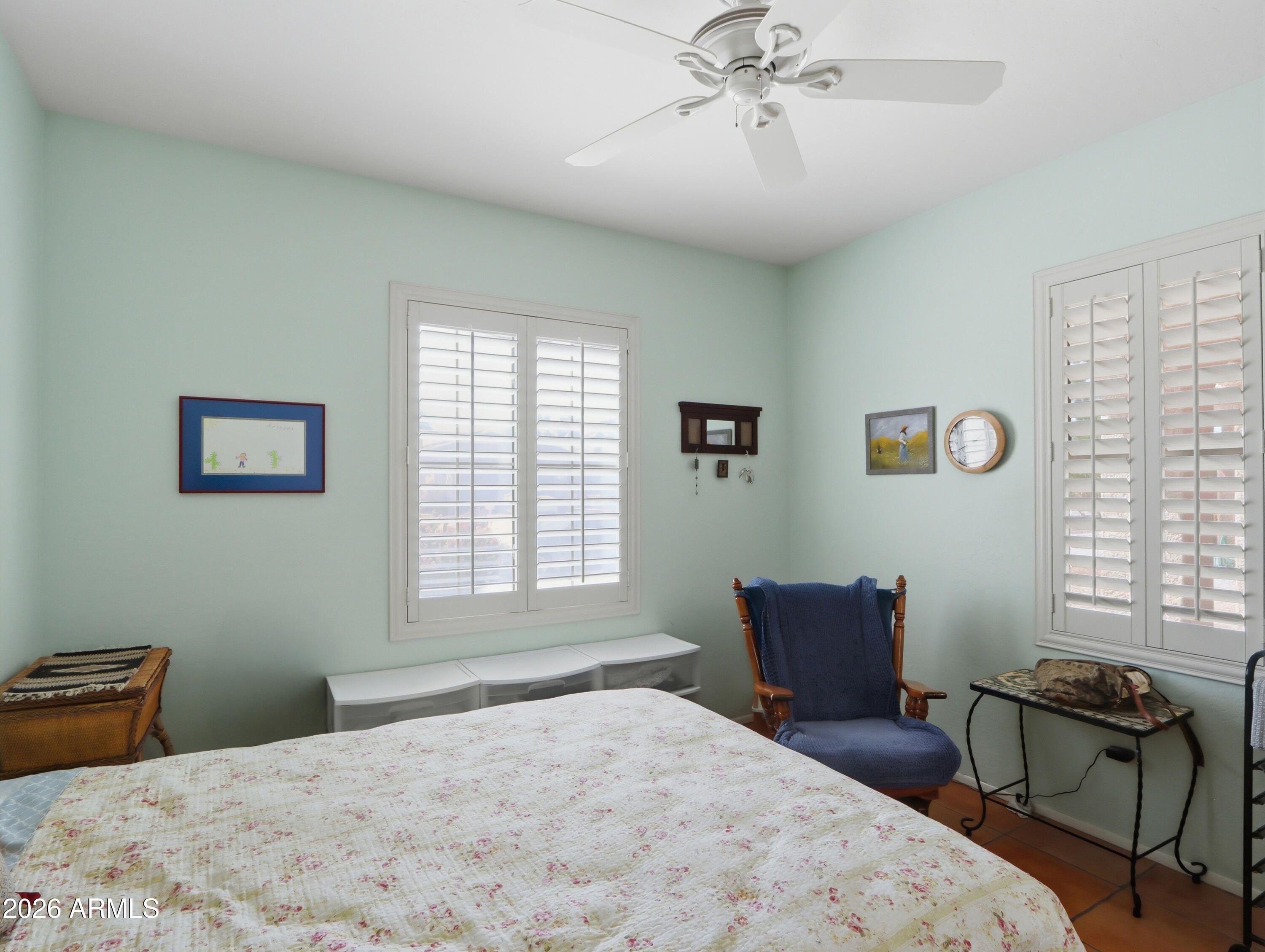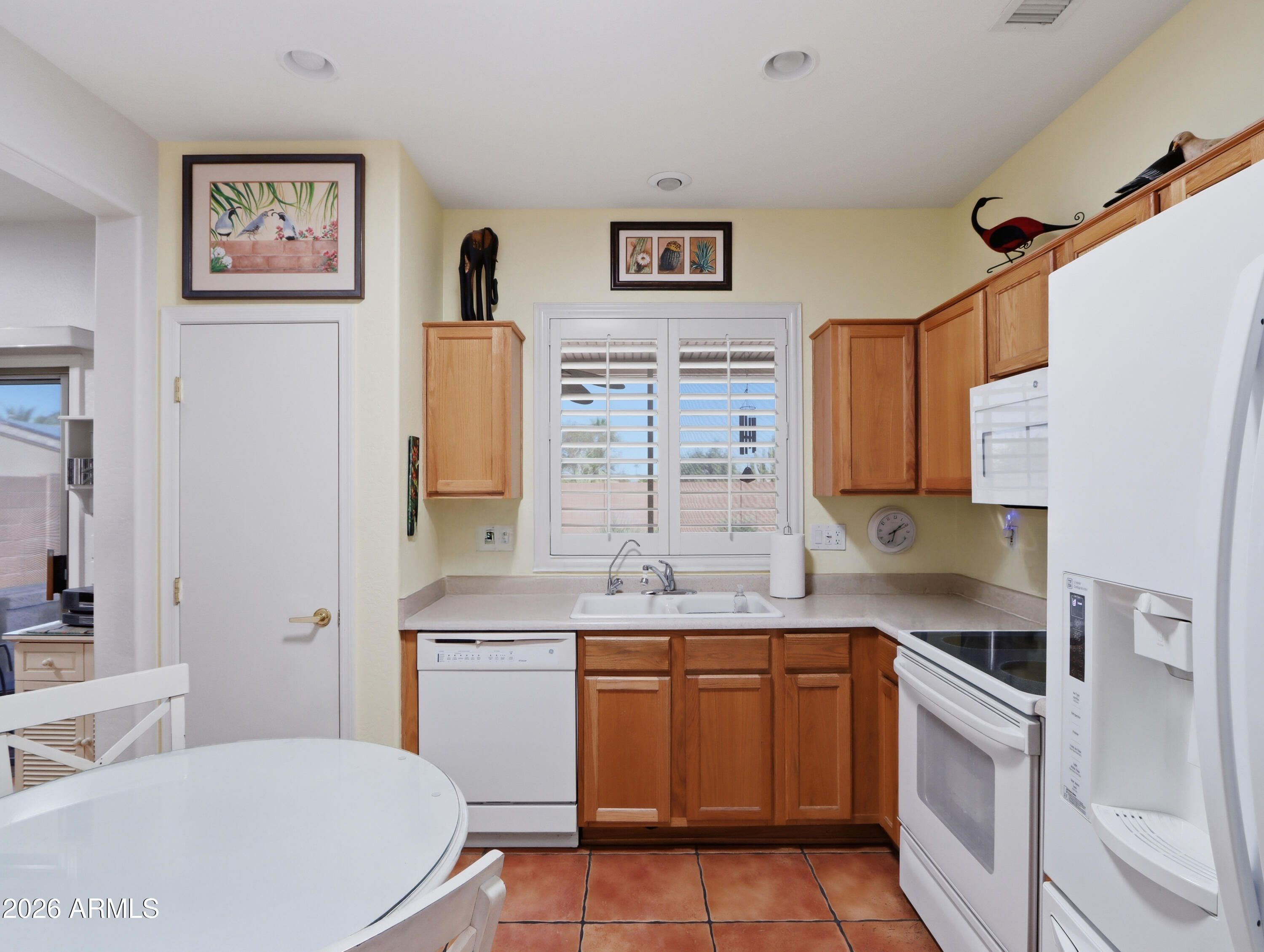 Welcome to your personal oasis! This beautifully maintained ''Golfer's Cottage'' offers the perfect blend of Southwestern charm and modern peace of mind. Nestled on a quiet street within a vibrant, amenity-rich community, this move-in-ready gem welcomes you with gorgeous saltillo tile floors, premium plantation shutters, and five solar tubes that bathe the home in abundant natural light. You can buy with ultimate confidence knowing the big-ticket items are handled: featuring a brand-new HVAC, newer interior and exterior paint, and inclusive newer appliances. Retreat to your primary suite showcasing a charming bay window, or step outside to the spacious, screened-in patio overlooking your private, walled backyard--the ultimate setting for morning coffee or entertaining friends.... Complete with a two-car garage (featuring built-in cabinets and a utility sink), energy-efficient 98% UV sunscreens, and custom heavy-duty security doors, this home is as secure and practical as it is beautiful. Enjoy world-class community golf, pools, fitness centers, and more right at your doorstep.