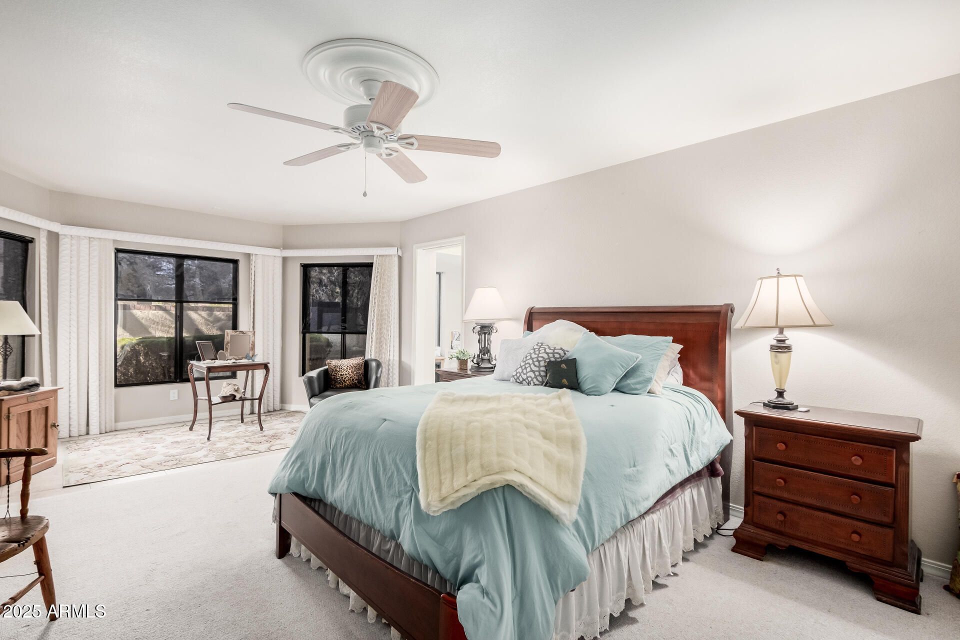 Discover this gorgeous corner lot property in Rio Verde! This custom-built residence boasts a circular driveway, a 2.5 car garage, & a picturesque desert landscape. The welcoming foyer leads you to a captivating living room with soaring vaulted ceilings, a lovely bay window, a dry bar for entertaining, & a warm fireplace. Create lasting memories in the well-appointed family room, complete with a secondary fireplace for cozy evenings. The stunning kitchen comes with skylights for abundant natural light, solid surface counters, crisp white cabinetry, recessed lighting, sleek SS appliances, & a butler's pantry with a prep sink. The primary suite boasts plush carpeting, a romantic fireplace, plantation shutters, direct backyard access, an ensuite with dual vessel sinks, & a walk-in closet. Enchanting moments await in the lovely backyard, showcasing an exterior fireplace, propane fire pit, a covered heated patio, a charming ramada, a heated pool for refreshing dips, & serene views overlooking the 15th tee box of the Rio Verde golf course. This gem is a true find! Please visit the Rio Verde Community website to view all of the exciting amenities that are available to residents of this Golf course community. Seller financing available for a second mortgage up to $250,000. Seller will finance up to 36 months from close of escrow at 7%.. No prepayment penalty. *Flat roof just resealed in July 2025.* Seller is needing to relocate.