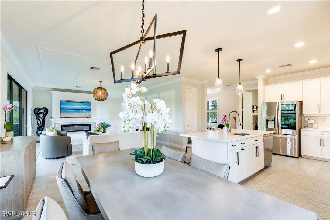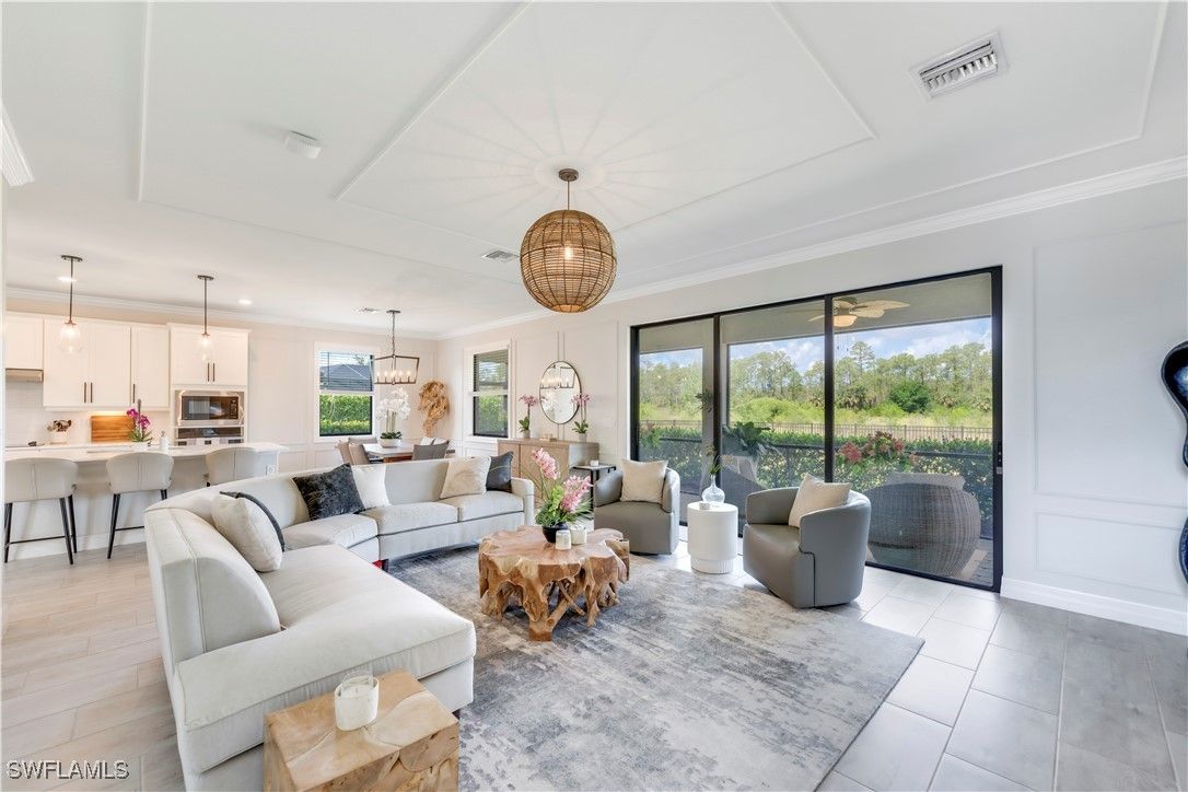 Set on an OVERSIZED PRESERVE VIEW homesite, this property offers unmatched privacy and gorgeous WESTERN SUNSETS. This 5 BEDROOM, 3 BATHROOM ESTATE SERIES HOME features nearly 3,500 sqft of elevated living space. Looking to move without much hassle? This beautifully decorated home also has the option to negotiate all the furniture or just the pieces you love! Inside, you’re welcomed by a soaring 2-STORY FOYER, flanked by a FORMAL DINING ROOM and a FLEX ROOM—perfect as a home office or homework space. The OPEN CONCEPT MAIN LIVING AREA seamlessly blends the great room, informal dining space, and kitchen into one cohesive hub. A CUSTOM MANTLE & FIREPLACE FEATURE WALL adds warmth and style, creating the ultimate space for family time. In the kitchen, you’ll love the BRAND NEW LEATHERED MARBLE COUNTERTOPS, which continue throughout EVERY BATHROOM IN THE HOME for a cohesive, upscale finish. This space also features BUILT-IN APPLIANCES, UPGRADED WHITE CABINETRY, and a LG REFRIGERATOR & FREEZER that even makes ice balls for your favorite cocktails! All of this is set against a backdrop of TILE FLOORS, 8-FOOT DOOR FRAMES, CUSTOM CROWN MOLDING, and DETAILED WAINSCOTING. The convenient FIRST FLOOR GUEST or IN-LAW SUITE includes a FULL BATHROOM with DIRECT LANAI ACCESS—ideal for visitors or future pool bath use. A spacious LAUNDRY ROOM off the kitchen features STORAGE CABINETRY and a built-in DROP ZONE. Your 3-CAR GARAGE offers an EV charger, mini split A/C unit and plenty of room for vehicles, storage, and even a golf cart! Upstairs, enjoy the elegant HARDWOOD STAIRCASE and hallway, where you’ll find a versatile FLEX SPACE—perfect for a workstation or reading nook. Beyond the DOUBLE DOORS lies your SECOND FAMILY ROOM, an ideal retreat for movie nights or a kids’ hangout zone. Three additional GUEST BEDROOMS provide space for queen beds and feature generous closets. These bedrooms share a FULL BATHROOM with DUAL SINKS and ample counter space. Step through another set of DOUBLE DOORS into your PRIVATE PRIMARY SUITE, complete with DUAL WALK-IN CLOSETS and a spa-like bath featuring SPLIT VANITIES, a GLASS-ENCLOSED SHOWER, and a SOAKING TUB. Out back, enjoy a FULL-WIDTH COVERED LANAI, PRIVATE HOT TUB, FENCED YARD, and plenty of room to create your dream outdoor oasis. Want your own custom pool, spa, and sun shelf with modern pavers and design? This home is your blank canvas—build it YOUR WAY for around $100K. Or simply enjoy the incredible amenities at THE PLACE AT CORKSCREW: LAGOON-STYLE POOL, SPA, 100-FOOT WATERSLIDE, TWO WATERFALL GROTTOS, FULL-SERVICE RESTAURANT, BOURBON BAR, COFFEE SHOP, TWO-STORY FITNESS CENTER, TENNIS, PICKLEBALL, BOCCE, BASKETBALL, SAND VOLLEYBALL, PLAYGROUND, DOG PARK, and more! Just across the street is the renowned OLD CORKSCREW GOLF COURSE. Only one mile east, you’ll find a NEW PUBLIX SHOPPING CENTER and SWFL’S ONLY WINERY. MIROMAR OUTLETS, GULF COAST TOWN CENTER, and RSW AIRPORT are all within 10–15 minutes.