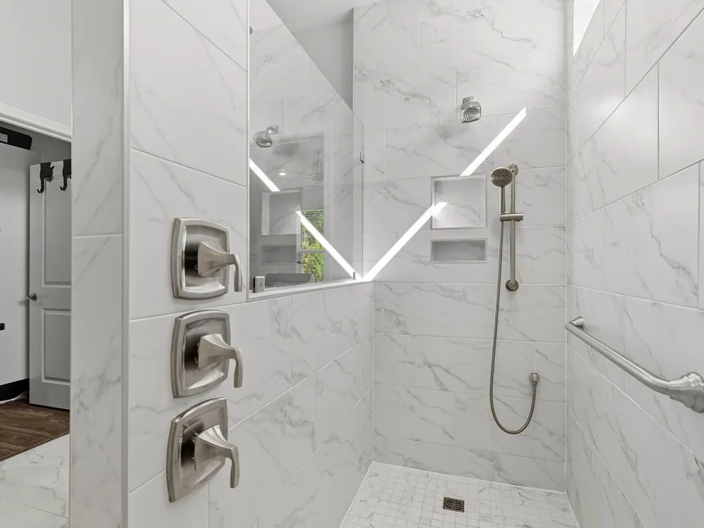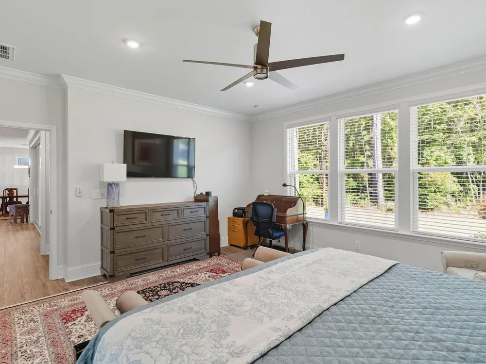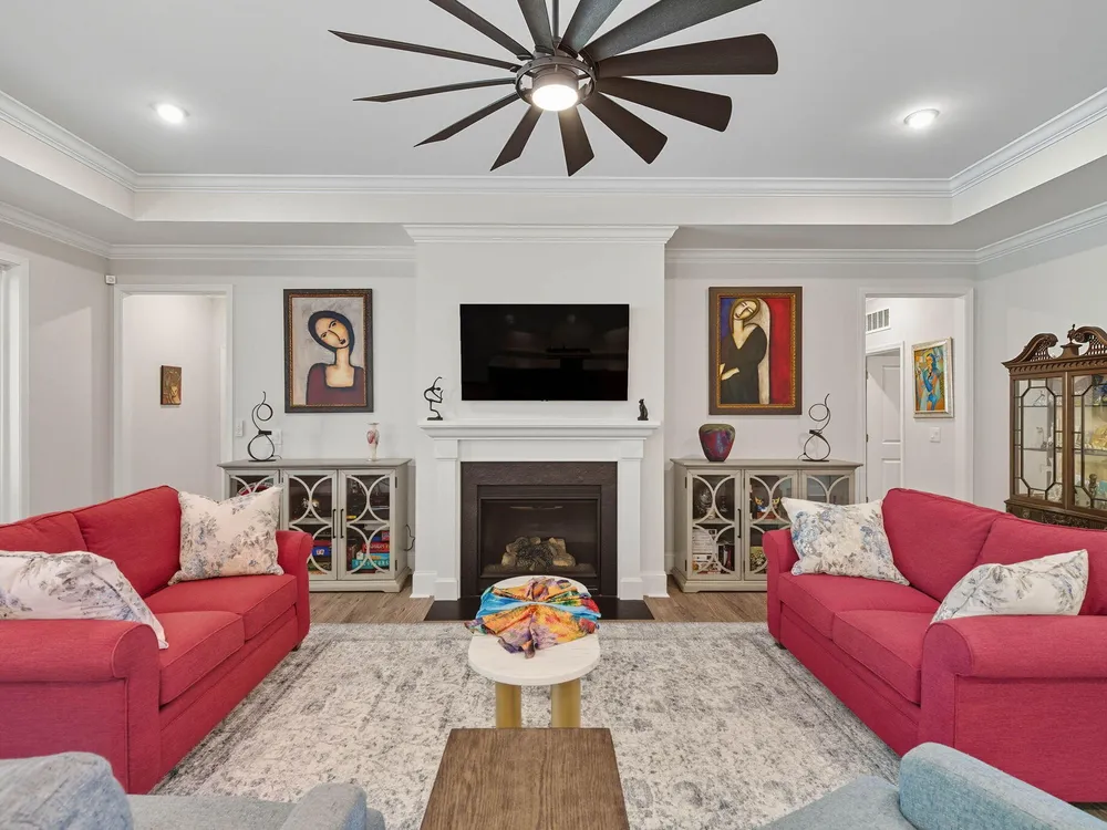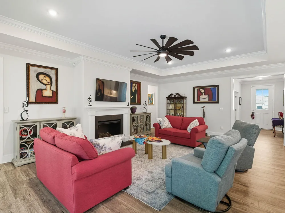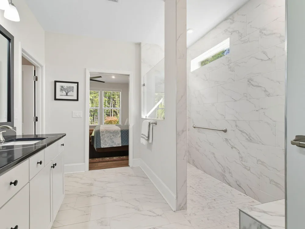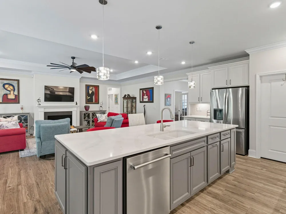 - Tub Shower, Ceiling Fan(s), Crown Molding, Double Vanity, Entrance Foyer, Kitchen/Dining Combo, Living/Dining Room, Pantry, Master Downstairs, Quartz Countertops, Stall Shower, Smooth Ceilings, Tray Ceiling(s), Walk-In Closet(s), Walk-In Shower