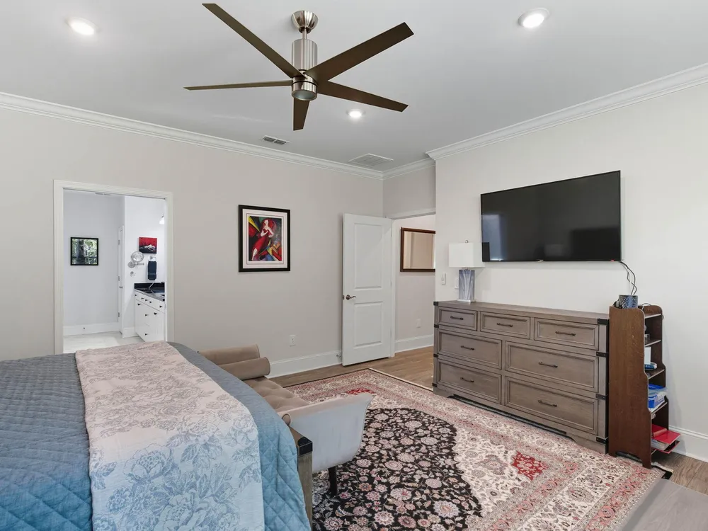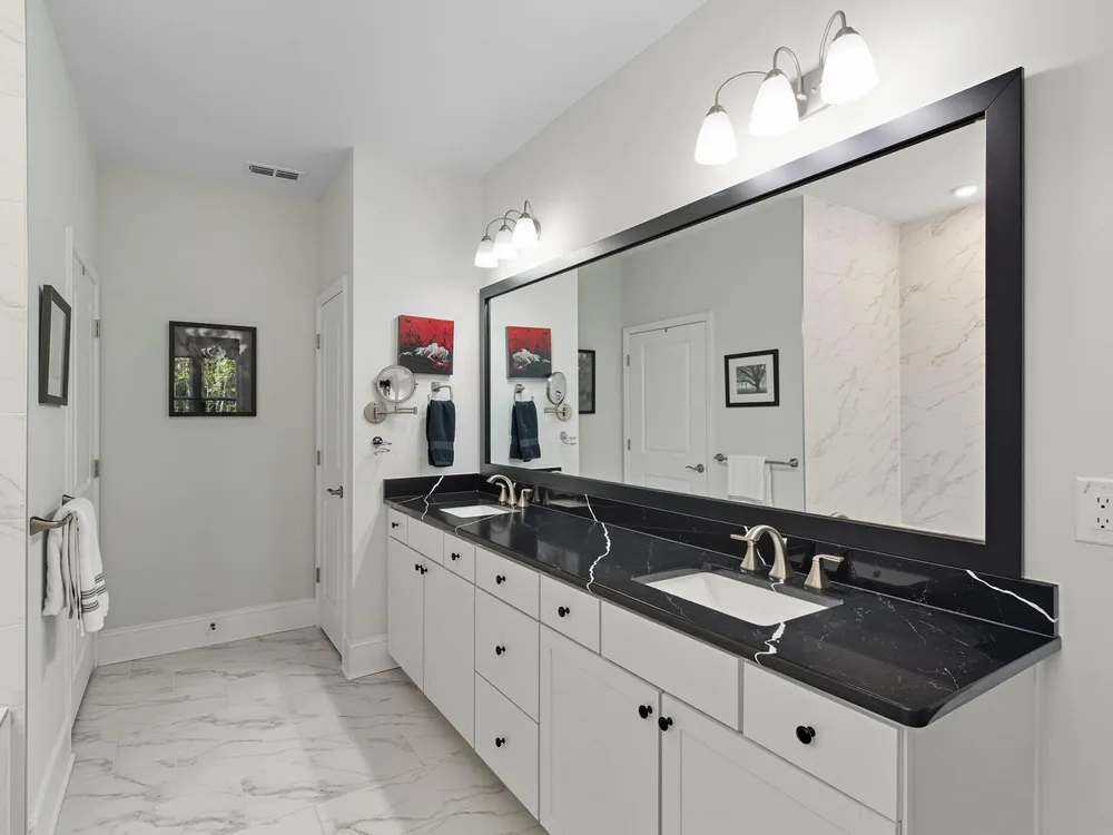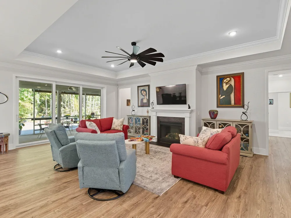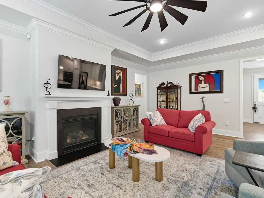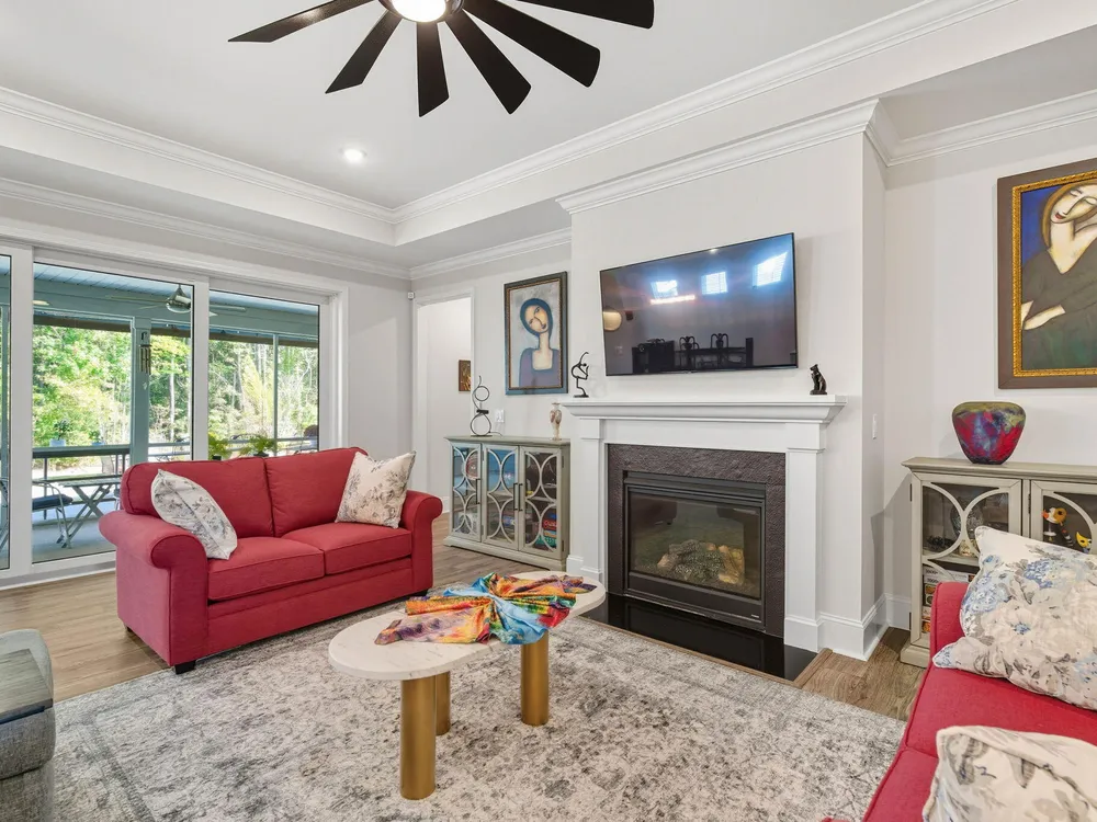 - Tub Shower, Ceiling Fan(s), Crown Molding, Double Vanity, Entrance Foyer, Kitchen/Dining Combo, Living/Dining Room, Pantry, Master Downstairs, Quartz Countertops, Stall Shower, Smooth Ceilings, Tray Ceiling(s), Walk-In Closet(s), Walk-In Shower